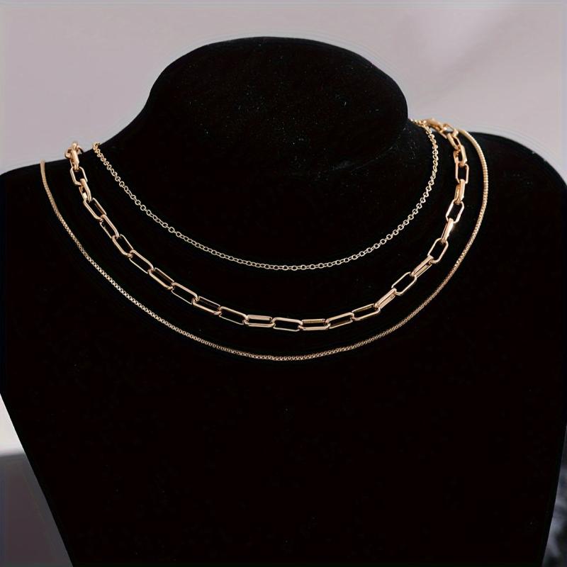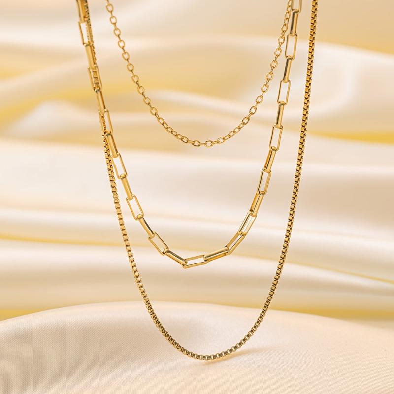 Elegant set of 3 durable stainless steel necklaces with 18K golden plating. Perfect for daily wear, special occasions, and as a Valentine's gift. Suitable for all seasons.