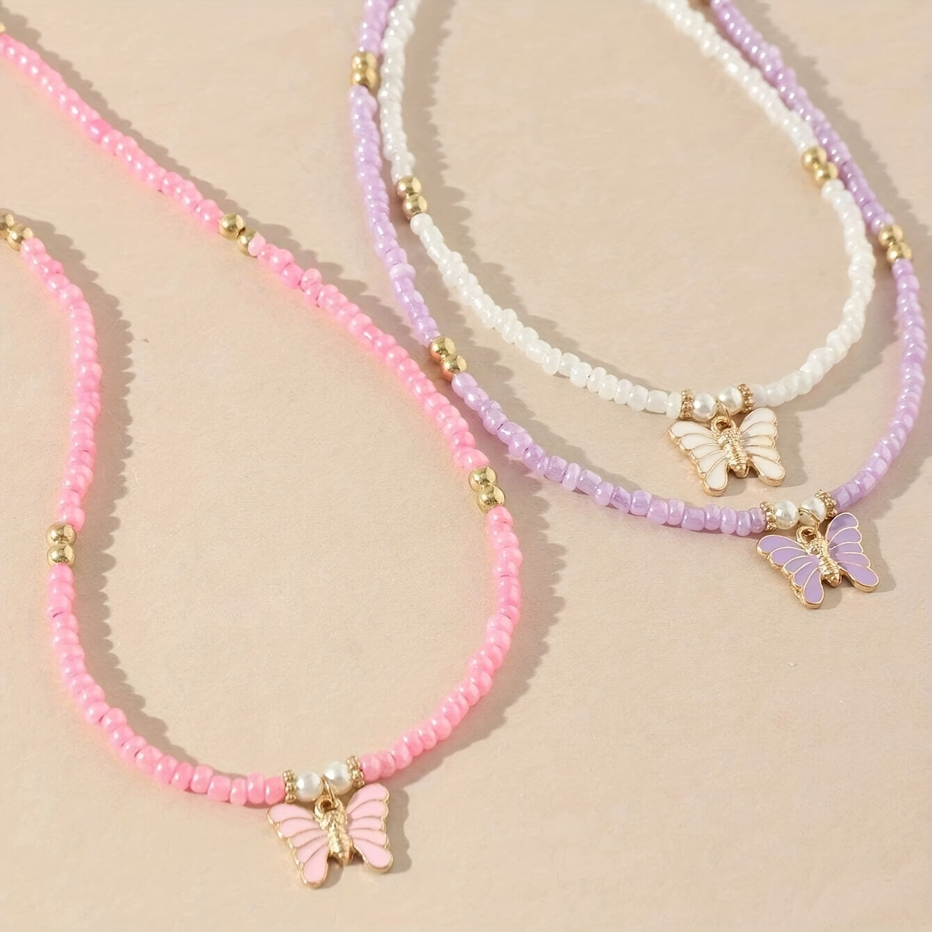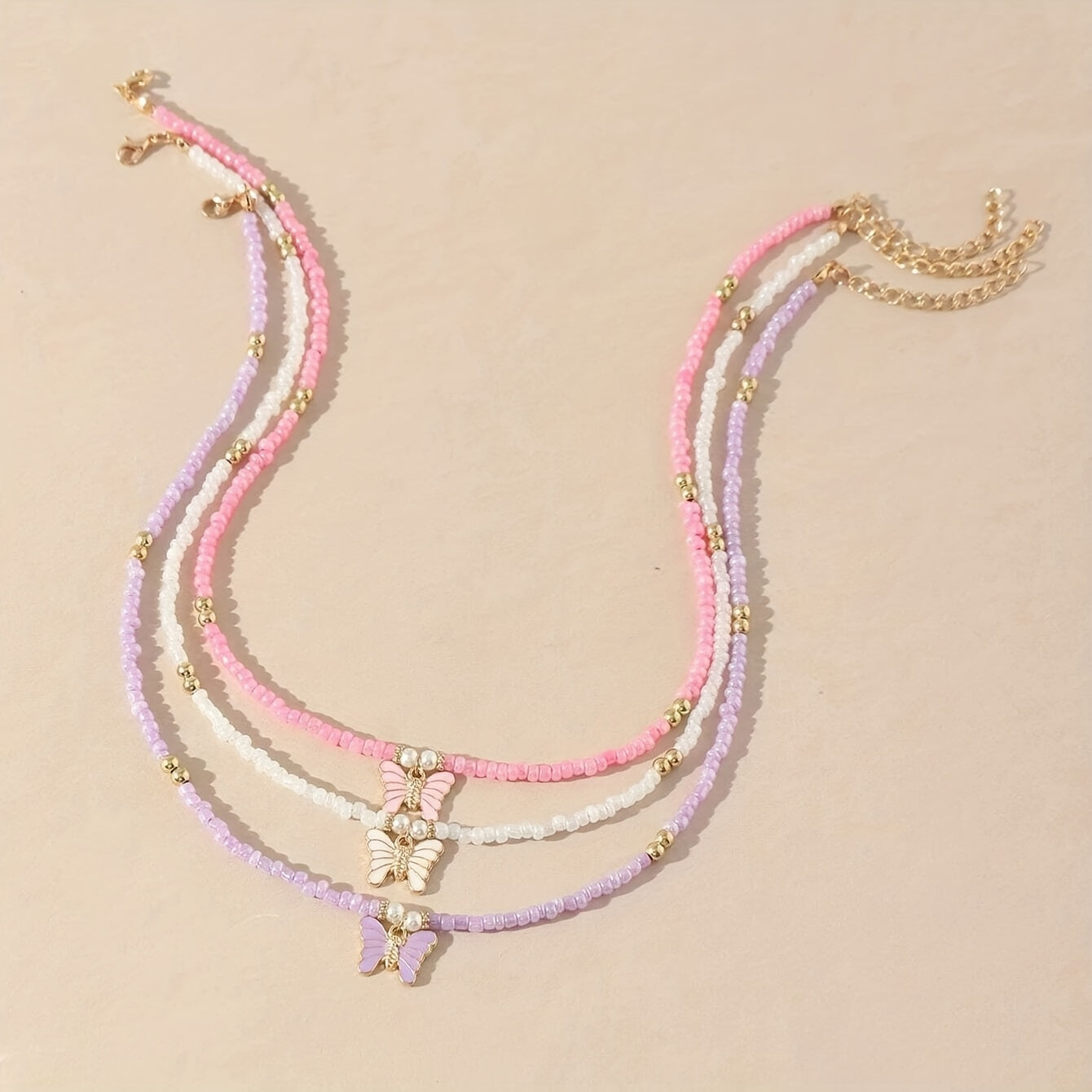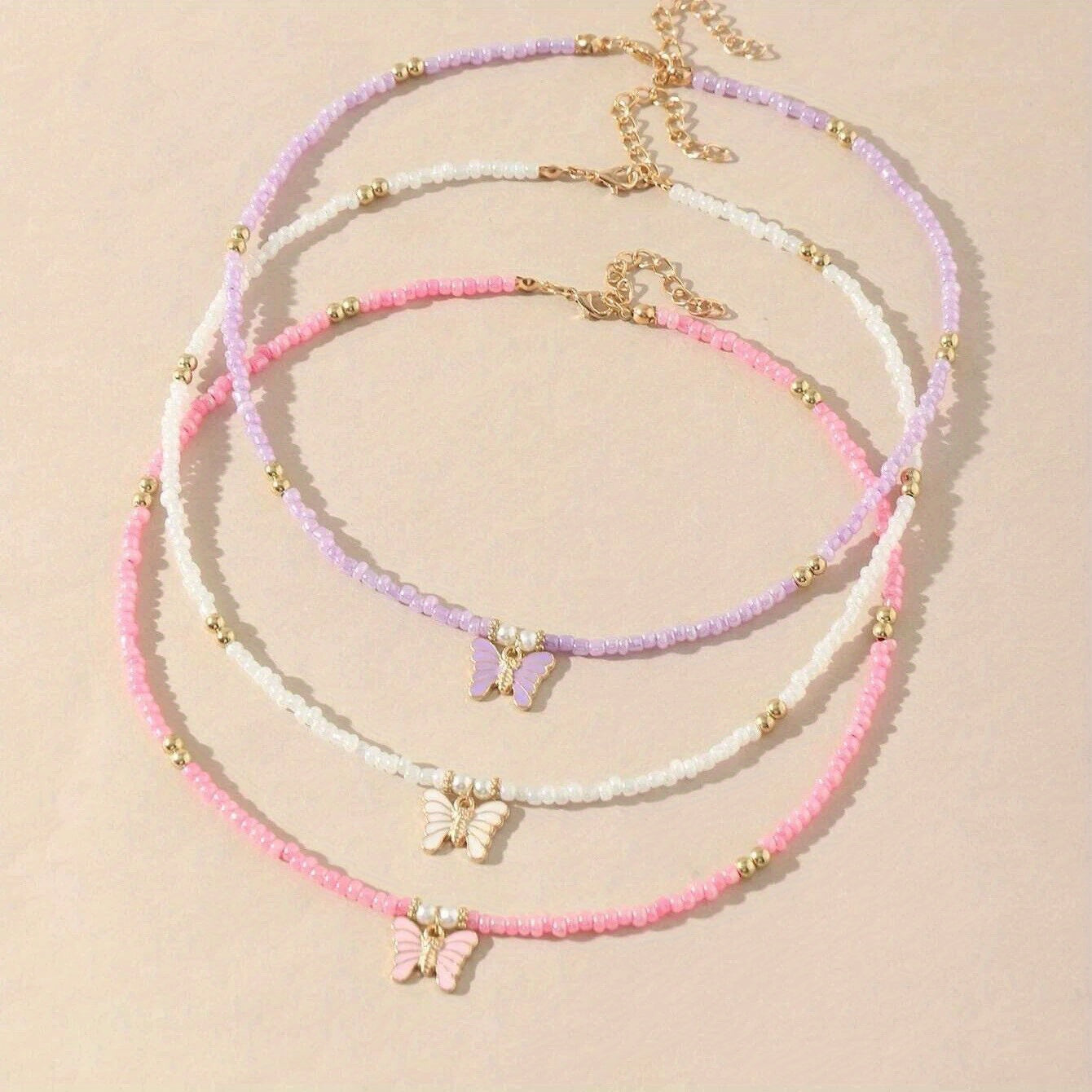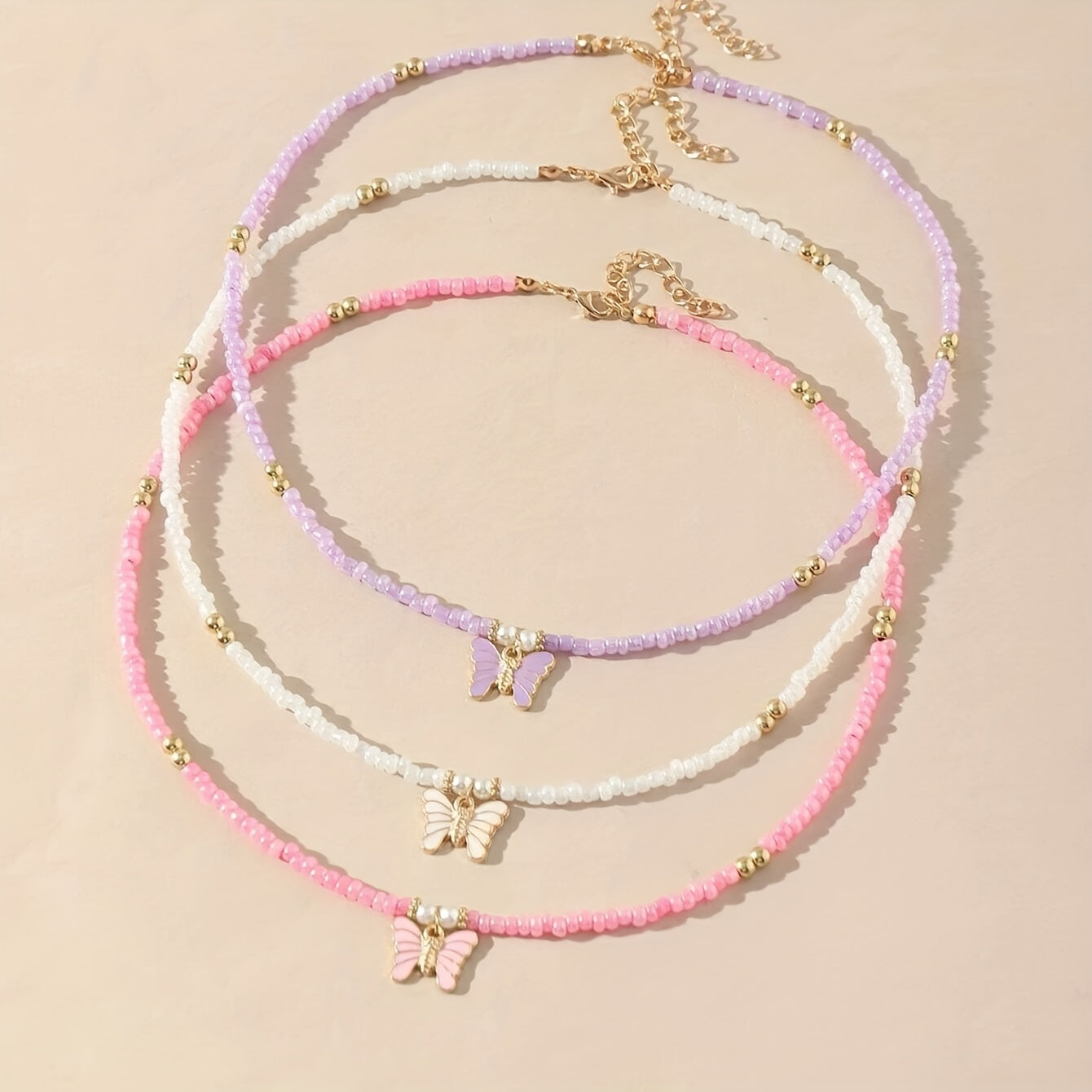 Elegant 3-piece set of choker necklaces with butterfly pendants. Made with 18K gold plating for a luxurious look. Perfect as a neck decoration or a thoughtful gift for loved ones.