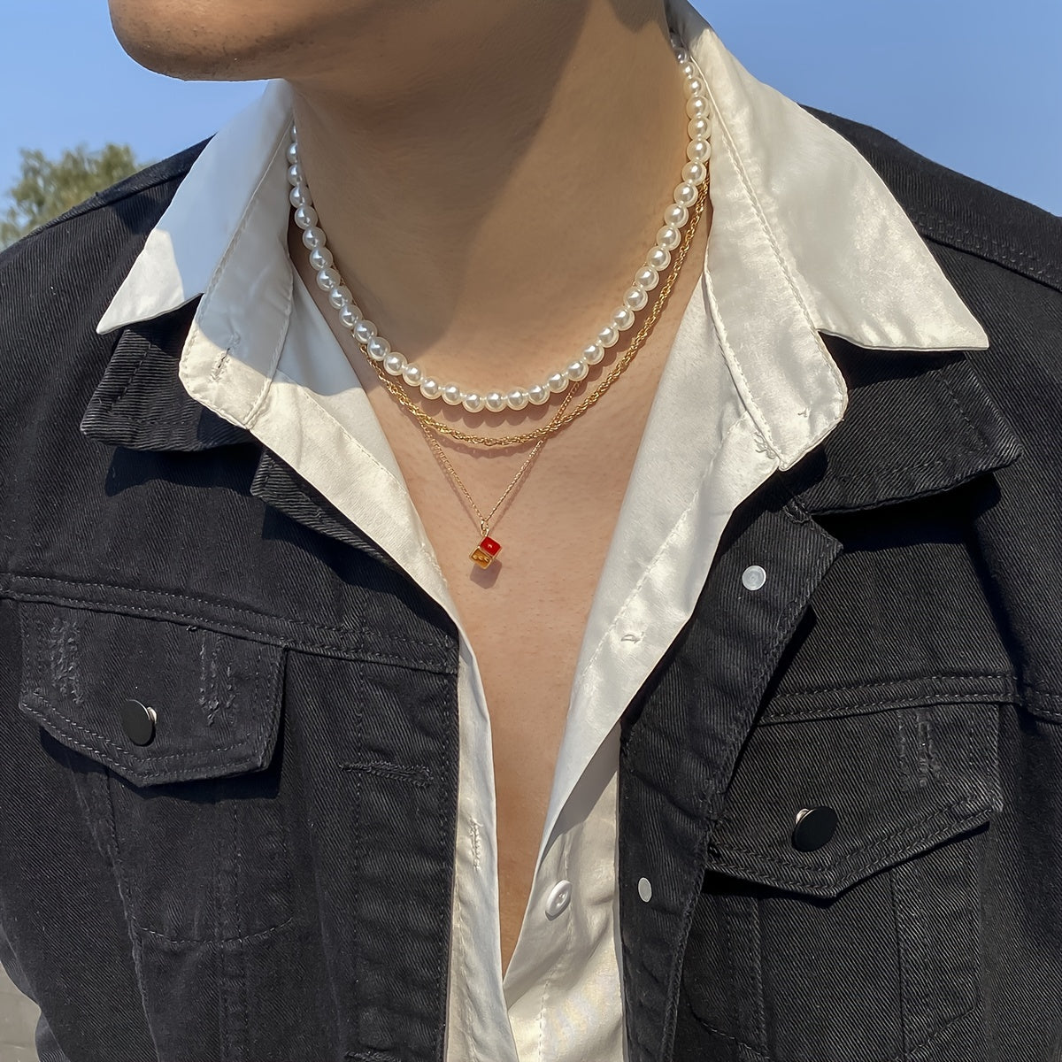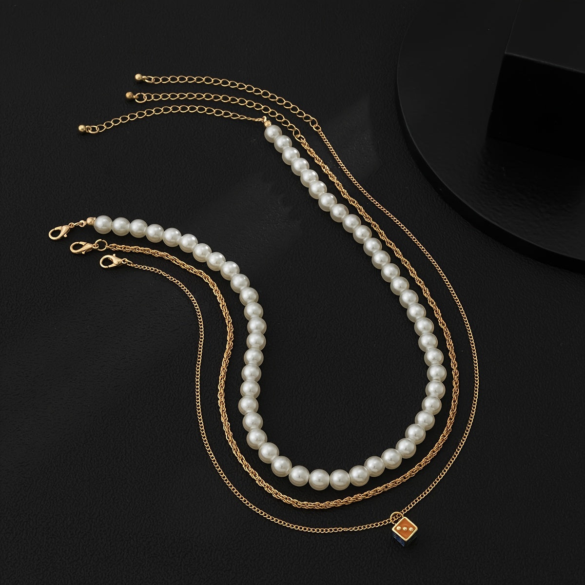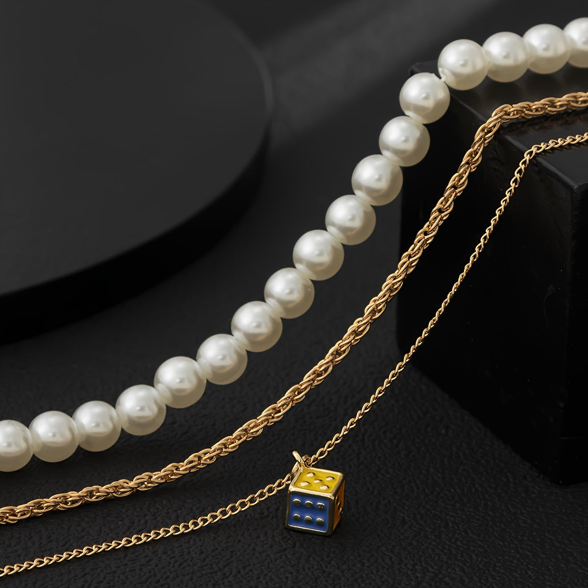 Add a touch of elegance with this set of 3 dripping oil dice pearl necklaces. Perfect for any occasion.