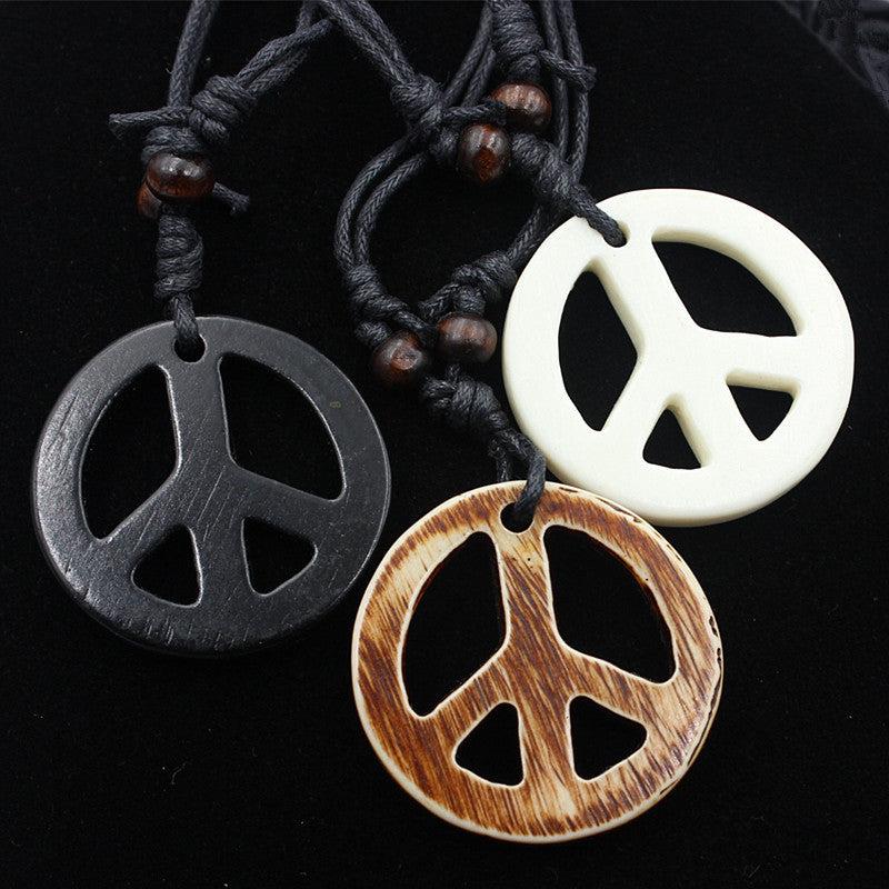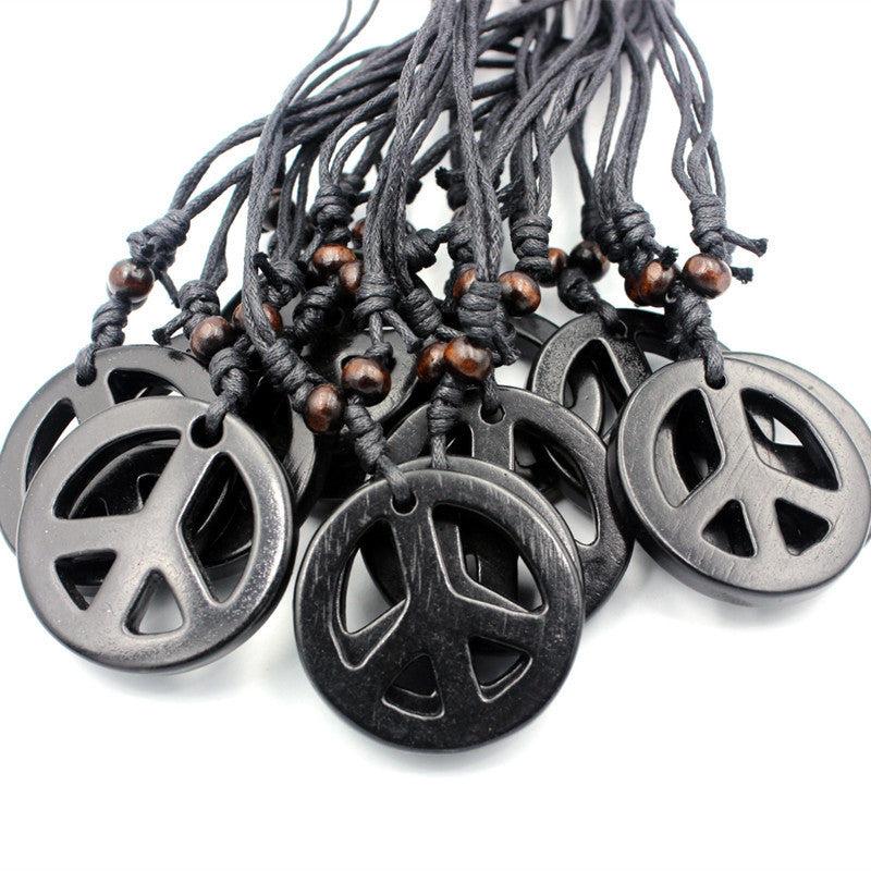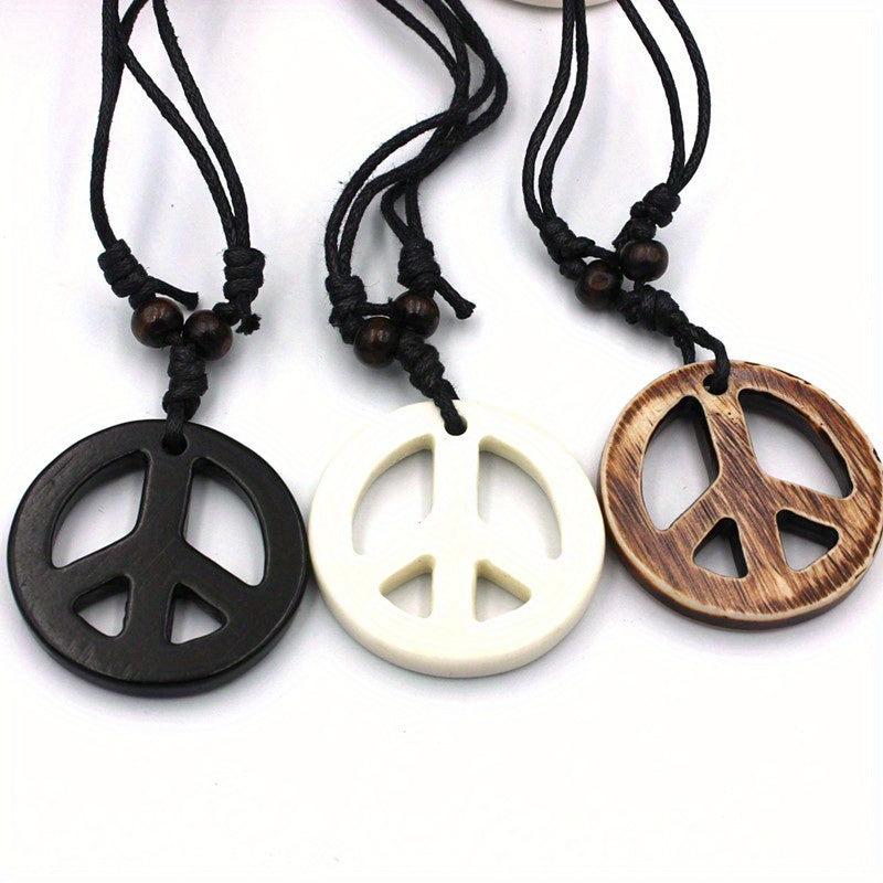 This vintage unisex necklace set features resin peace sign pendants on beaded chains. Perfect summer accessory to add a touch of peace and style to your outfit.