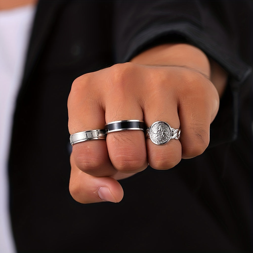 Enhance your daily look with this set of retro men's rings, perfect for parties, gifts, or holidays. These creative rings for men add a stylish touch to any outfit.