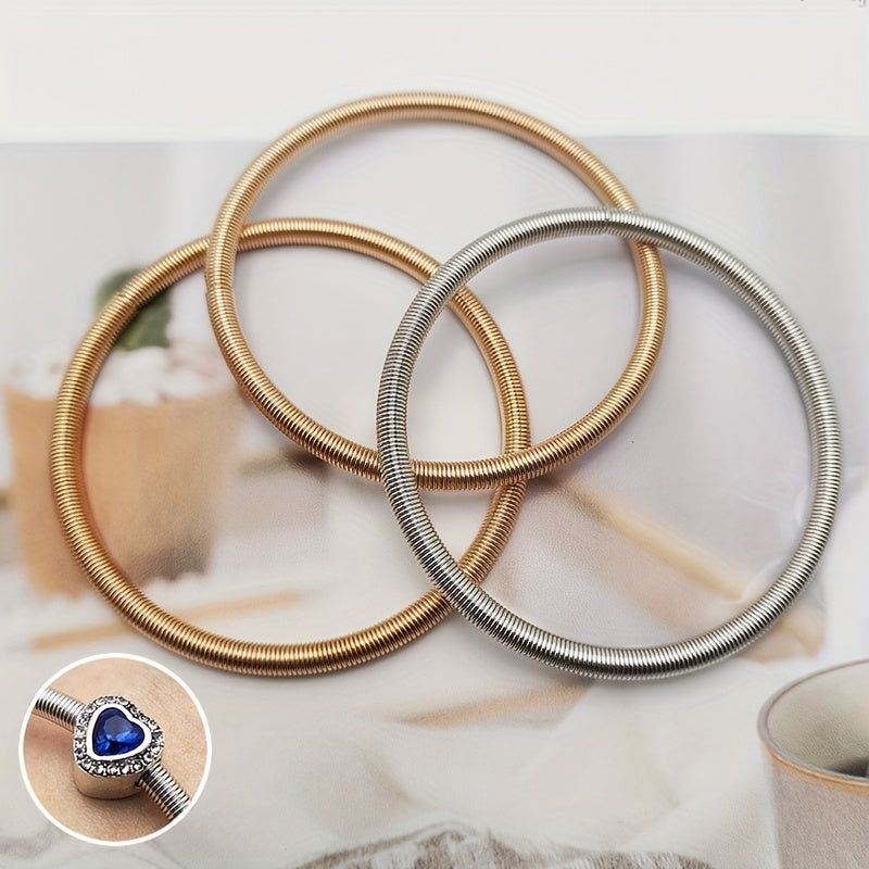 This set includes 3 round spring iron metal bracelets suitable for charm bracelet making and various jewelry projects.