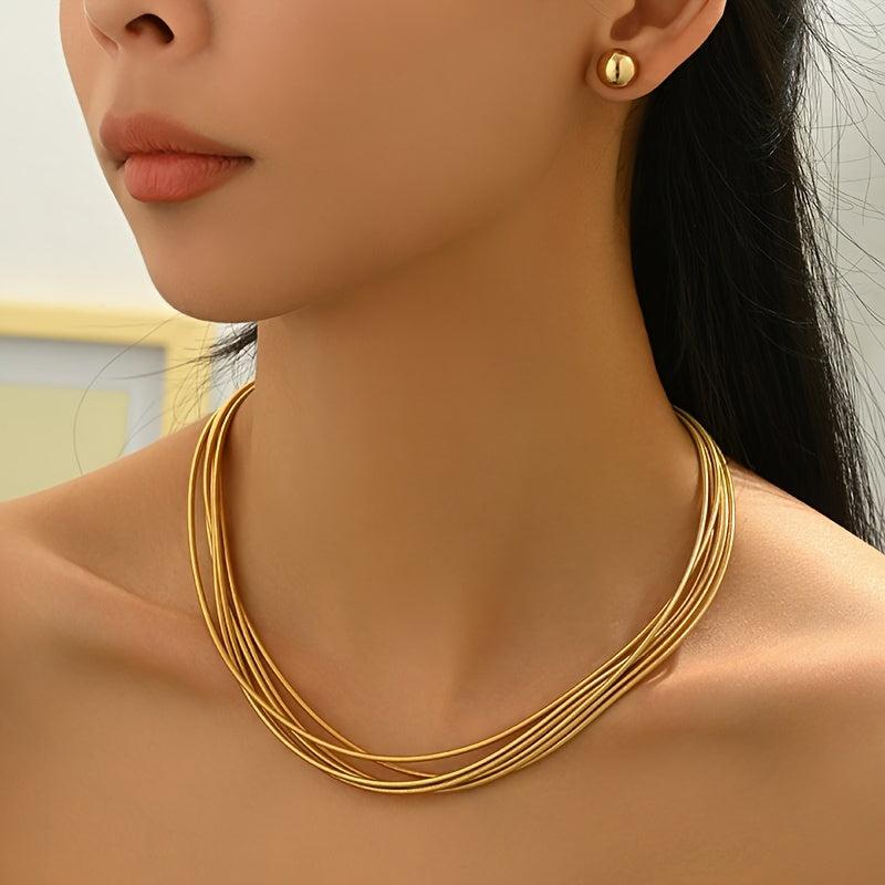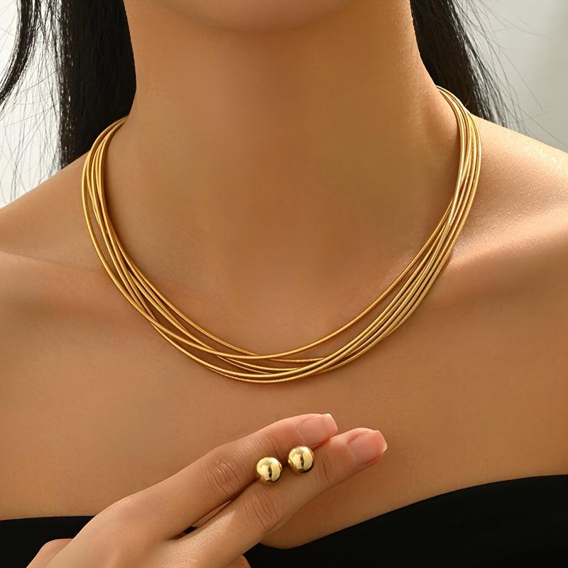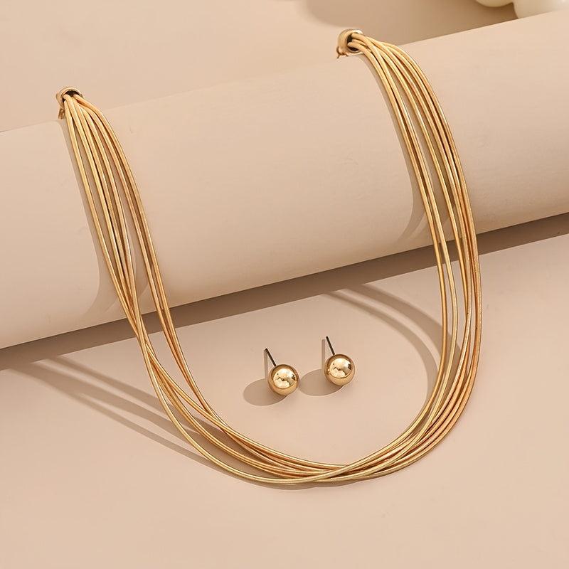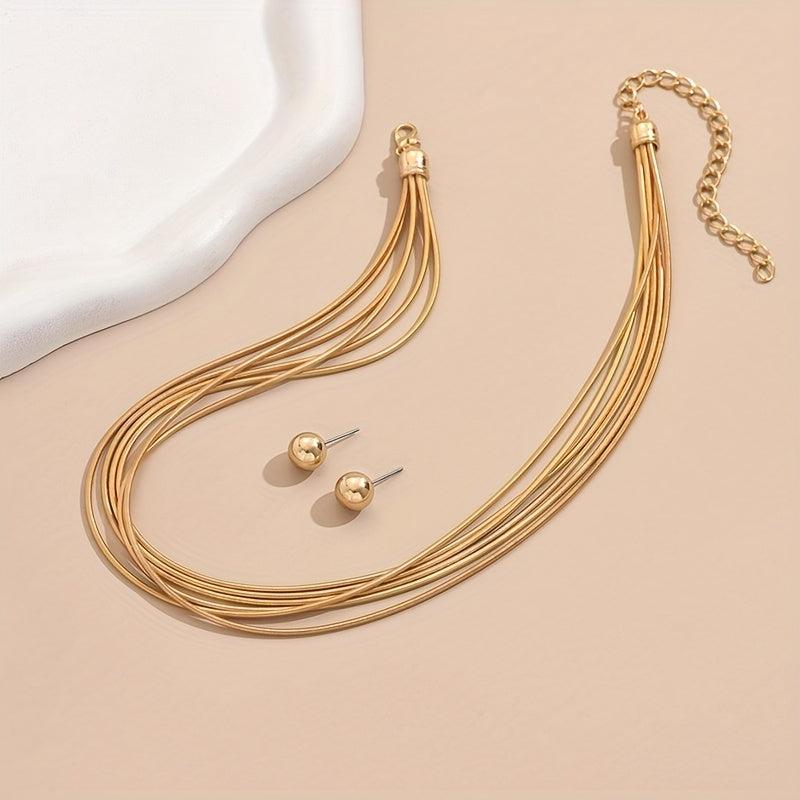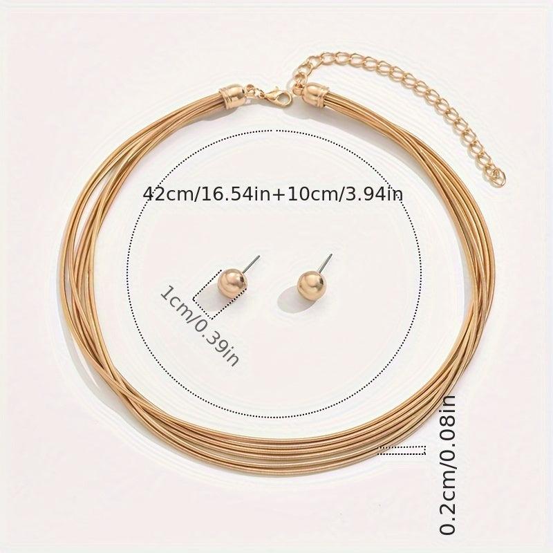 Complete your look with this versatile 3-piece iron layer necklace and earrings set. Perfect for all seasons, this accessory will add a touch of elegance to any outfit.