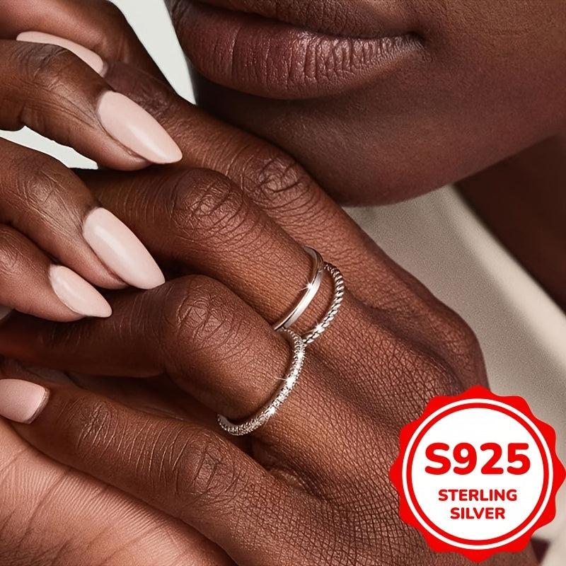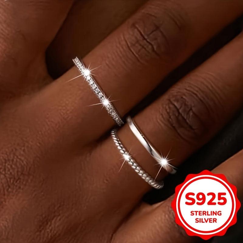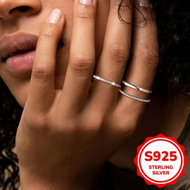 This set includes three stacked rings with synthetic zirconia inlays, perfect for daily wear or parties. Made of fine 925 sterling silver, this jewelry adds an elegant touch to any outfit.