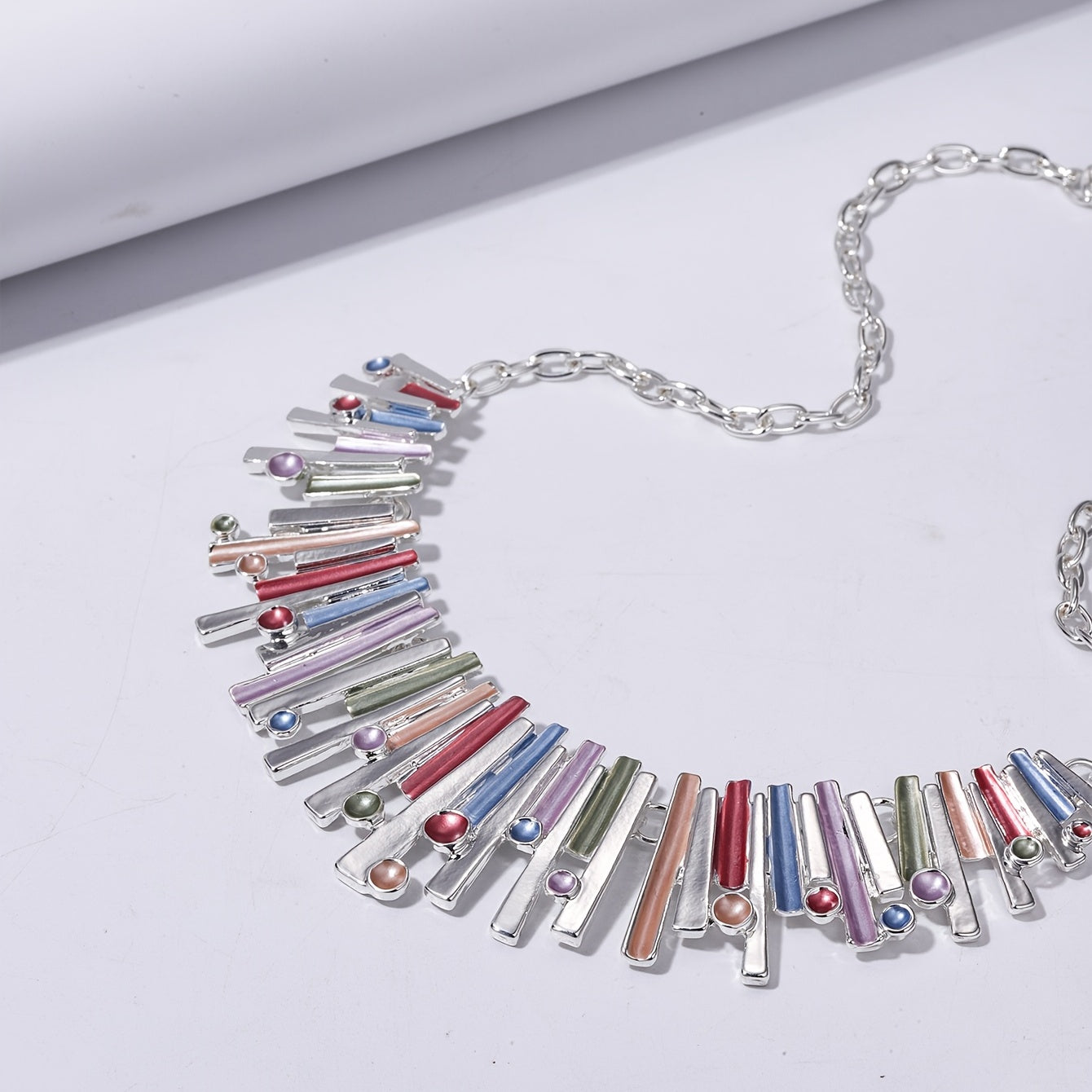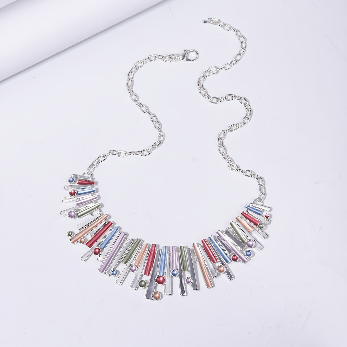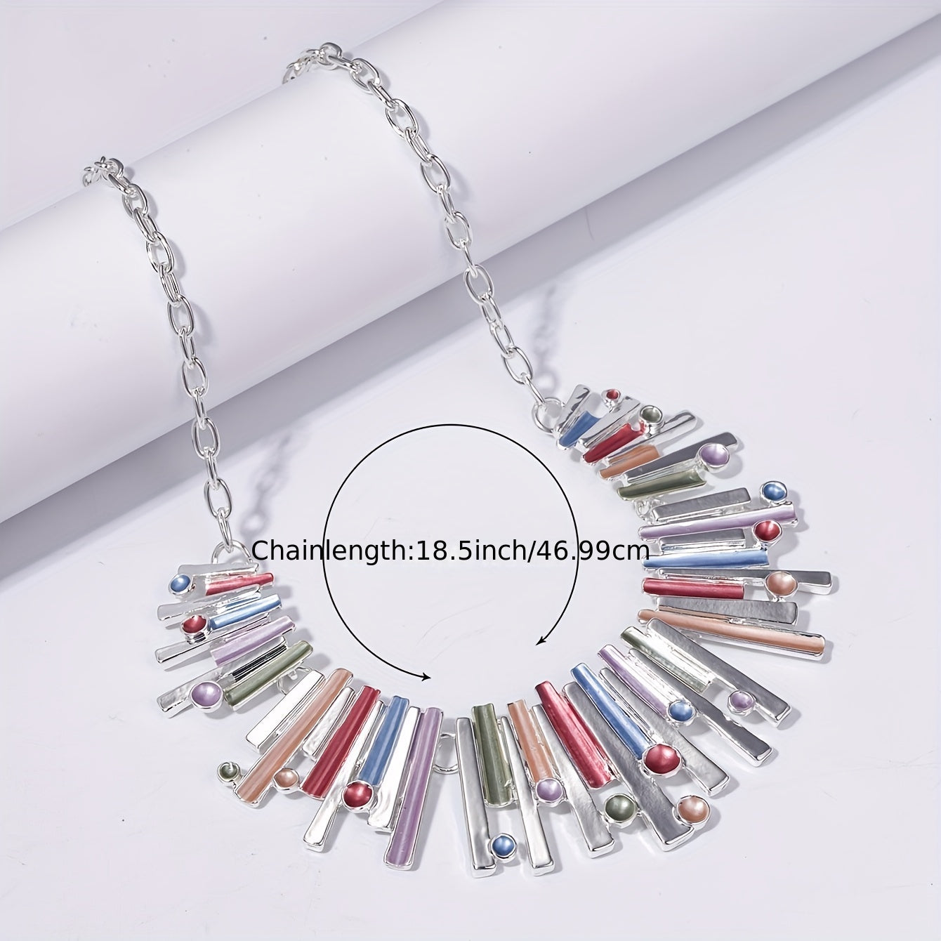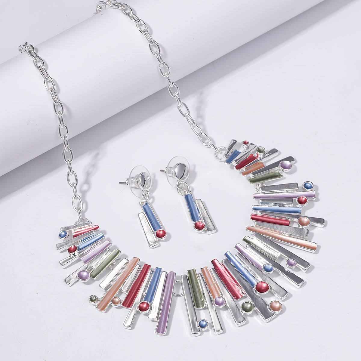 Complete your daily outfits or stun at parties with this set of 3 silver plated geometric earrings and matching necklace. The exaggerated design adds a touch of glamour to any look.