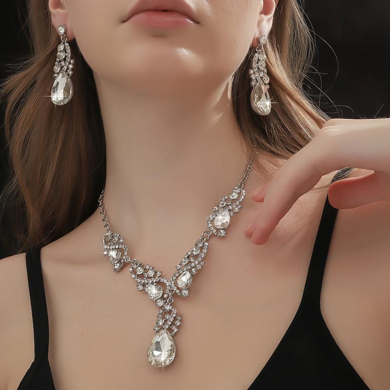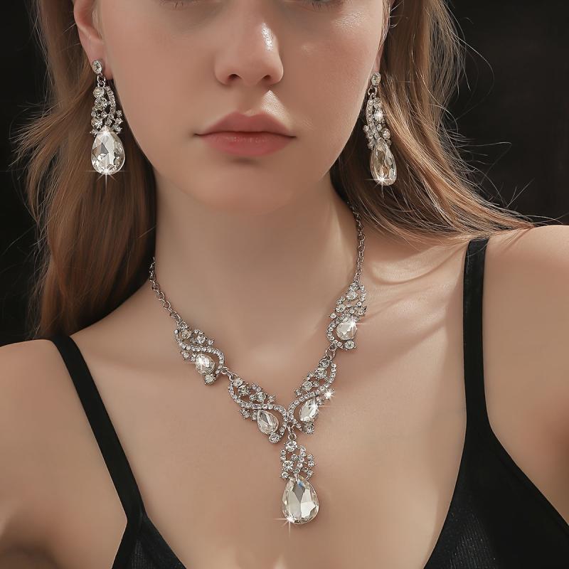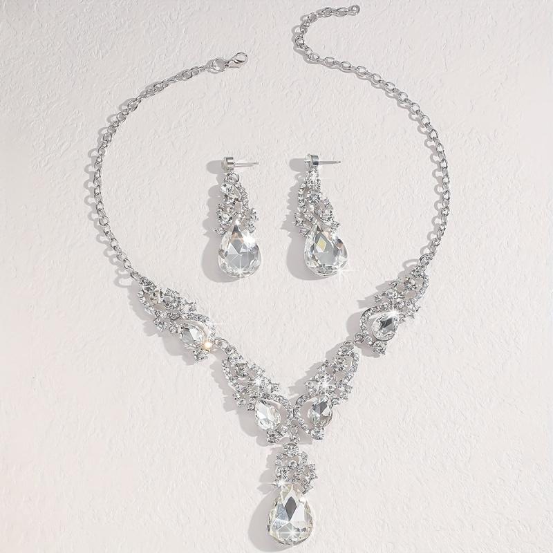 Elegant and eye-catching jewelry set featuring synthetic gemstones. Perfect for parties, banquets, and as a Valentine's gift.