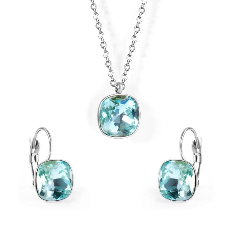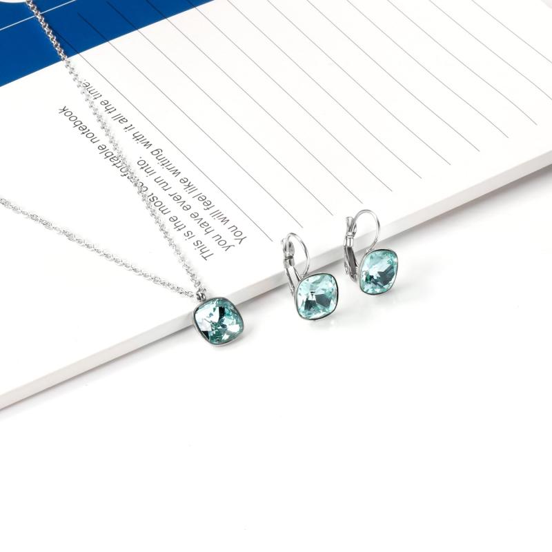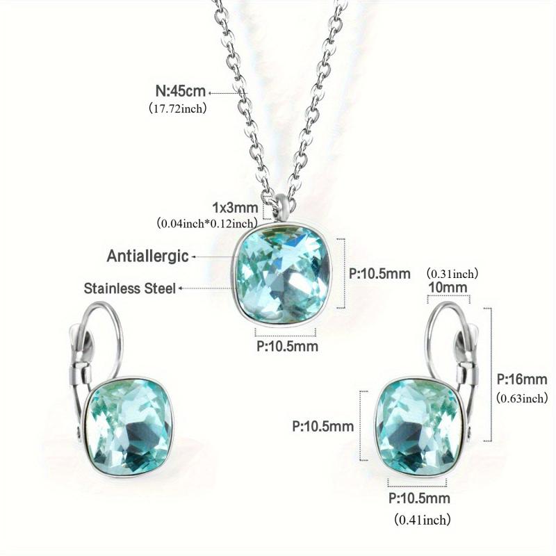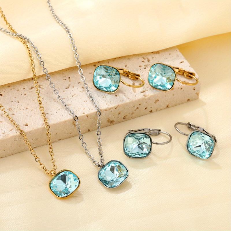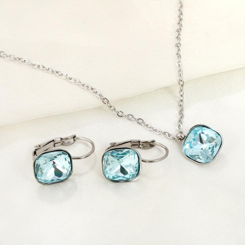 Add sparkle to your festive celebrations with this stainless steel jewelry set featuring aquamarine stones. Perfect for events and parties.