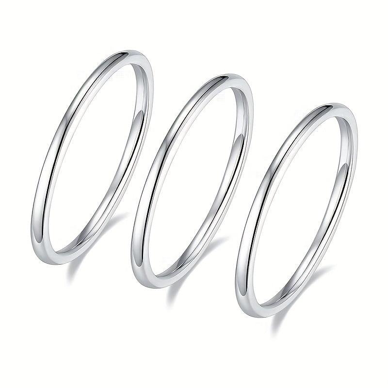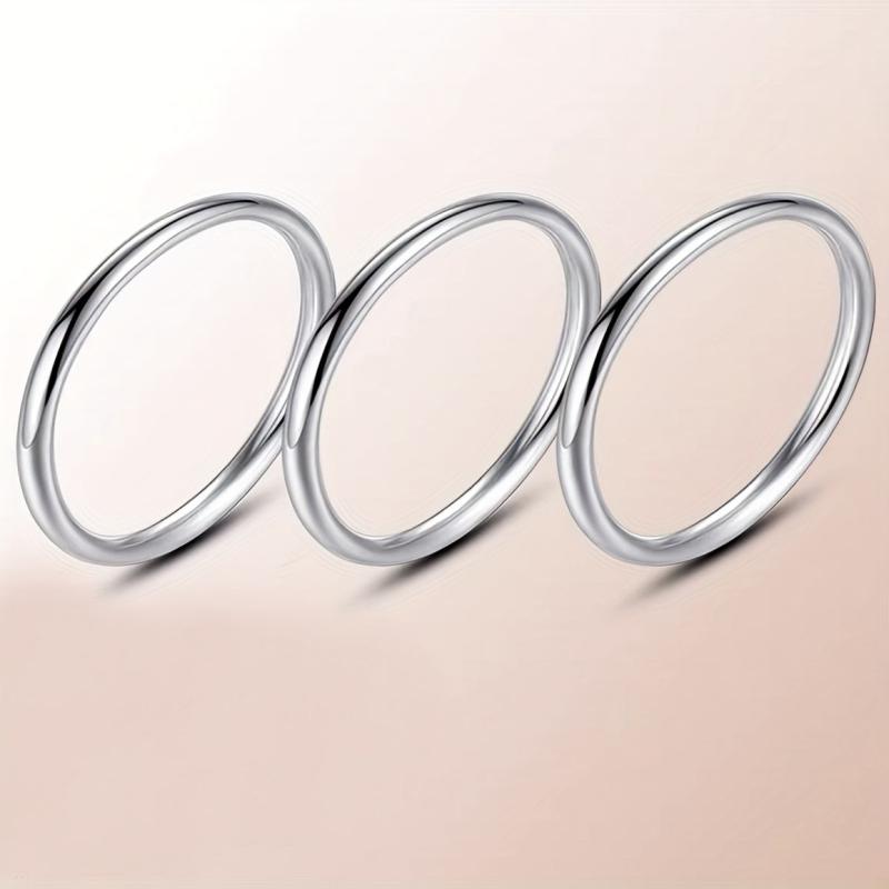 This set includes 3 minimalist band rings made of stainless steel with a silver plated finish. Perfect for men and women to wear as stackable jewelry and match with daily outfits.