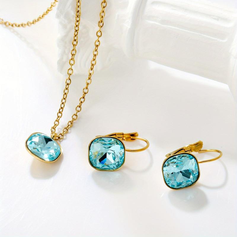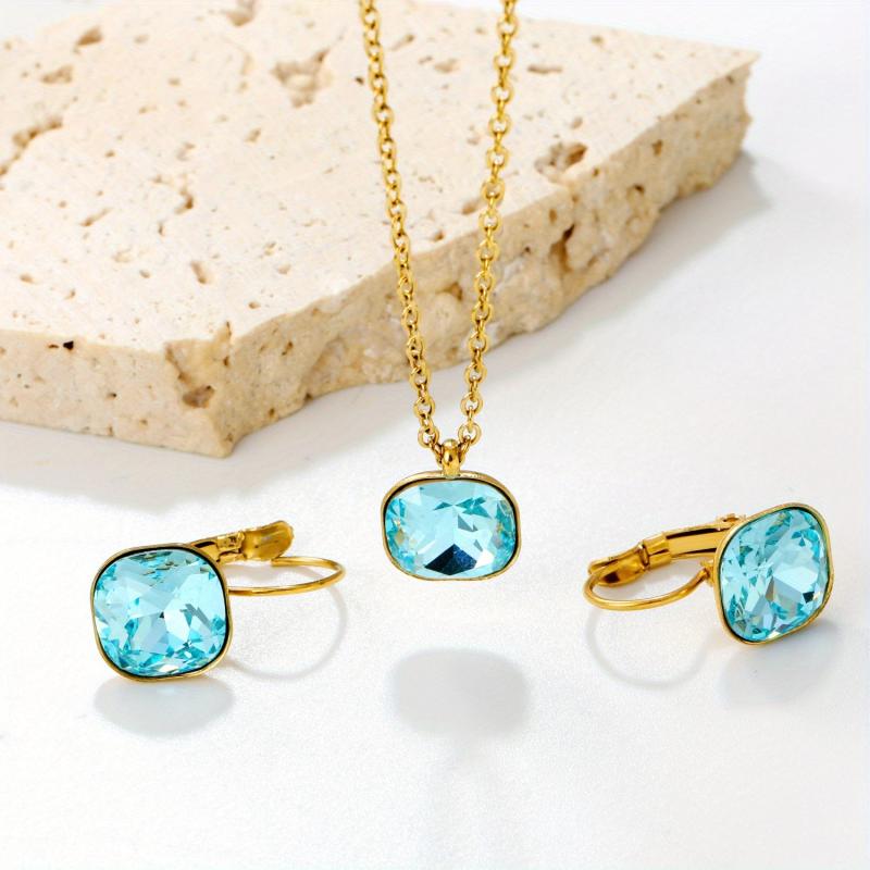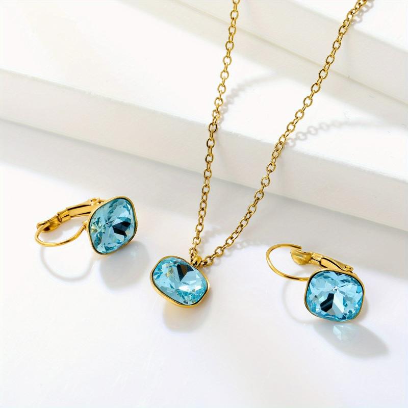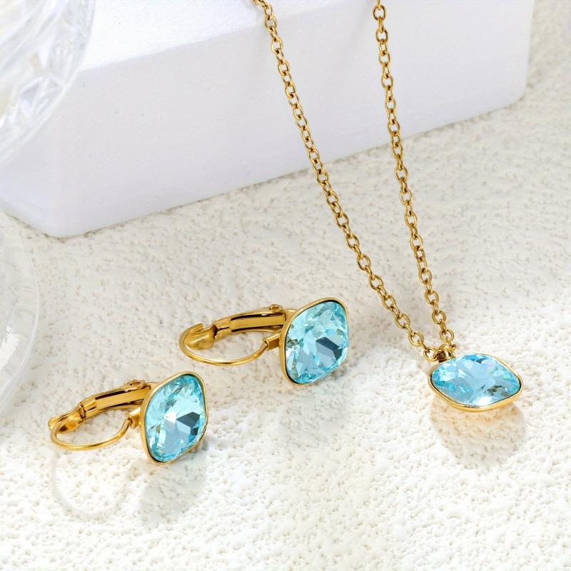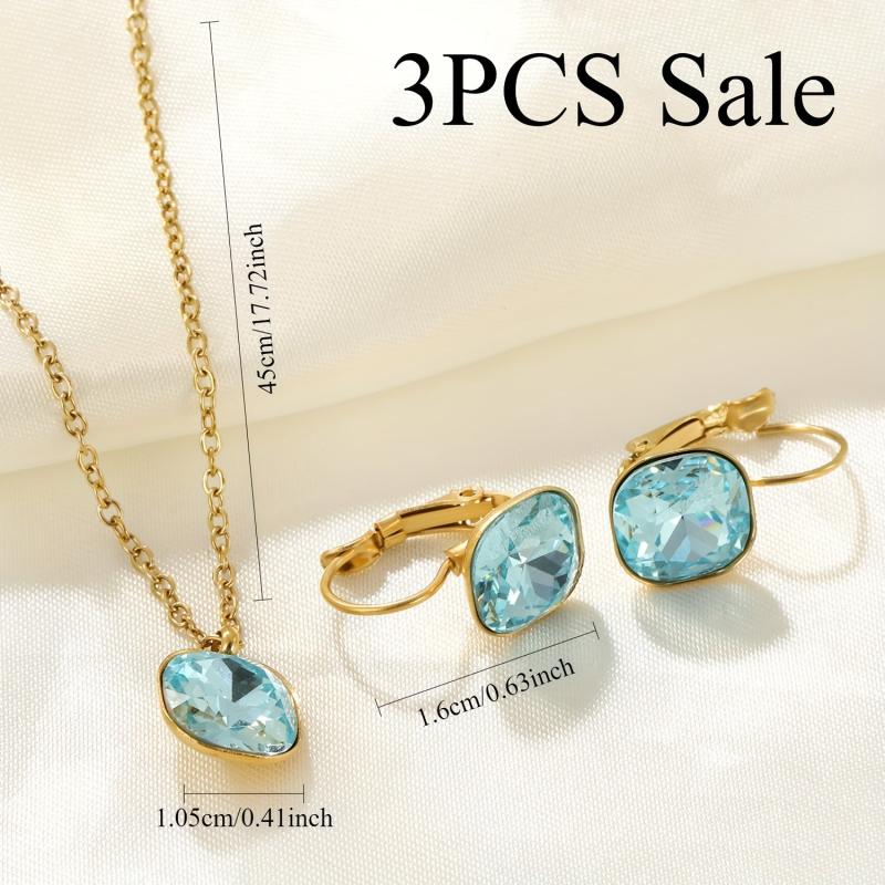Enhance your style with this elegant 3-piece stainless steel crystal necklace and earring set. Perfect for daily wear or special occasions.