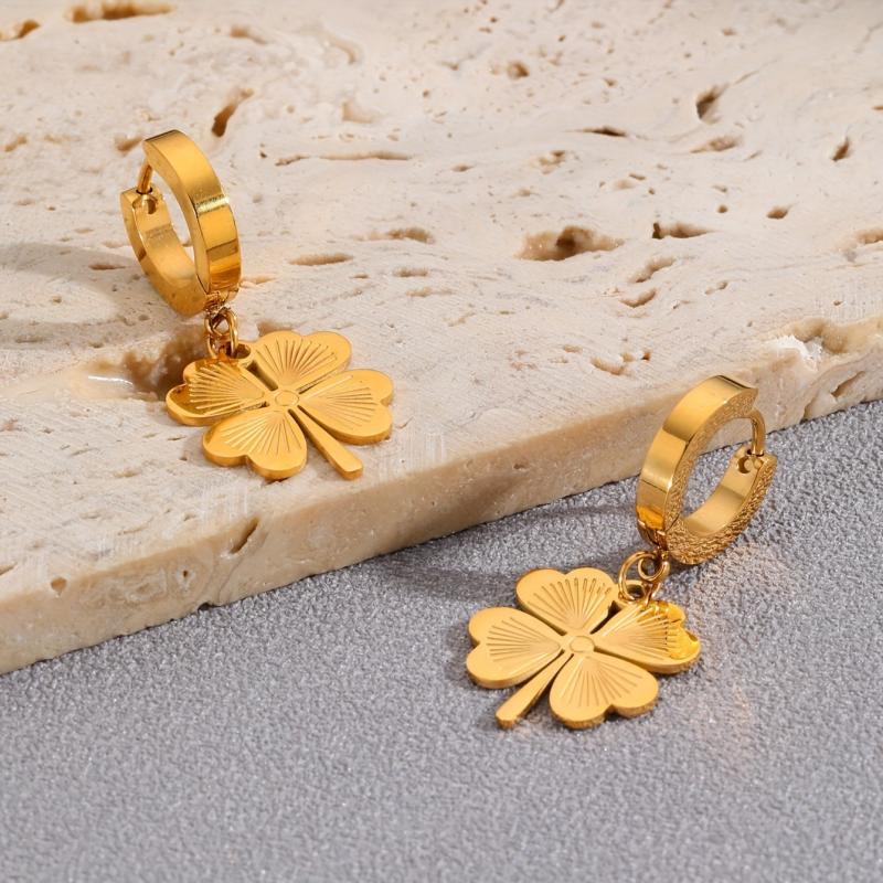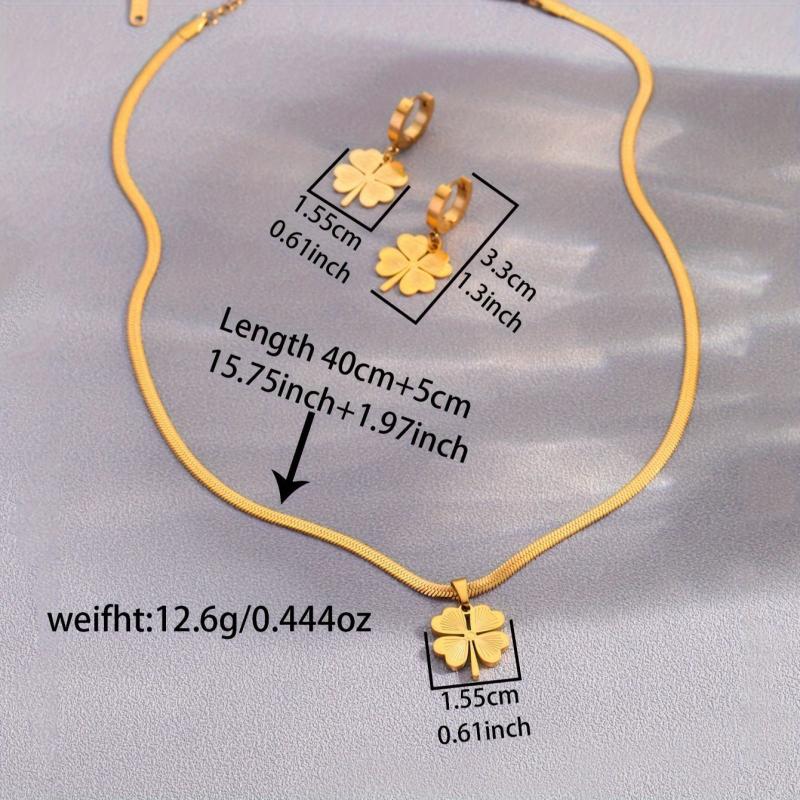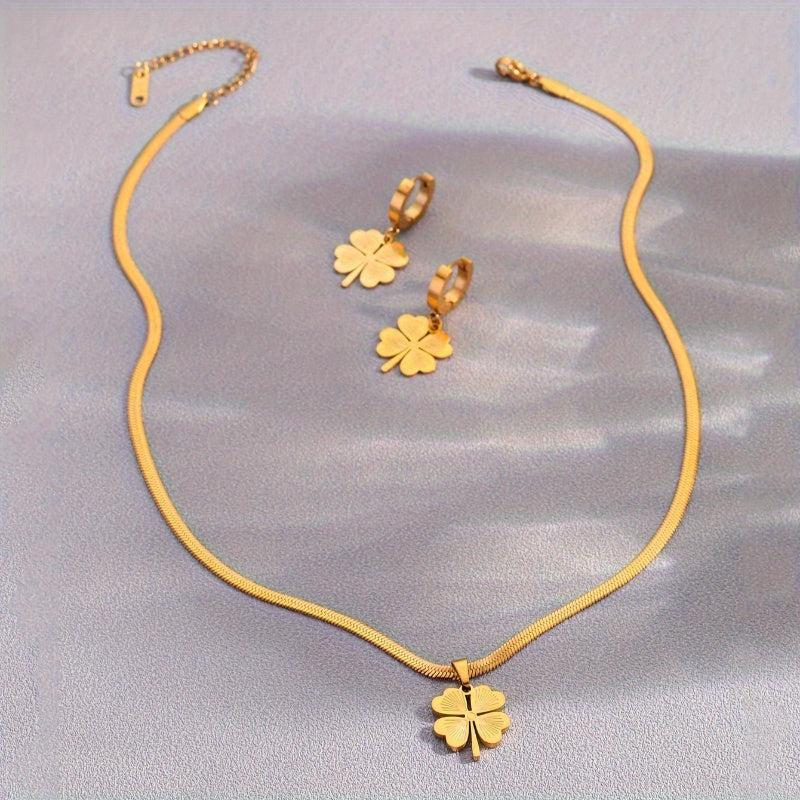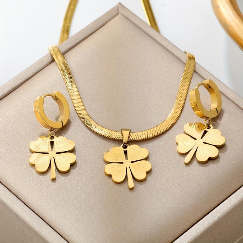 Enhance your style with this elegant stainless steel jewelry set featuring a four-leaf clover design. Perfect for various occasions!
