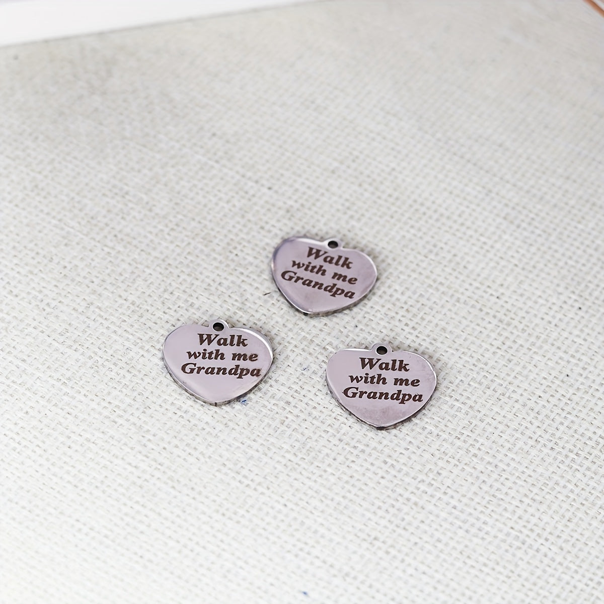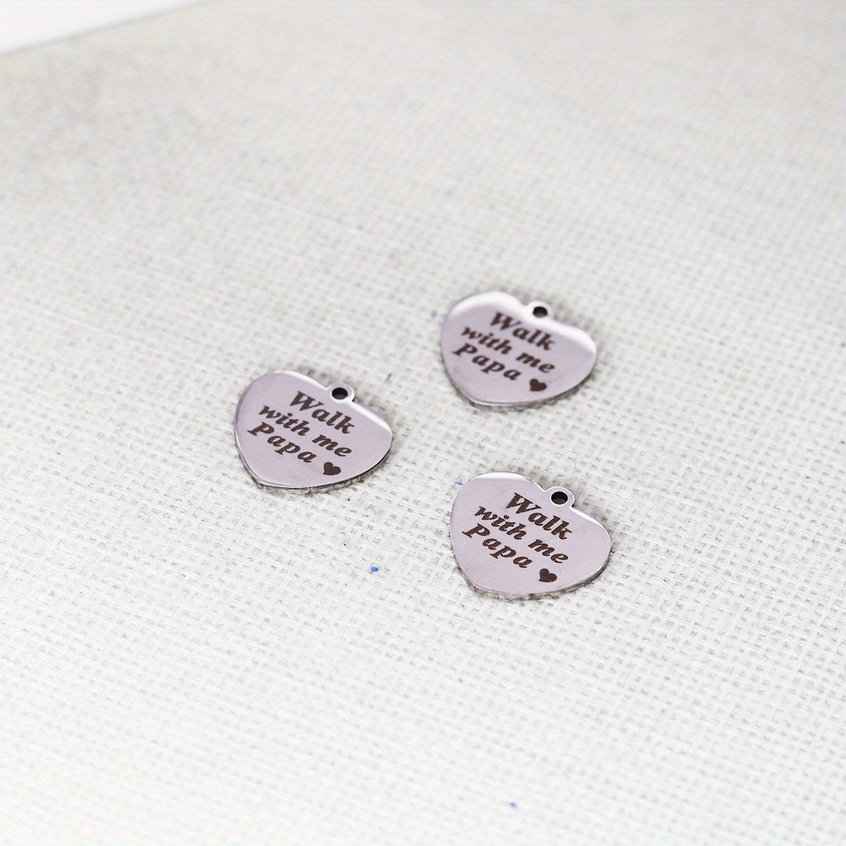 Add a touch of elegance to your DIY jewelry with these 3pcs stainless steel heart shape tag pendants. Each pendant features red letters or graphics on a silvery round heart shape, perfect for bracelets, necklaces, earrings, and other accessories.