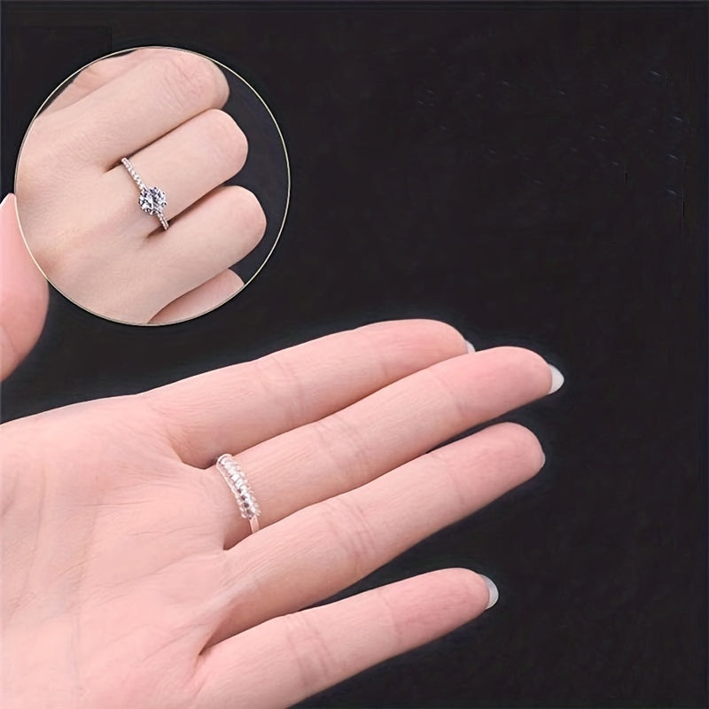 Keep your rings secure and prevent them from slipping off with these transparent wire ring adjusters. Easily adjust the size of your ring for a comfortable fit.