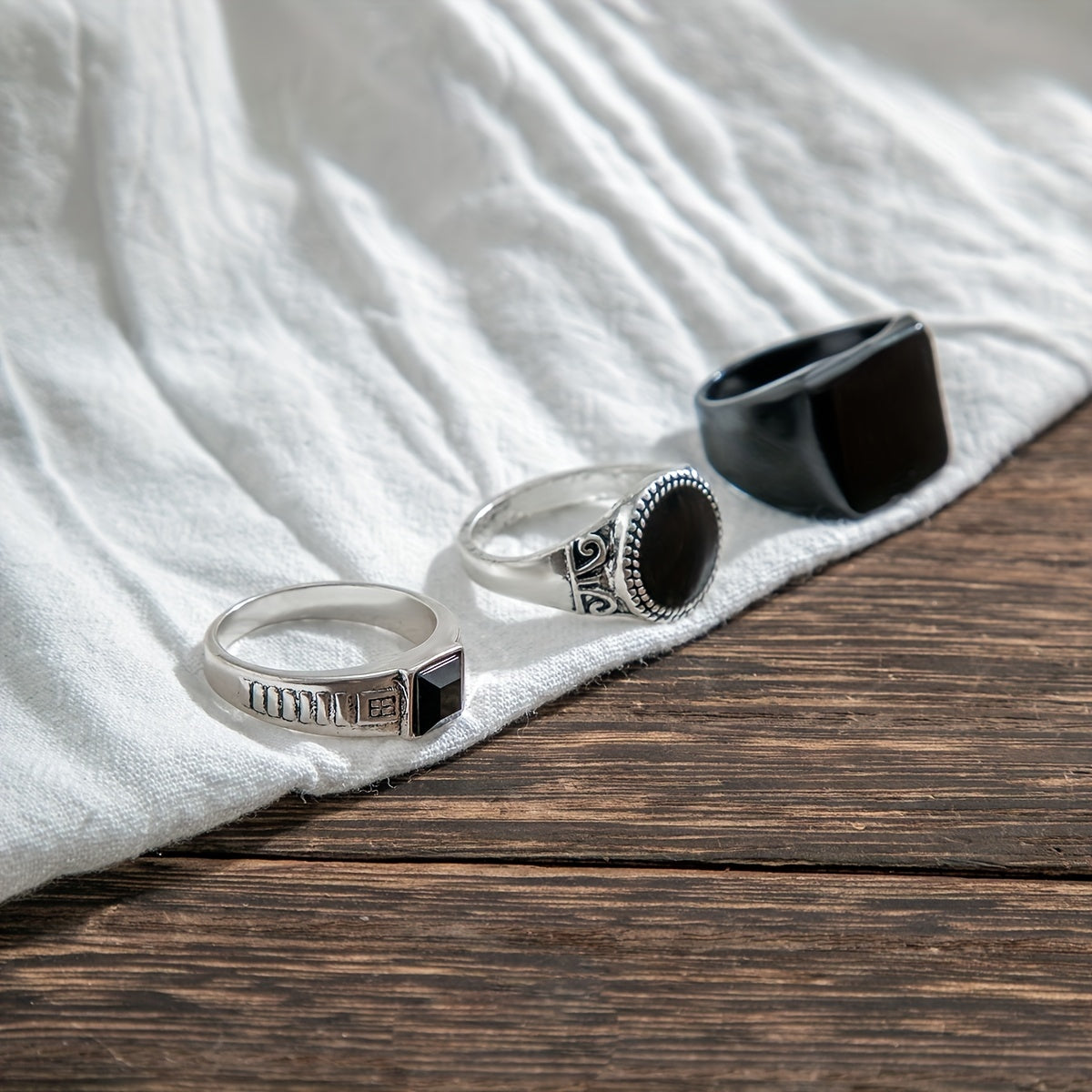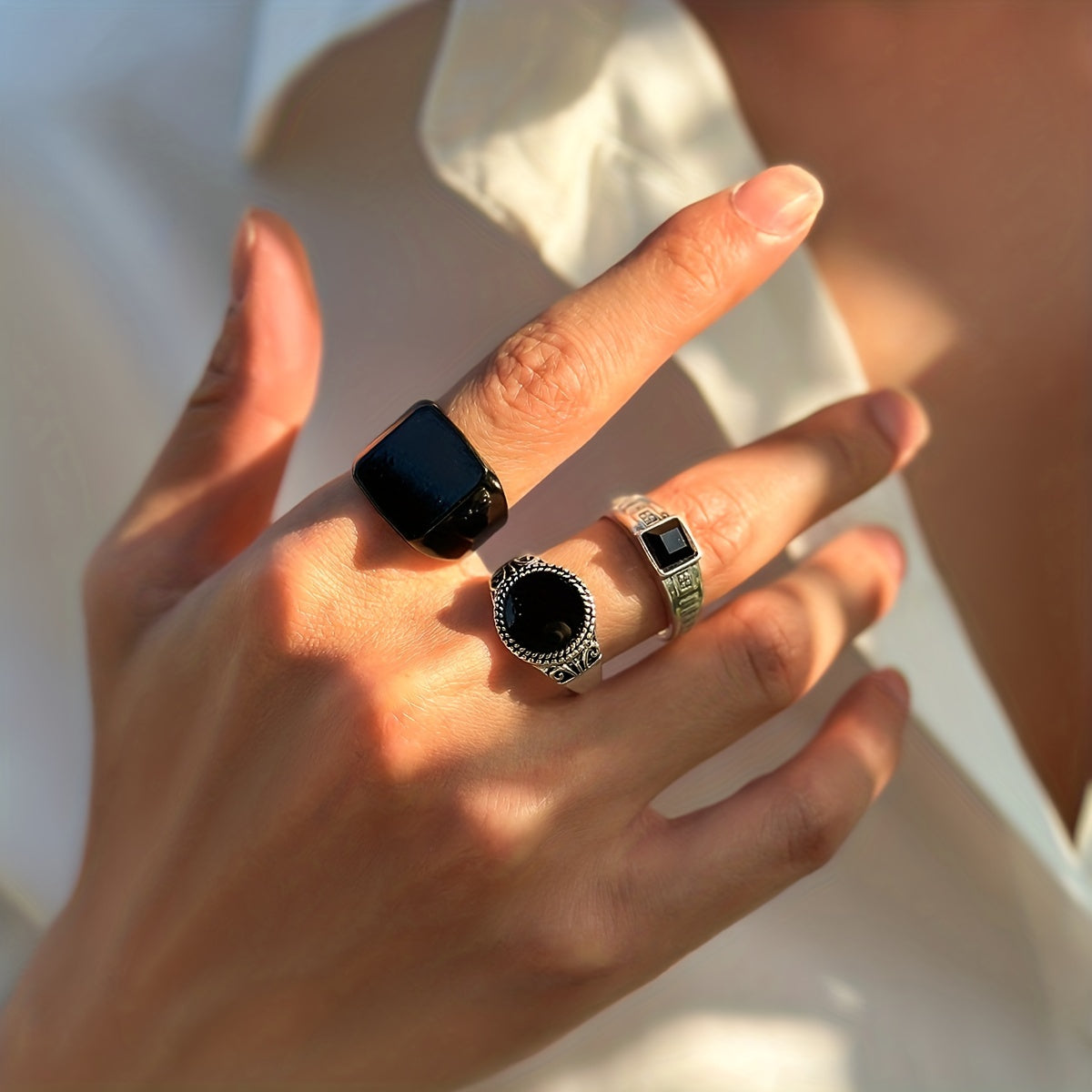 Add a bold statement to your outfit with this 3-piece vintage exaggerated joint ring set for men.