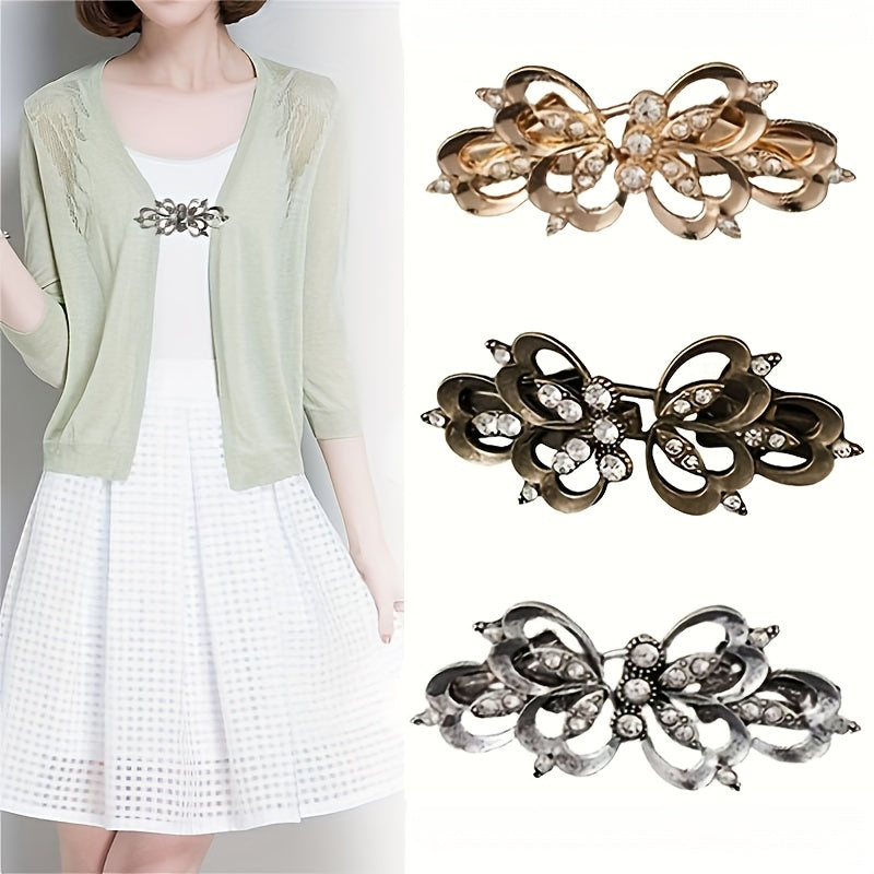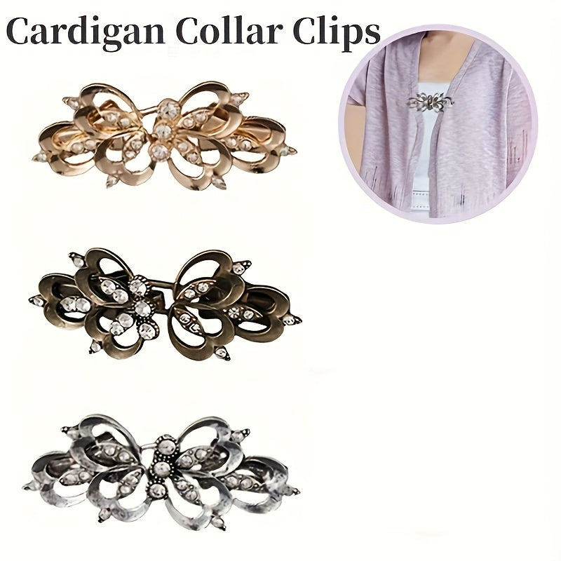 Add a touch of vintage glamour with these rhinestone sweater clips that can also be used as cardigan and scarf pins. They are non-slip and perfect for securing shawls and capes.