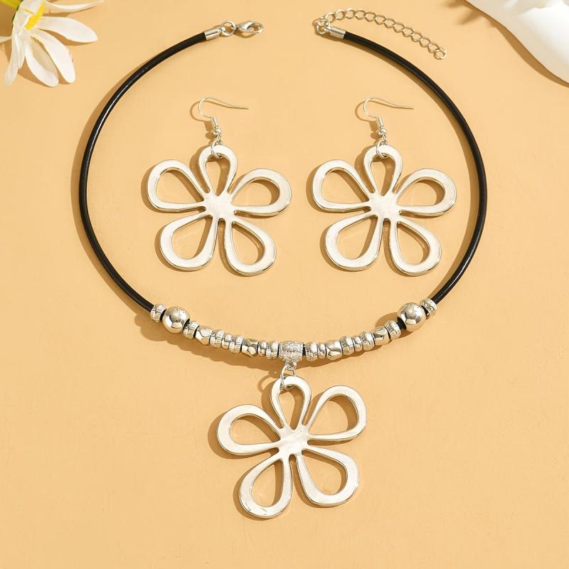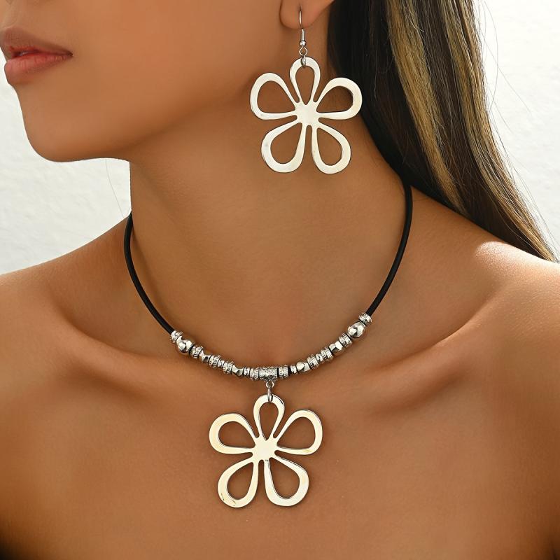 • Includes rope necklace with hollow flower pendant and matching earrings