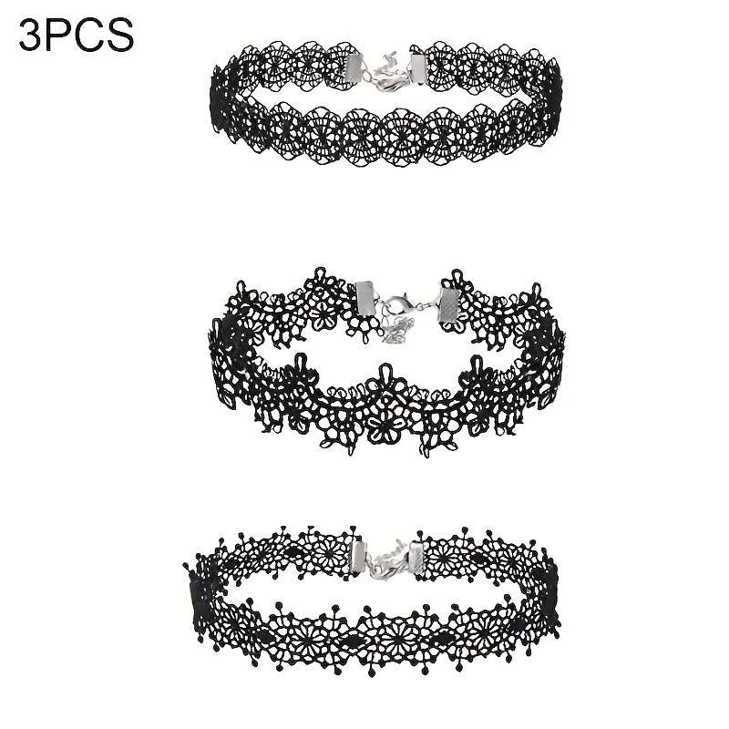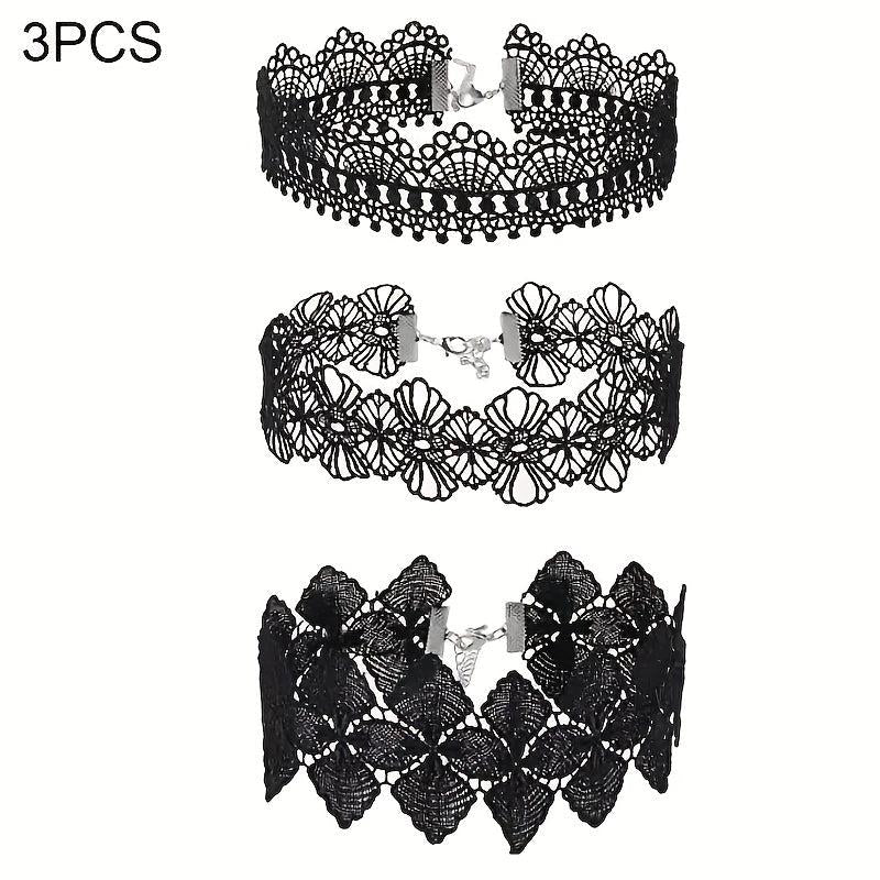 Enhance your outfit with this 3pcs set of lace choker necklaces. Perfect for a sexy and stylish look.