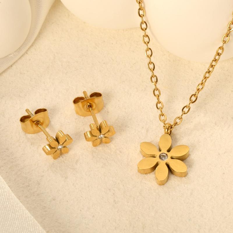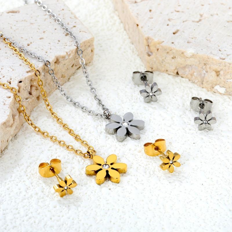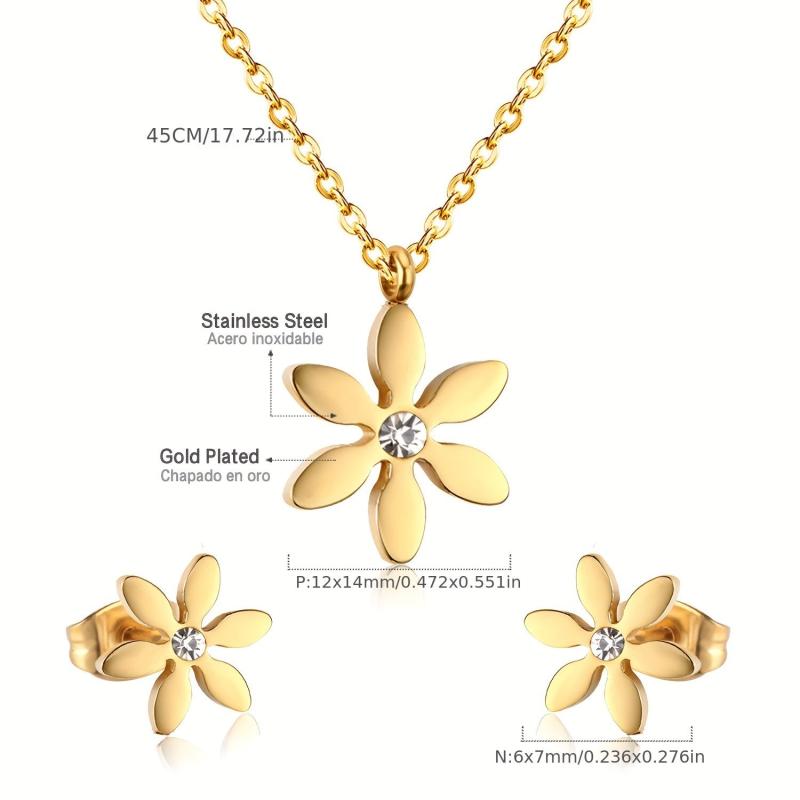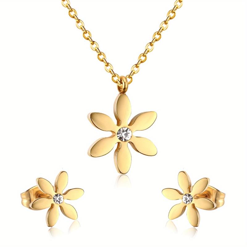 Complete your outfit with this elegant 3-piece jewelry set. The pendant necklace and earrings feature a six-petal design with sparkling rhinestones, perfect for banquets, weddings, parties, concerts, and festivals.