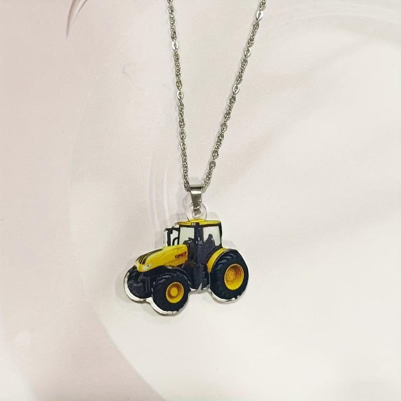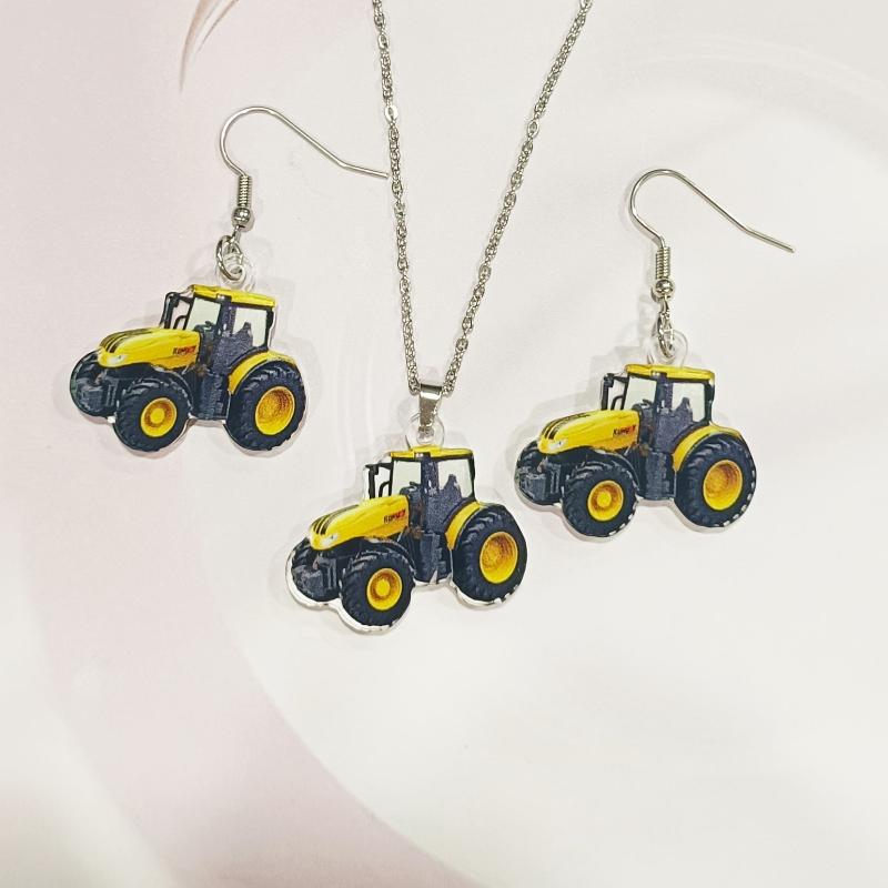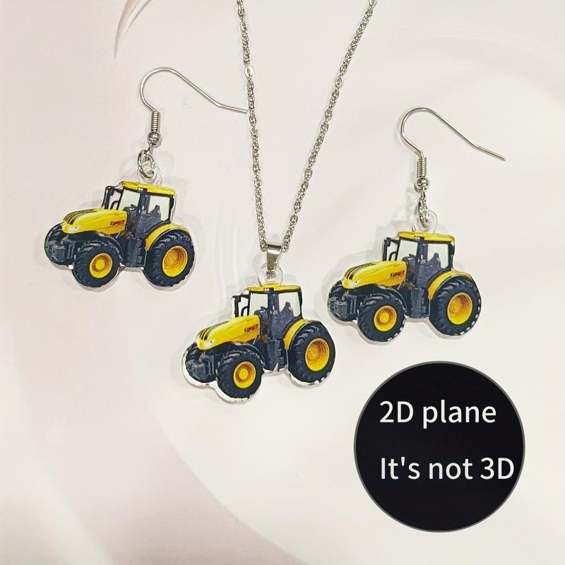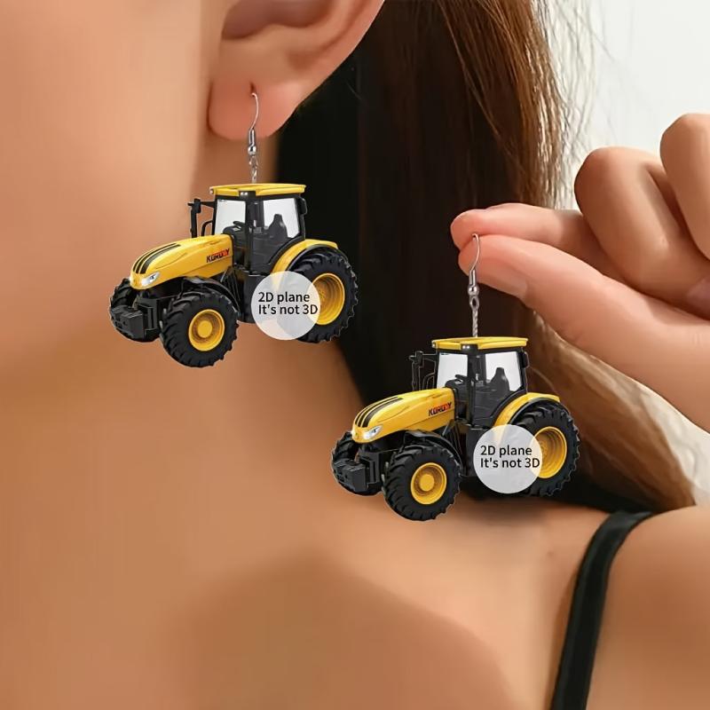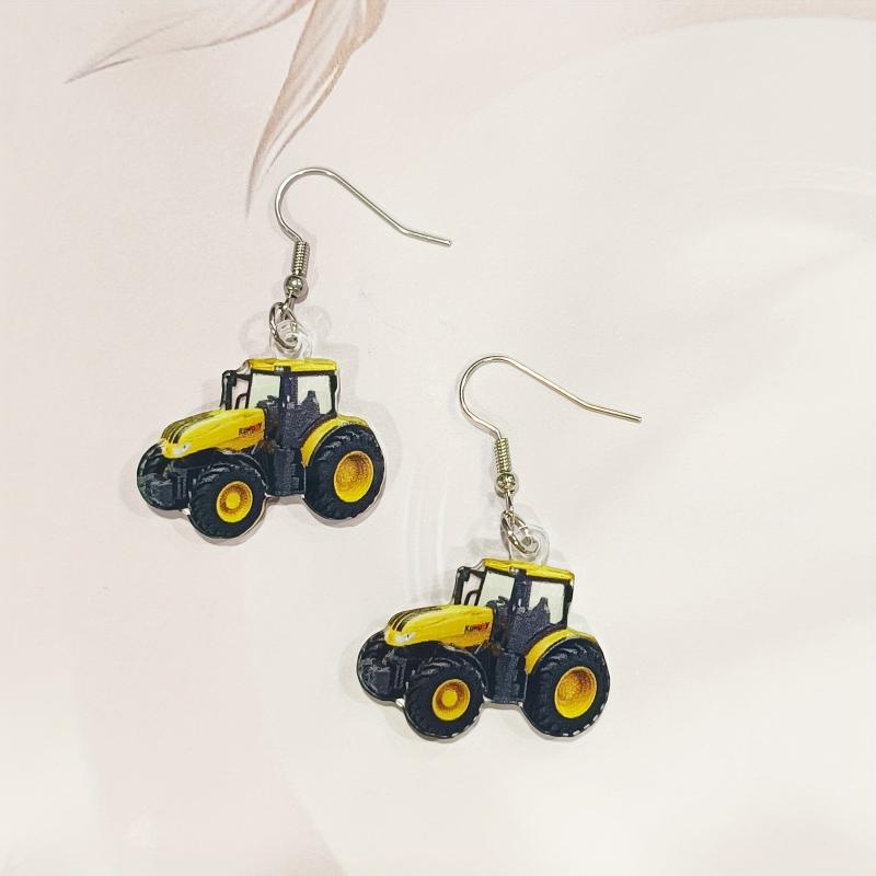 Add a touch of fun to your everyday look with this 2D acrylic set featuring a cute cartoon yellow tractor design. Ideal for casual wear, parties, or holidays.