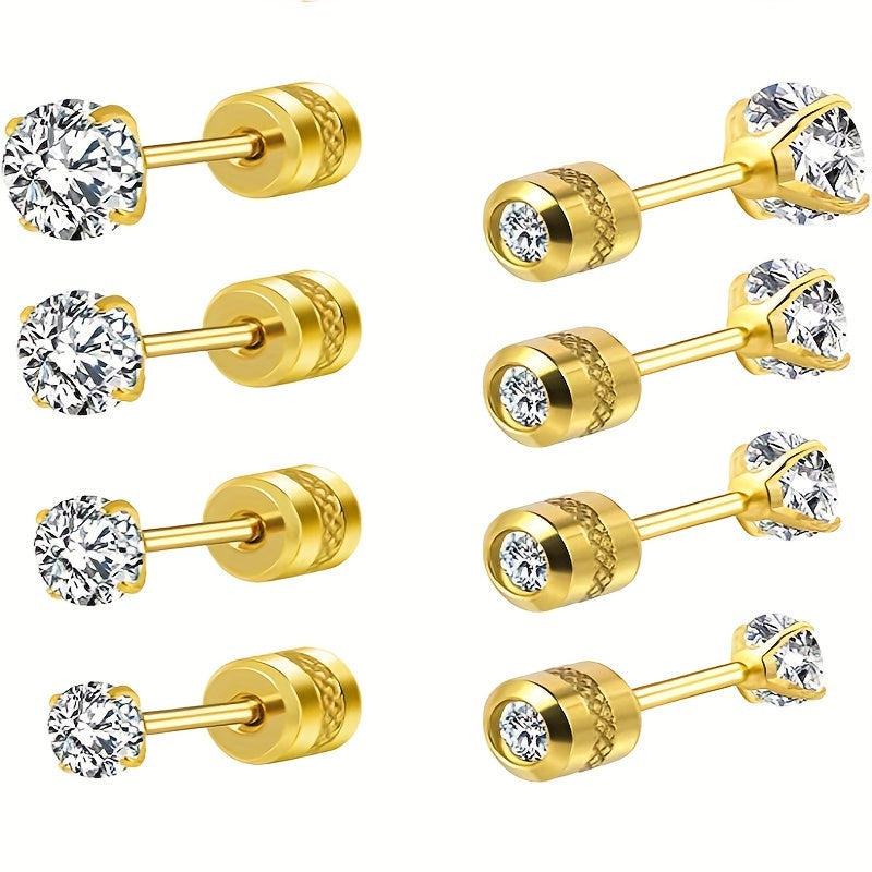These stainless steel stud earrings feature a spiral design with zircon accent, perfect for men and couples. Hypoallergenic and durable for everyday wear.