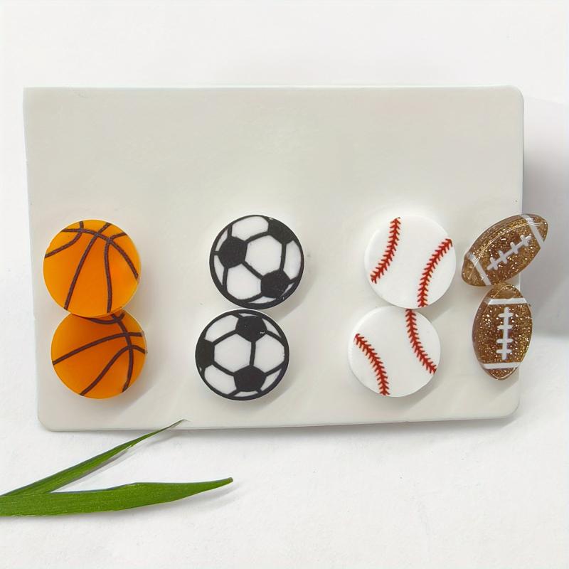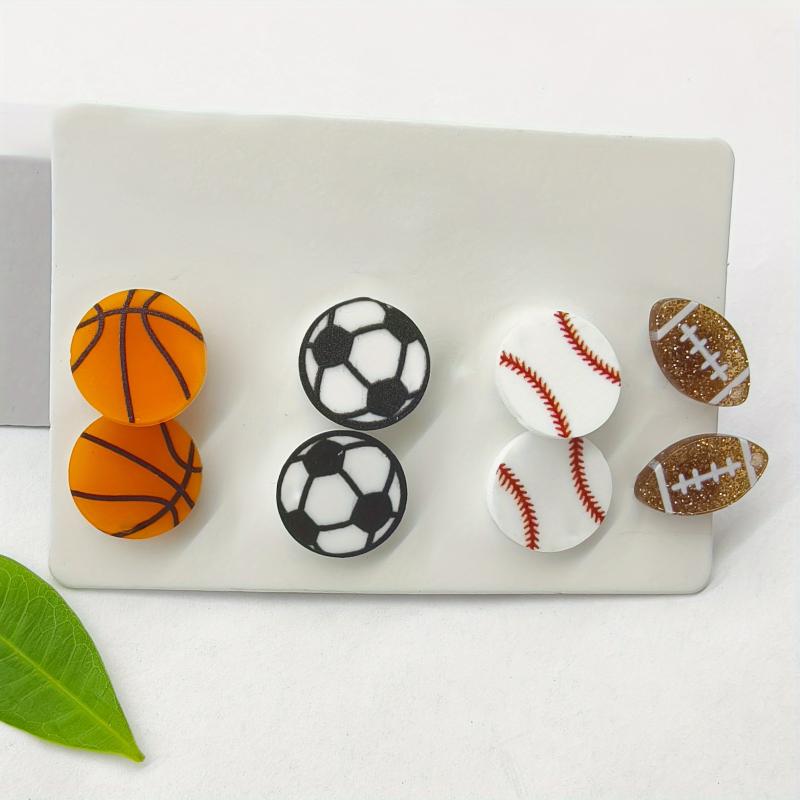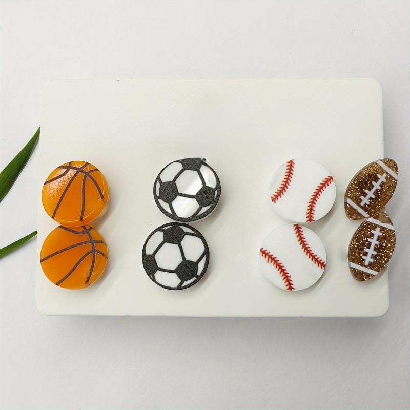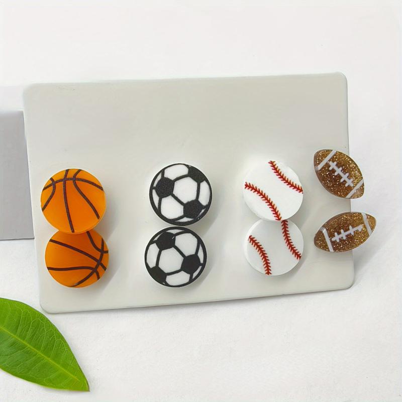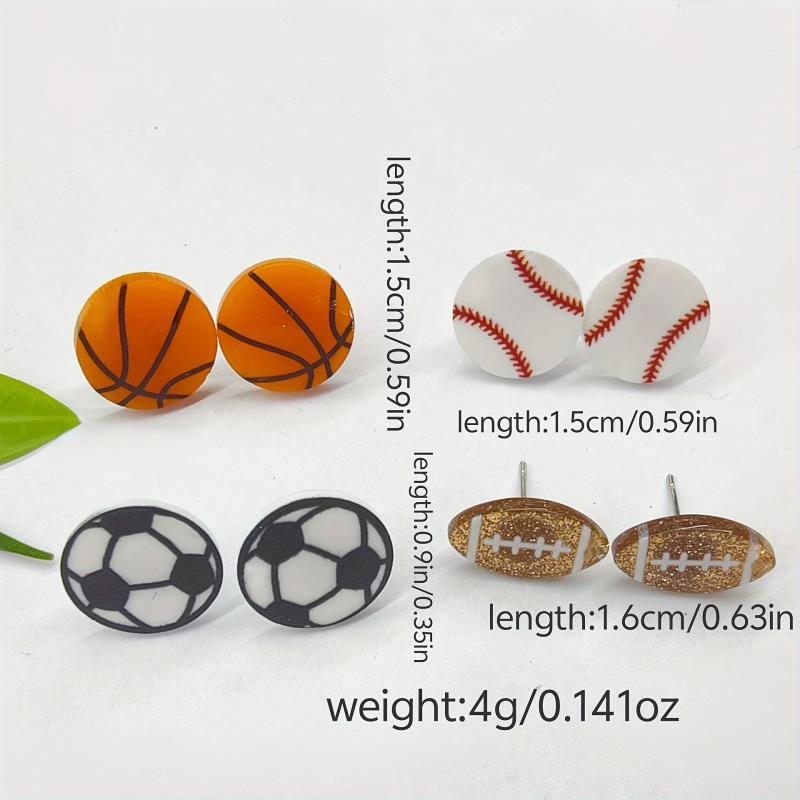This set includes 4 pairs of sports-themed stud earrings perfect for daily wear or sporting events. Made with acrylic and zinc alloy posts, these earrings are suitable for all seasons.