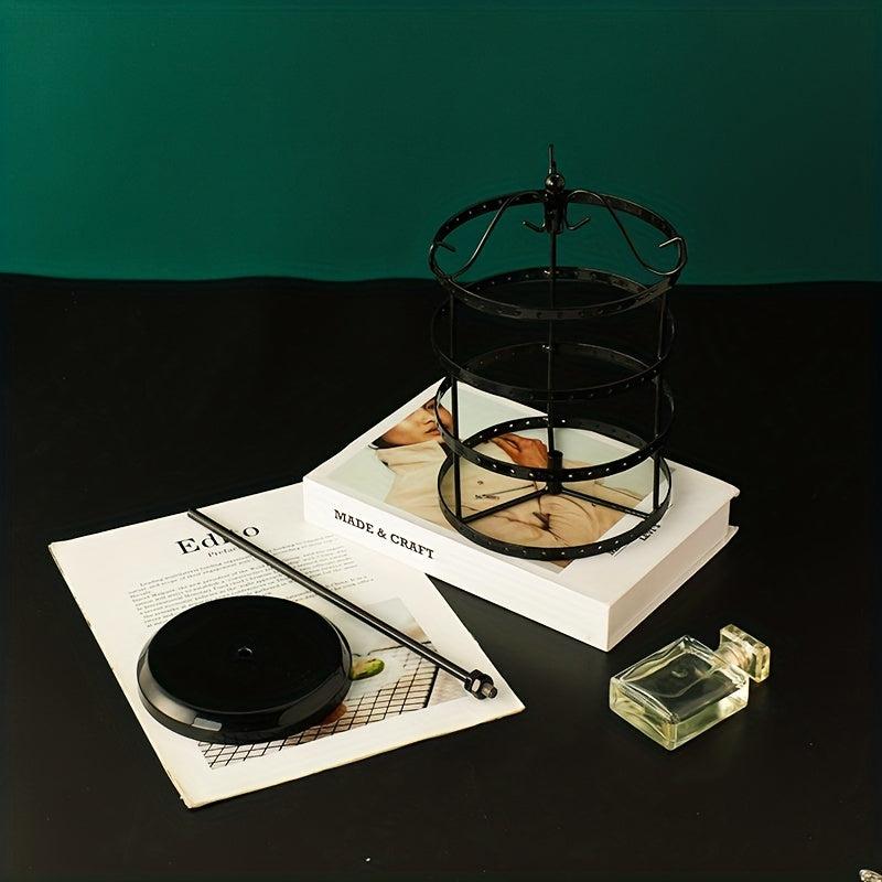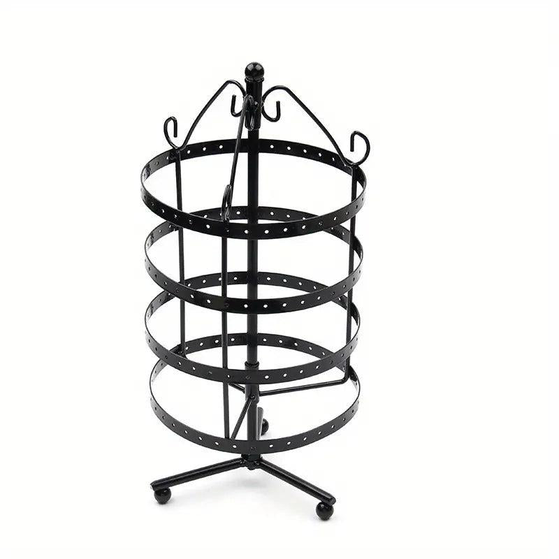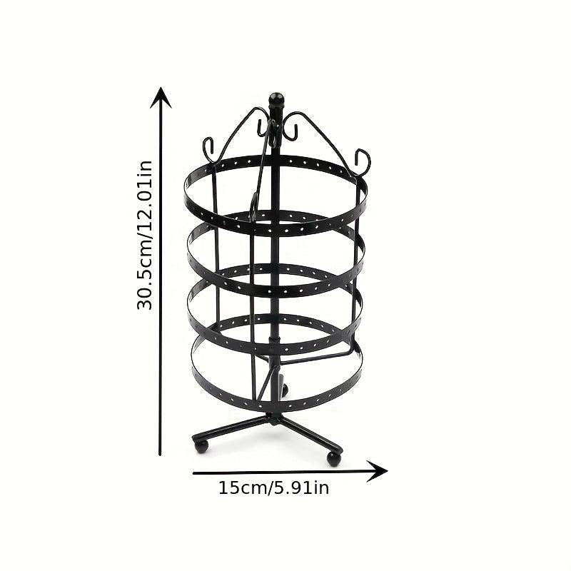 Keep your earrings organized with this sleek metal rotating earring holder. Perfect for displaying your favorite jewelry pieces.