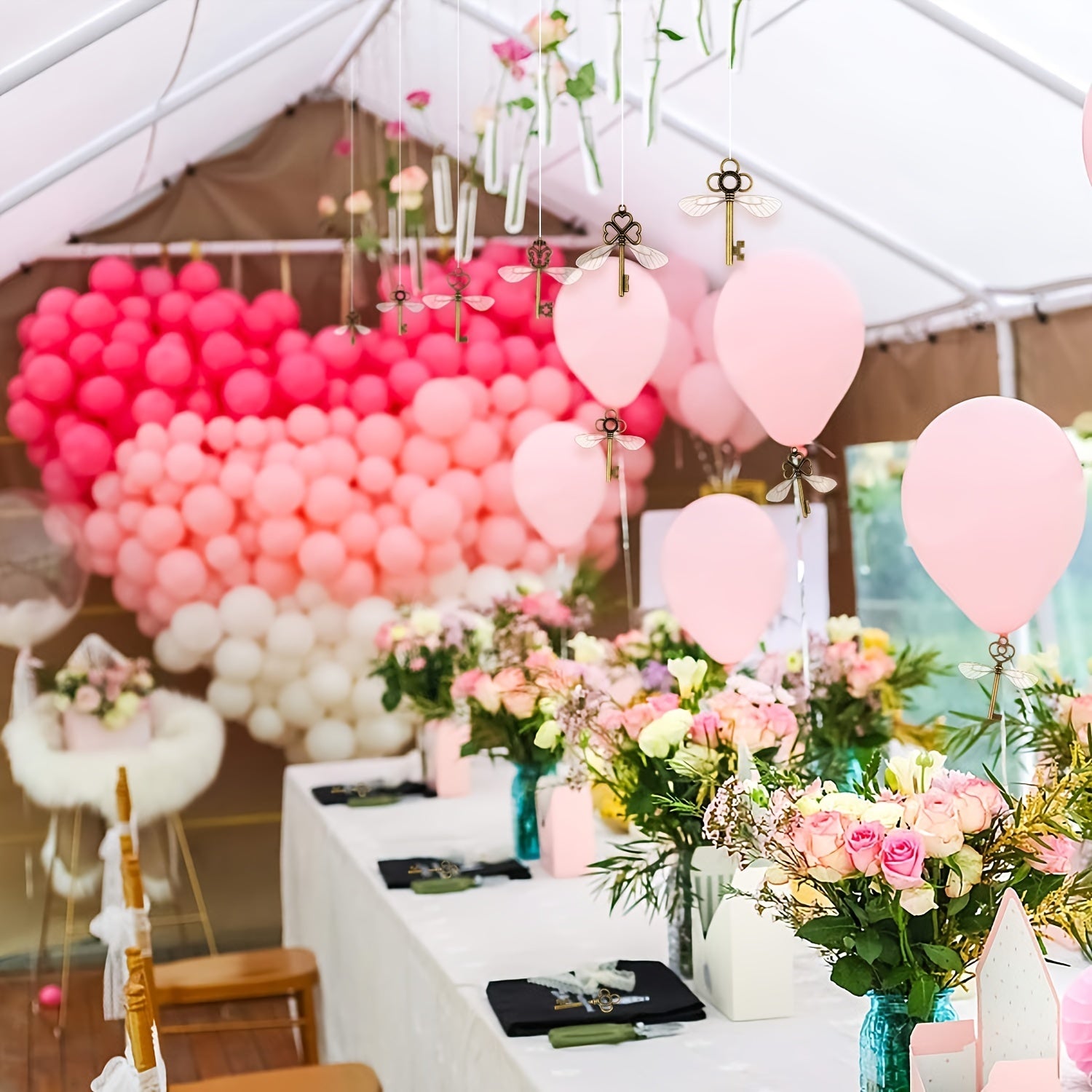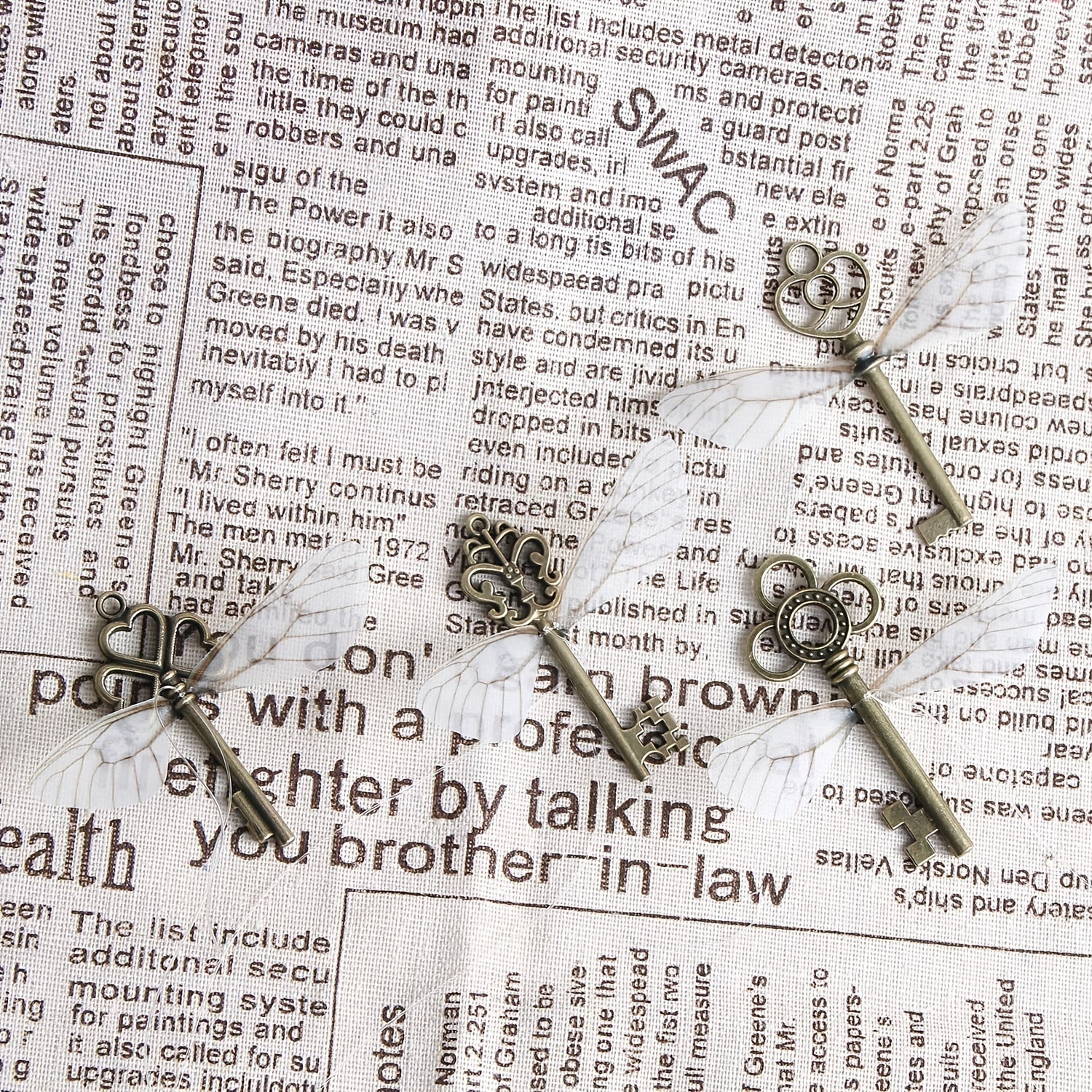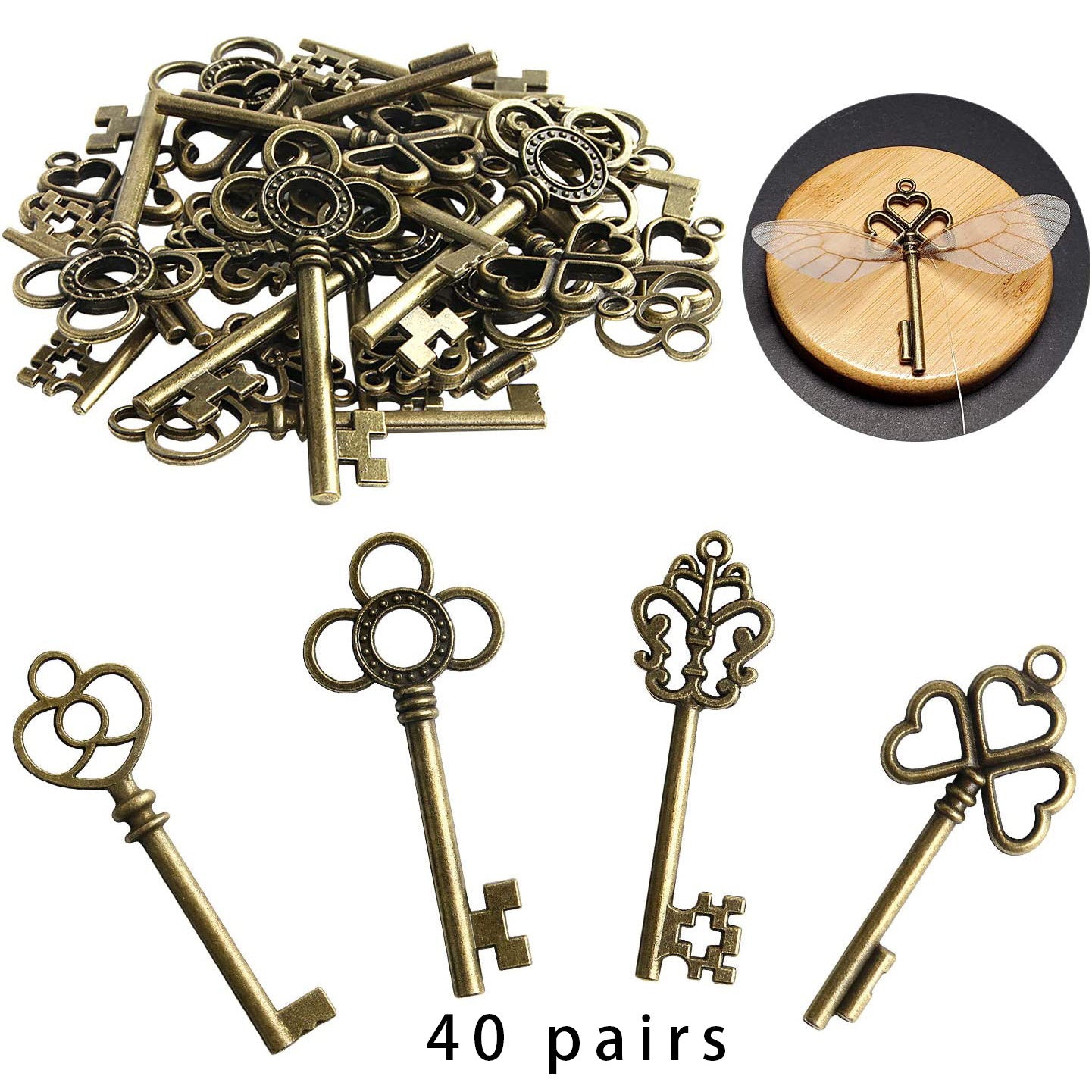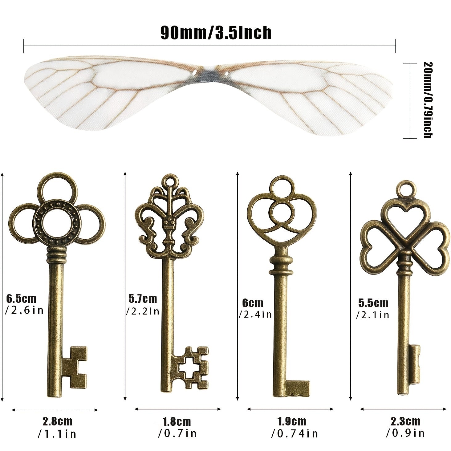 This set includes 40 vintage skeleton key flying key pendants, 40 pairs of dragonfly wings, and 33 yards of material.