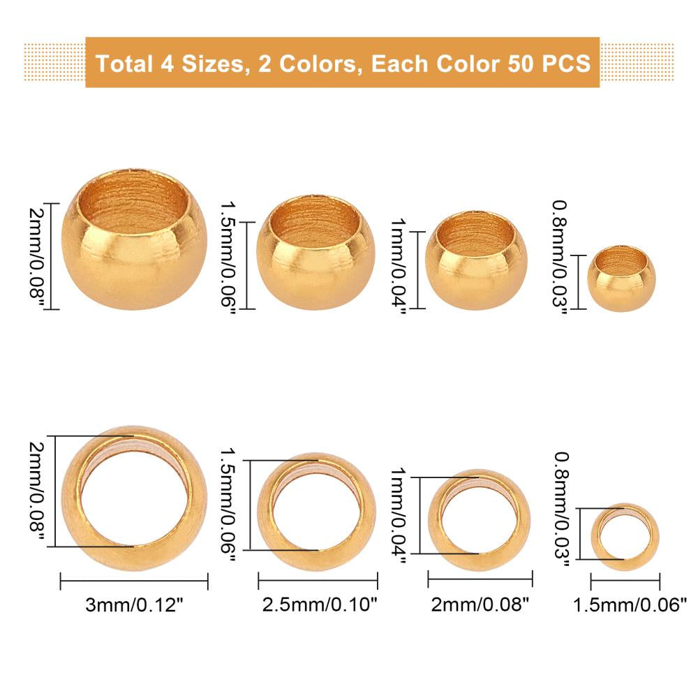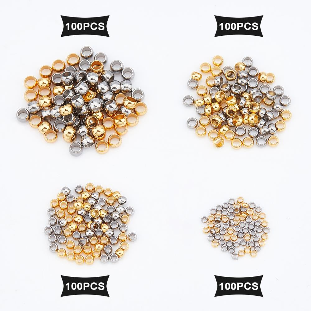Create your own unique jewelry with these 400pcs stainless steel round crimp beads. They come in 1-3mm sizes and 2 colors to suit your style.