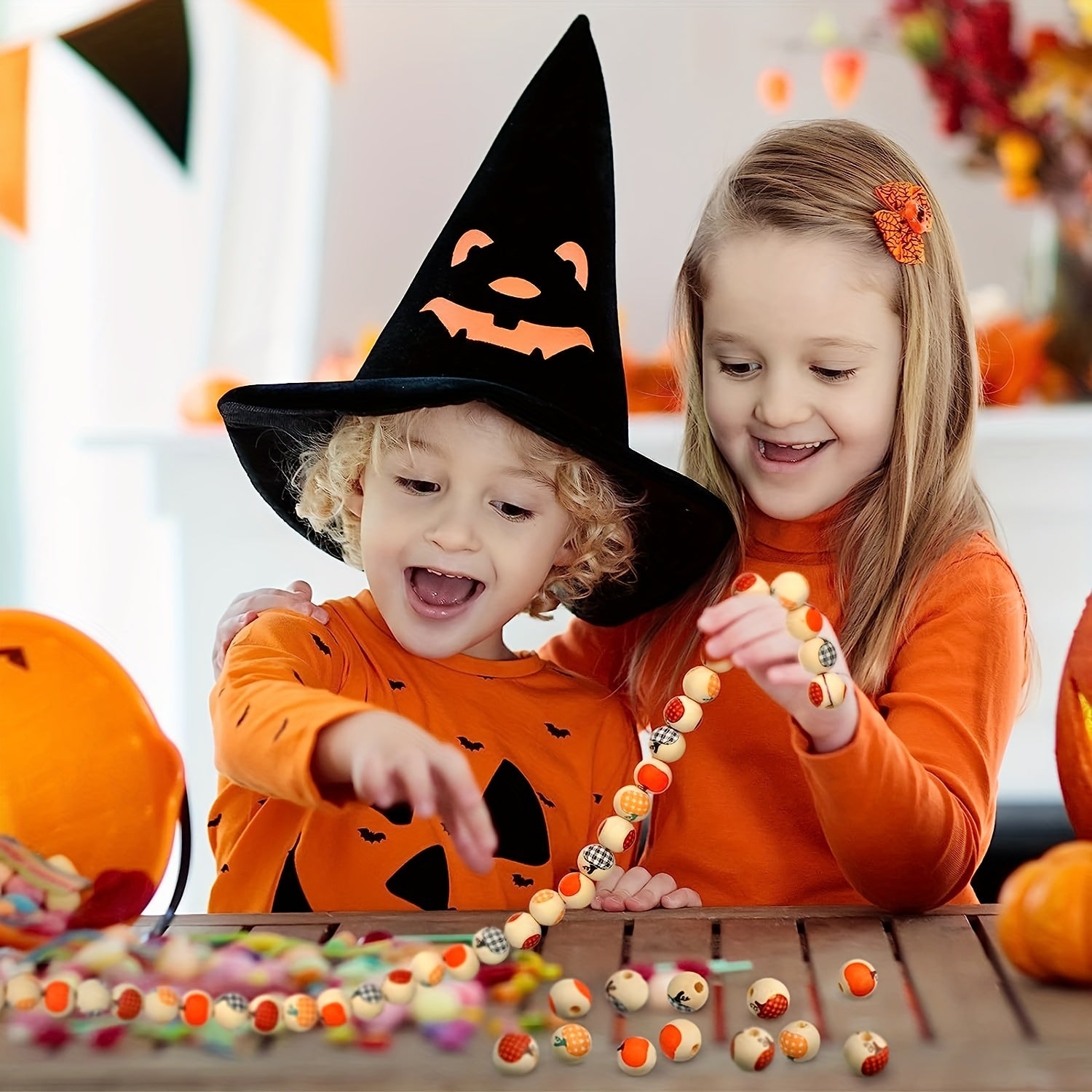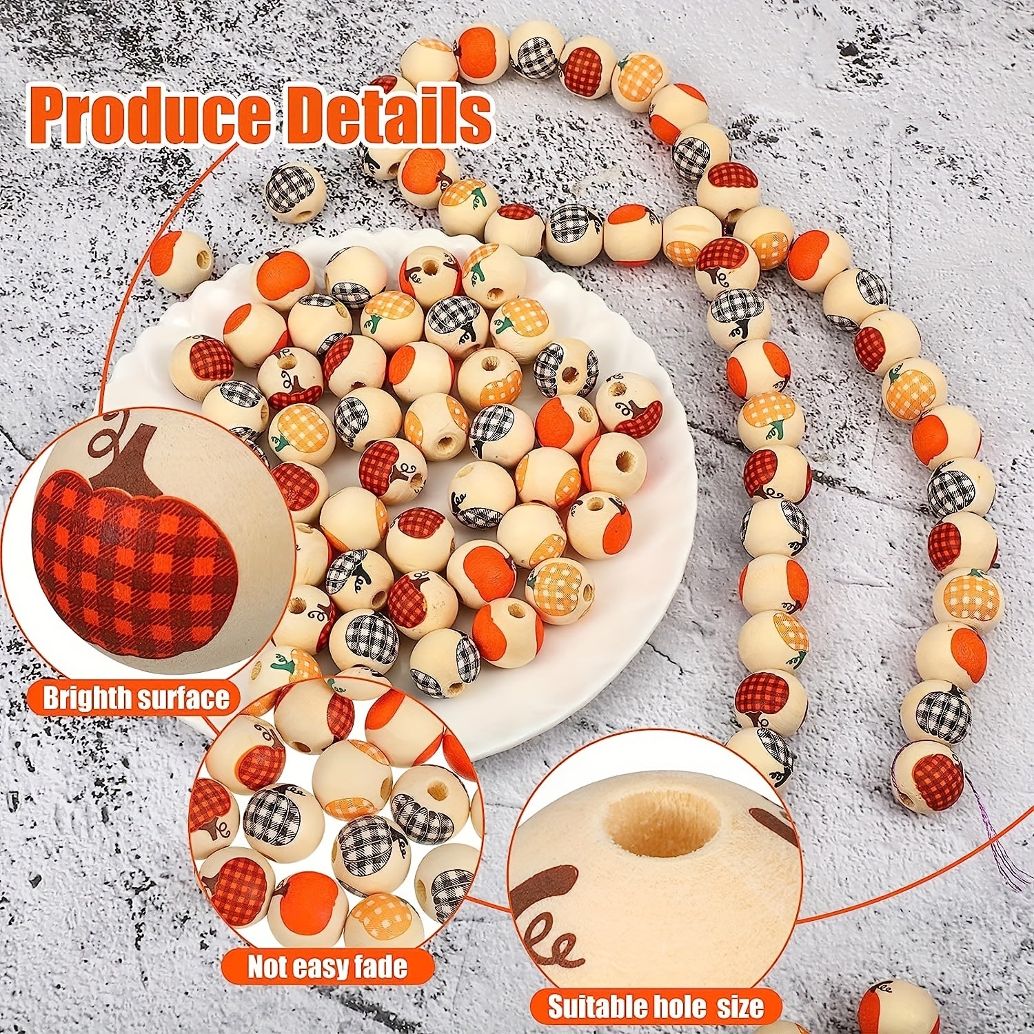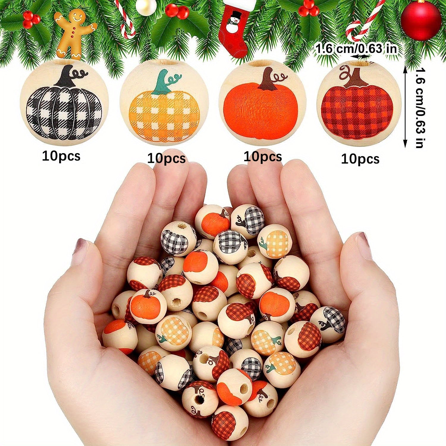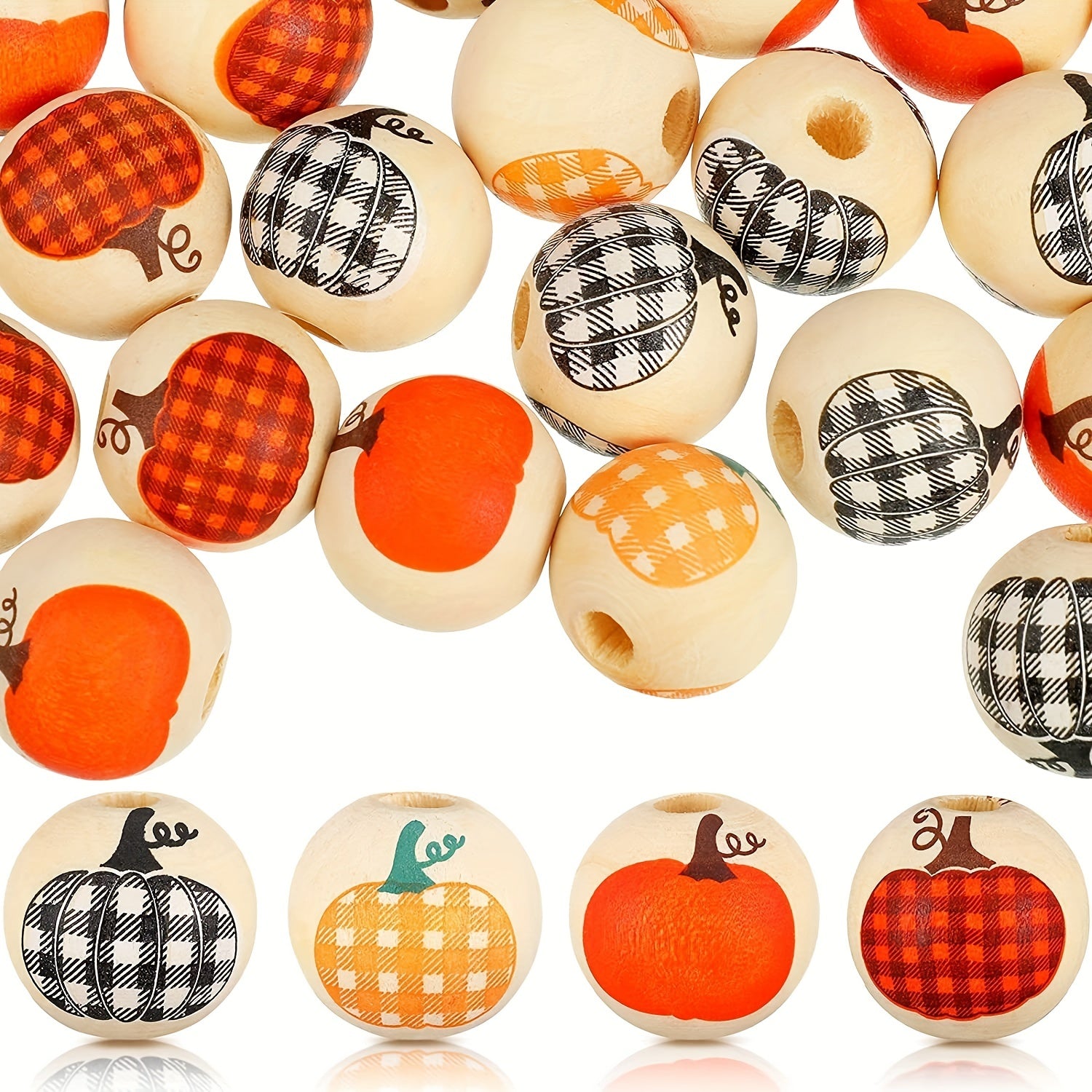 These rustic style wooden beads are perfect for DIY crafts. The colorful pumpkin design adds a unique touch to your projects. Ideal for jewelry making, home decor, and more.