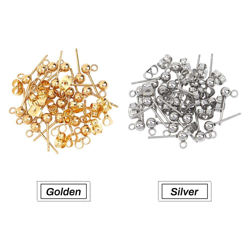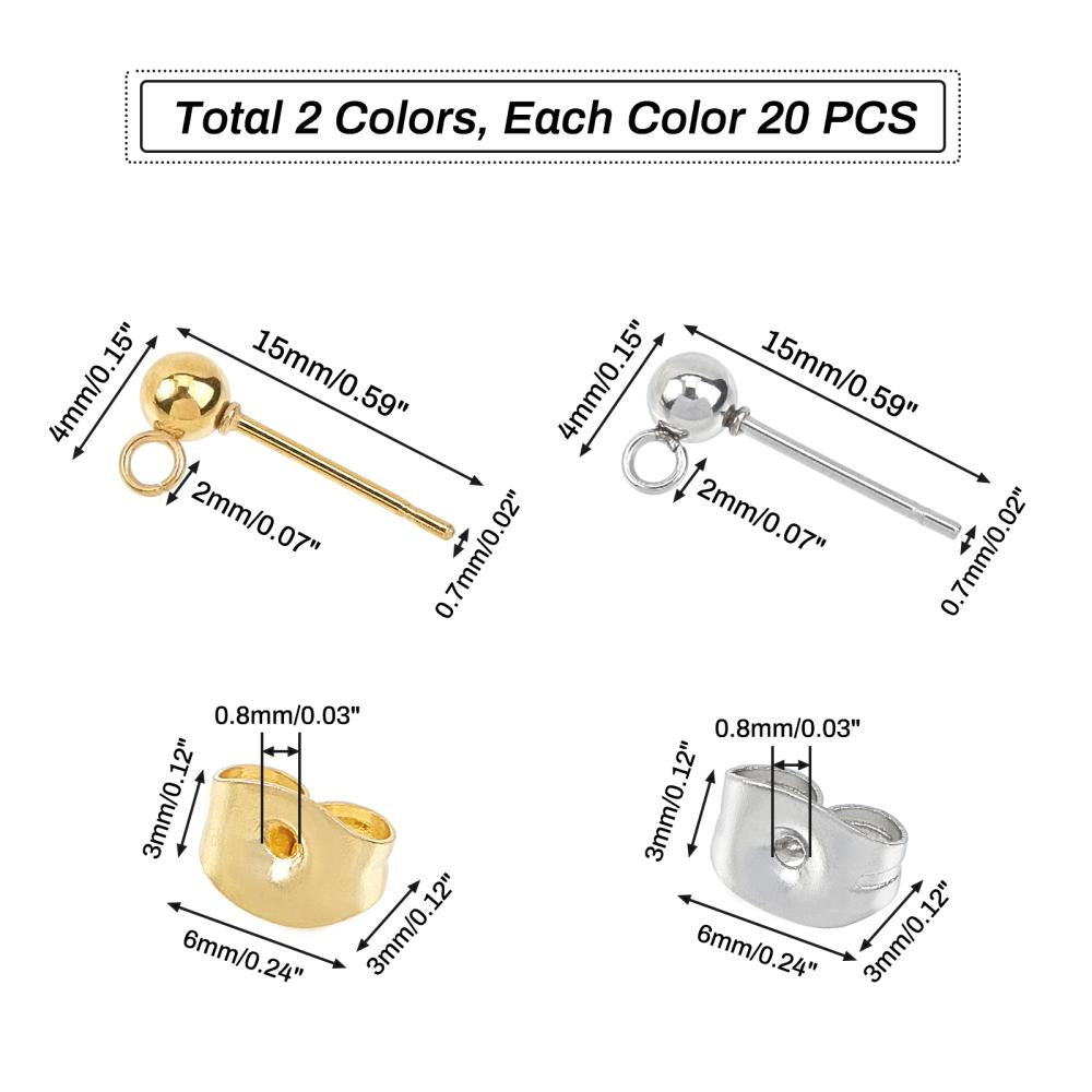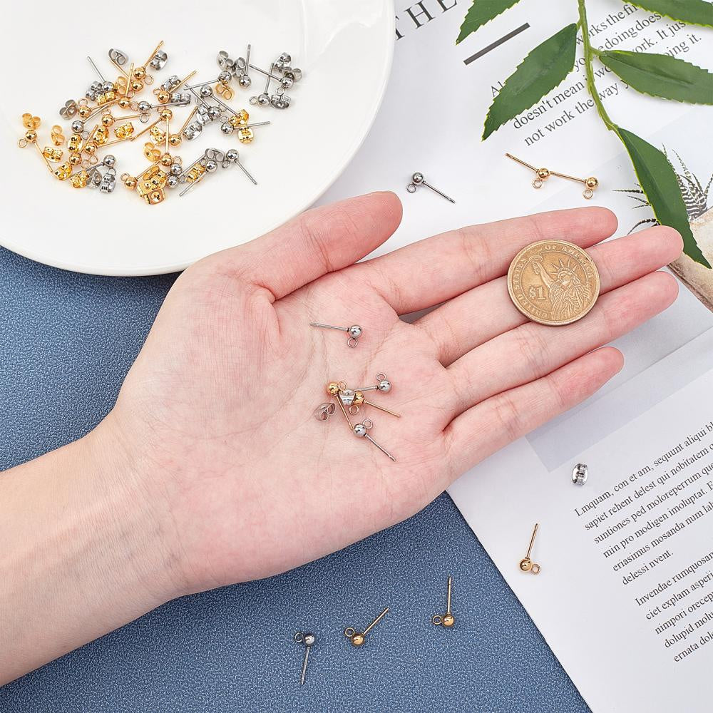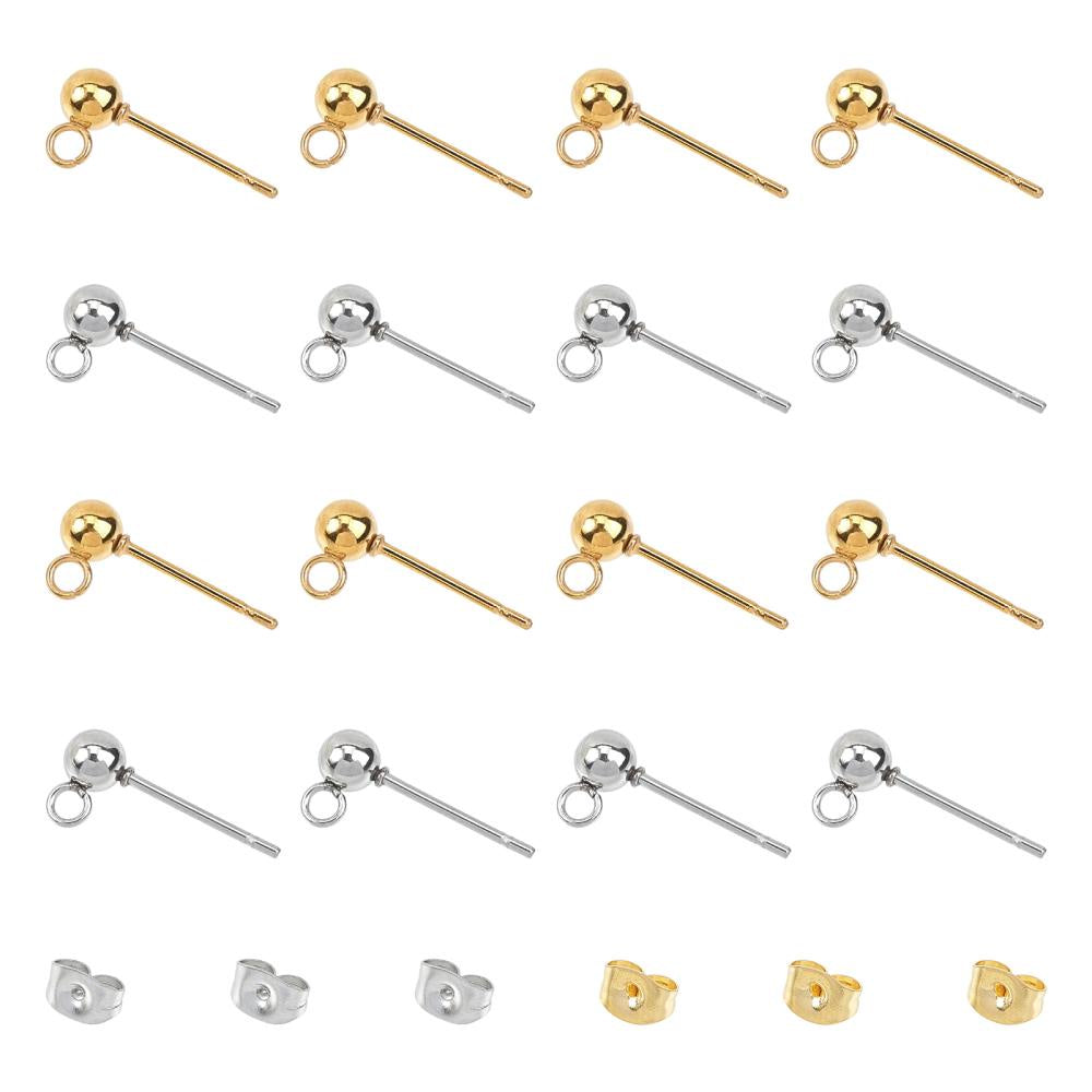 Create your own stylish earrings with this 40-piece set of ball stud earrings. Includes 304 stainless steel pins, ear nuts, and loops for easy customization.