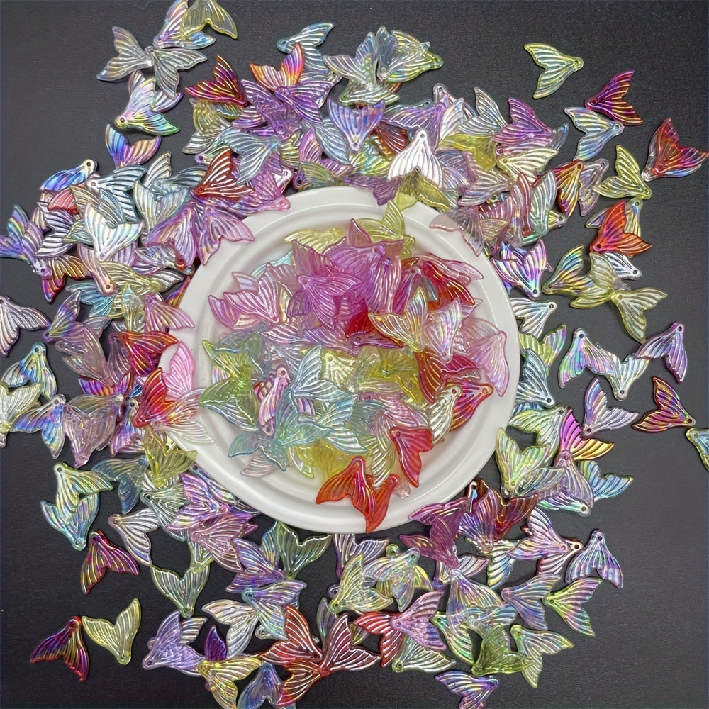 Enhance your jewelry designs with these vibrant acrylic mermaid tail beads. Each bead features a hole for easy threading, making them ideal for crafting unique accessories.
