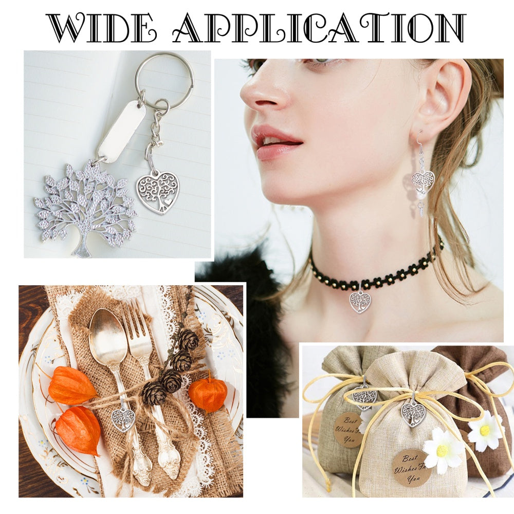 Add a touch of vintage charm to your jewelry creations with these hollow tree pattern heart shape pendants. Perfect for making earrings, bracelets, necklaces, and more.