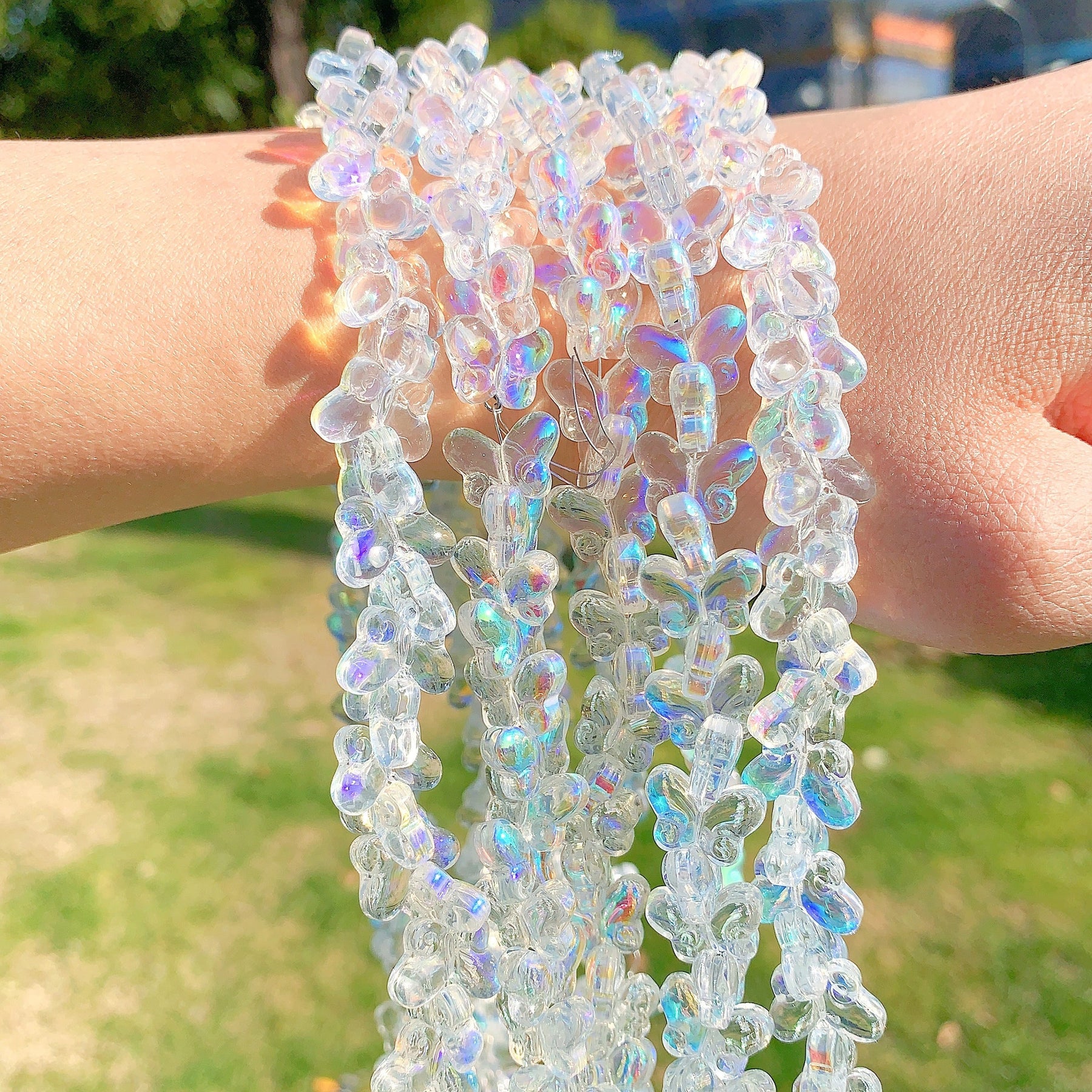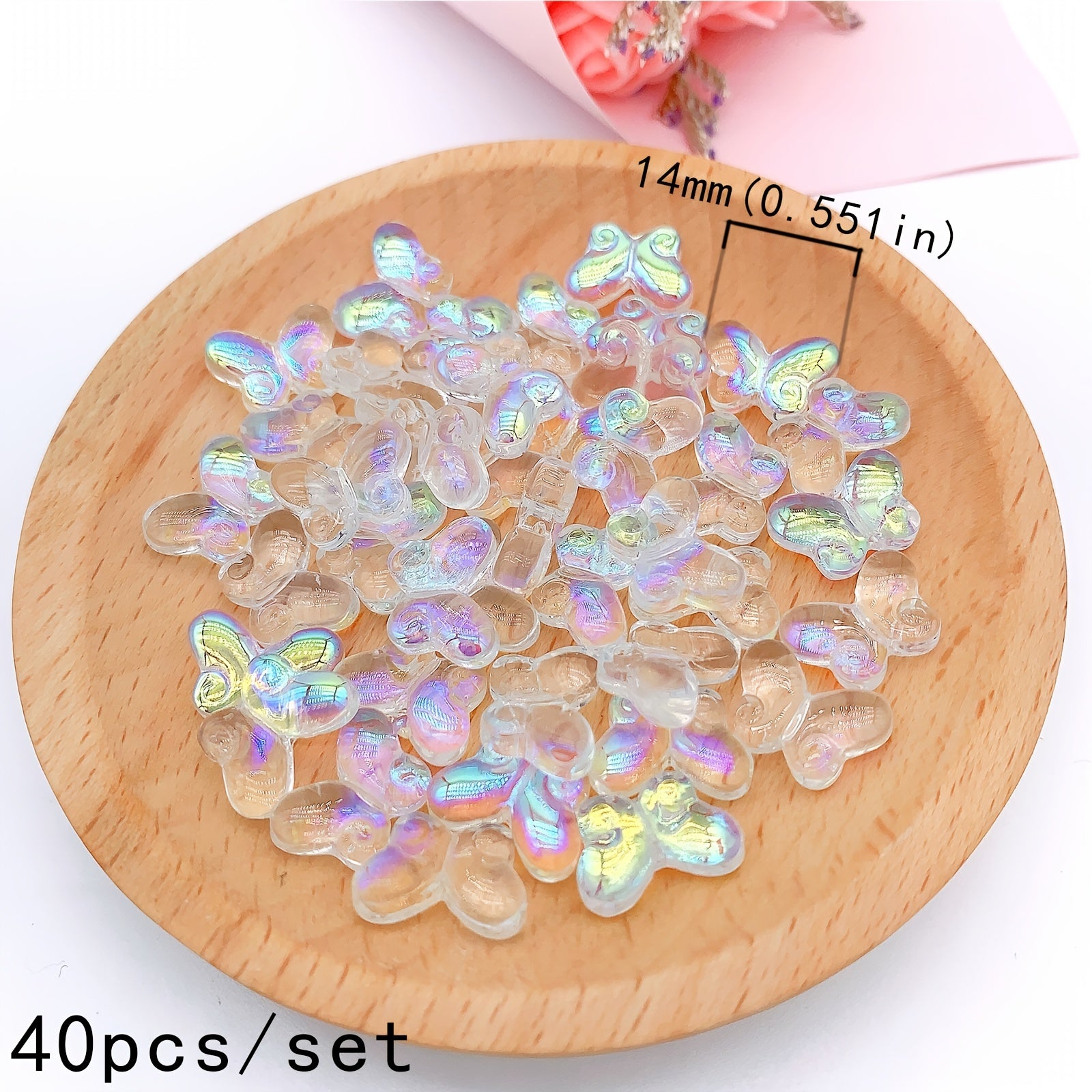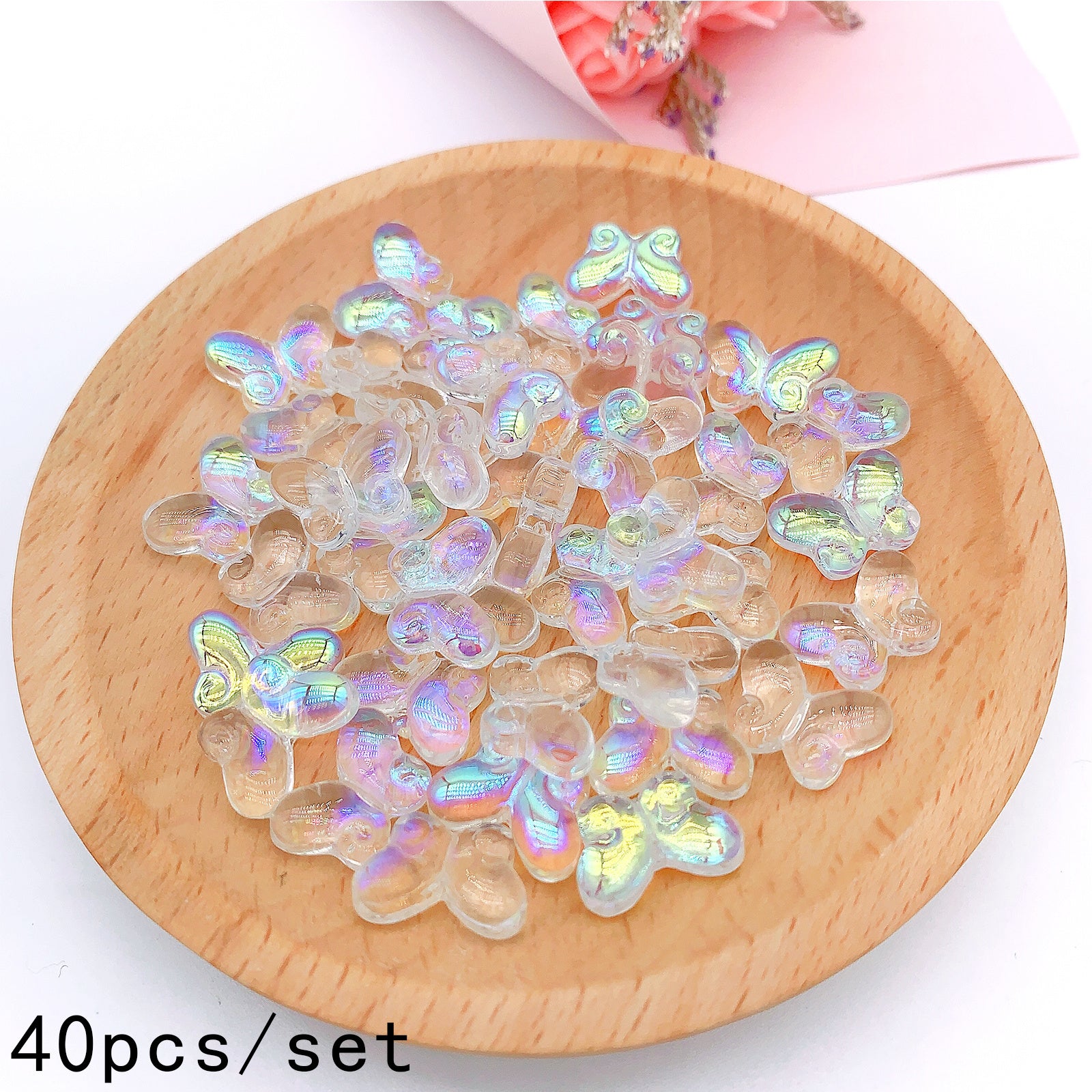 Enhance your jewelry-making projects with this 40pcs set of butterfly crystal beads. The beads are plated with AB coating and are perfect for creating beautiful bracelets and other accessories.