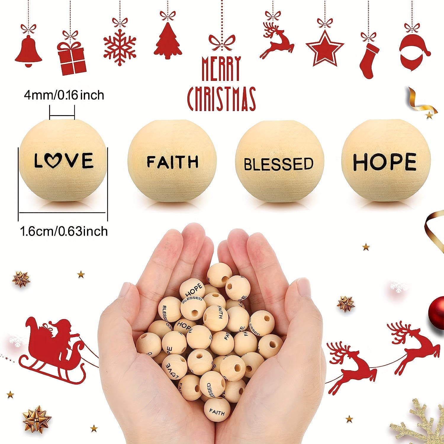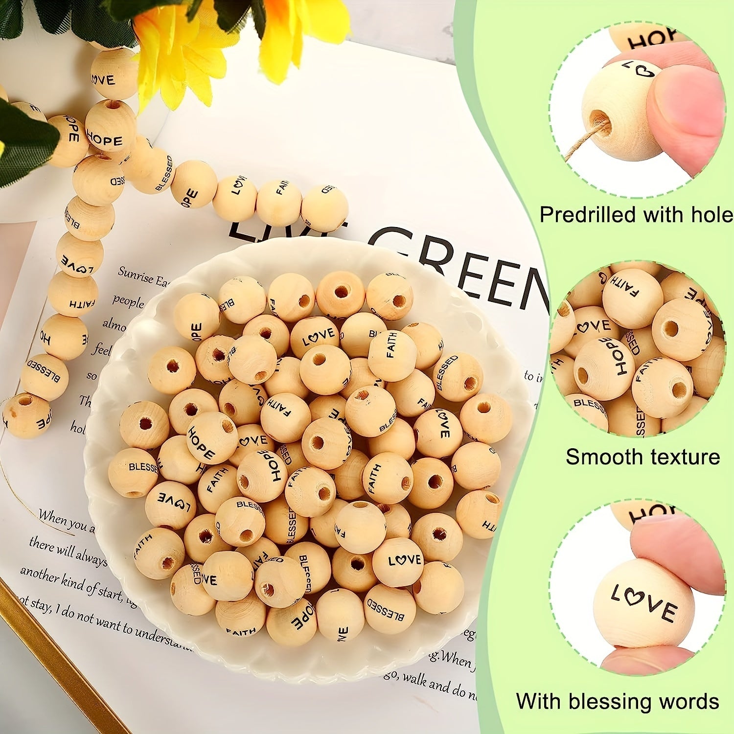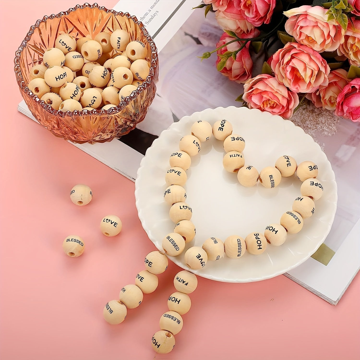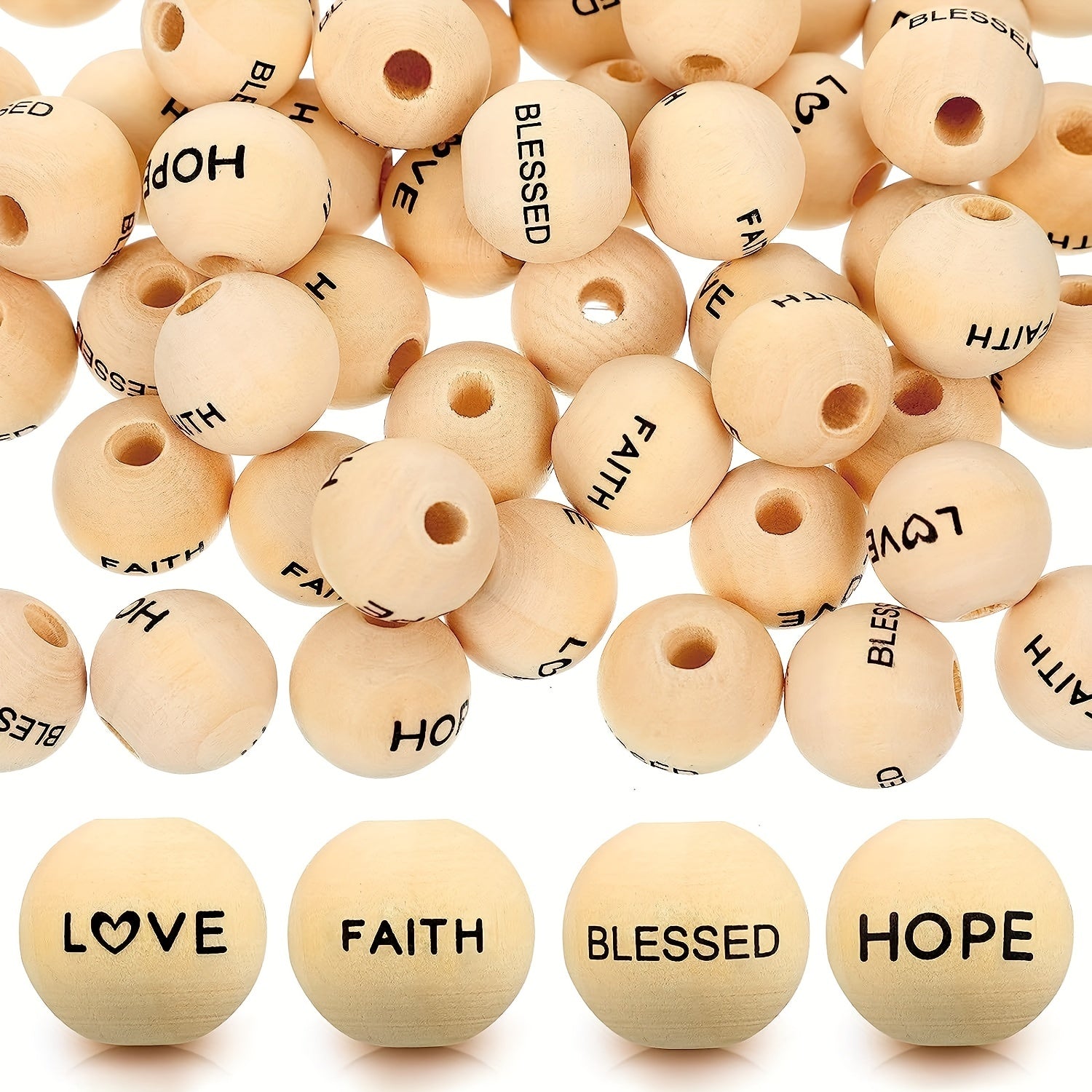 Elevate your DIY projects with these 40 inspirational wooden beads featuring words of hope, faith, love, and blessings. Perfect for garland, home decor, or party decorations.
