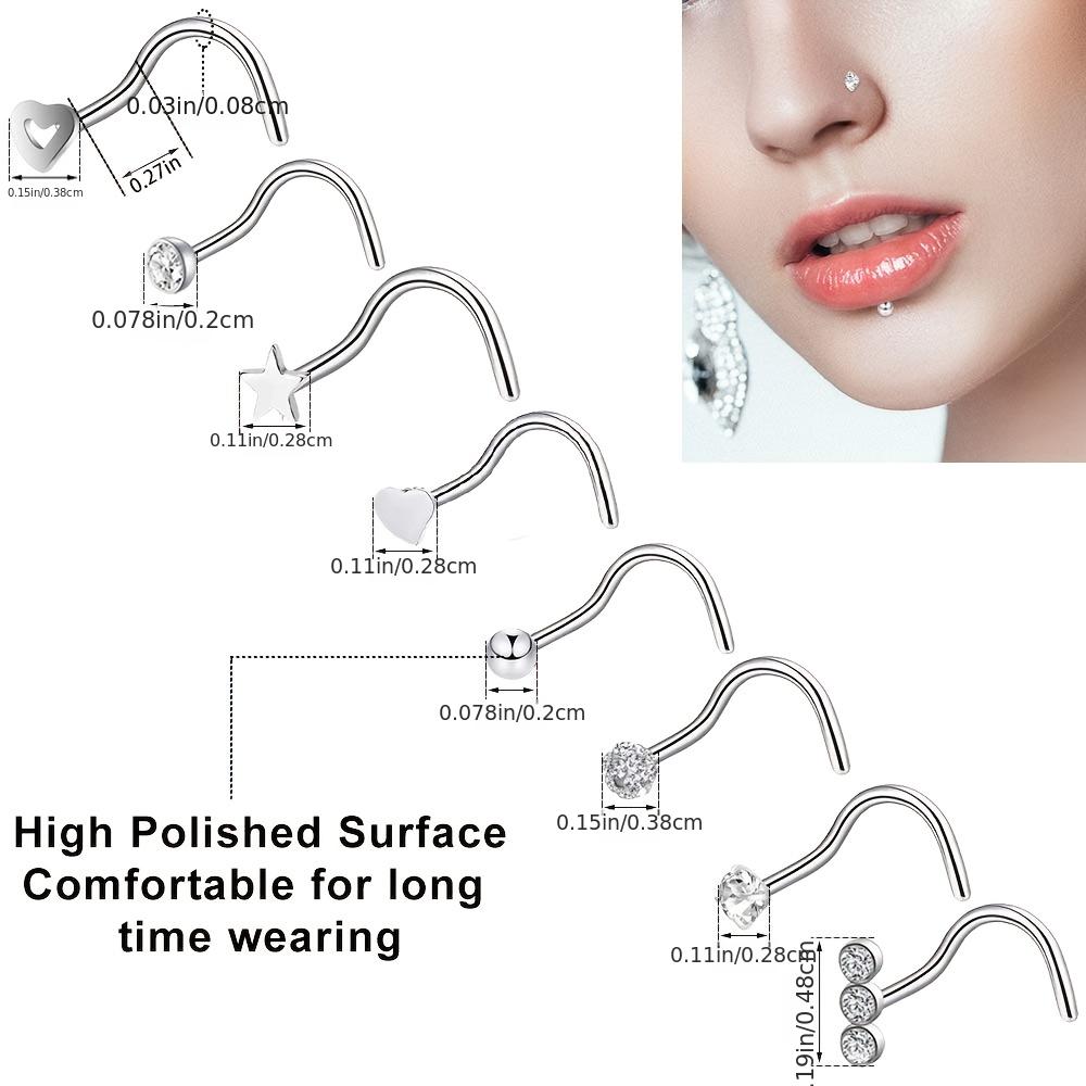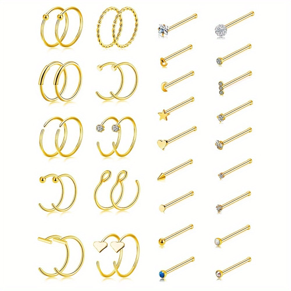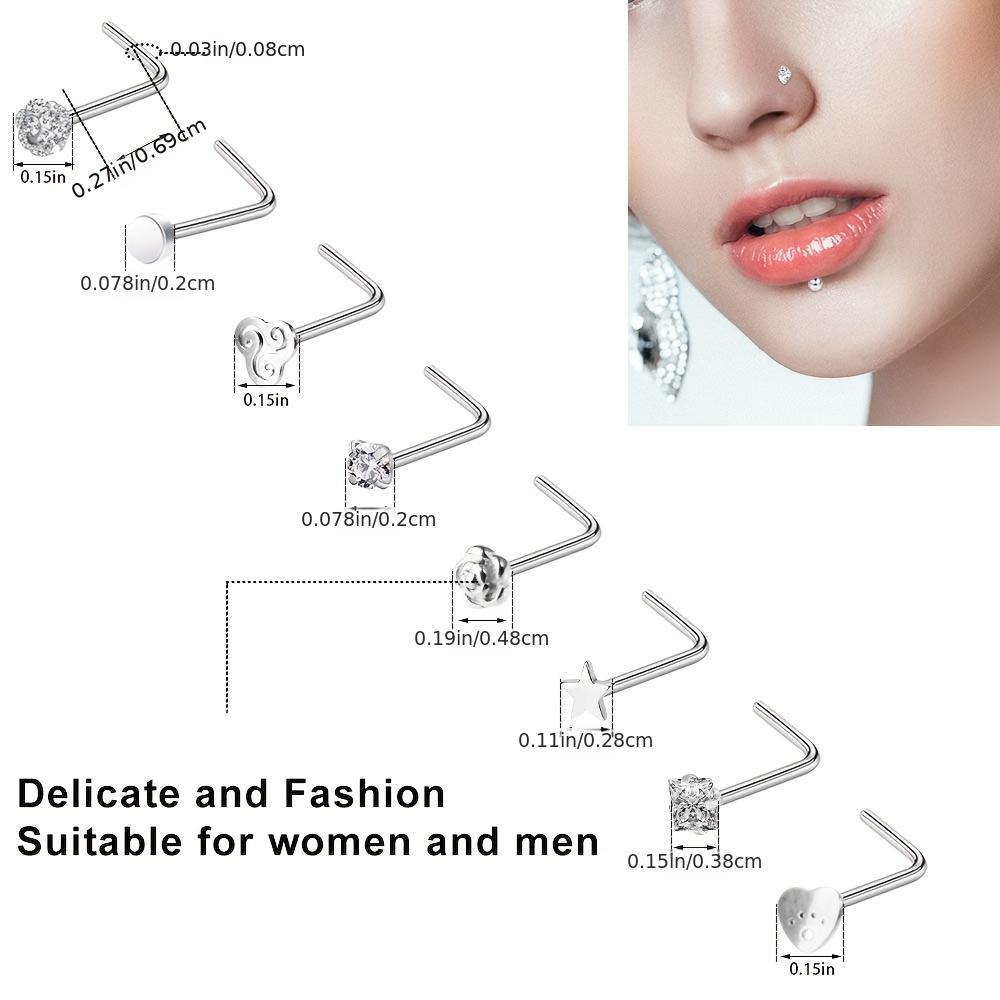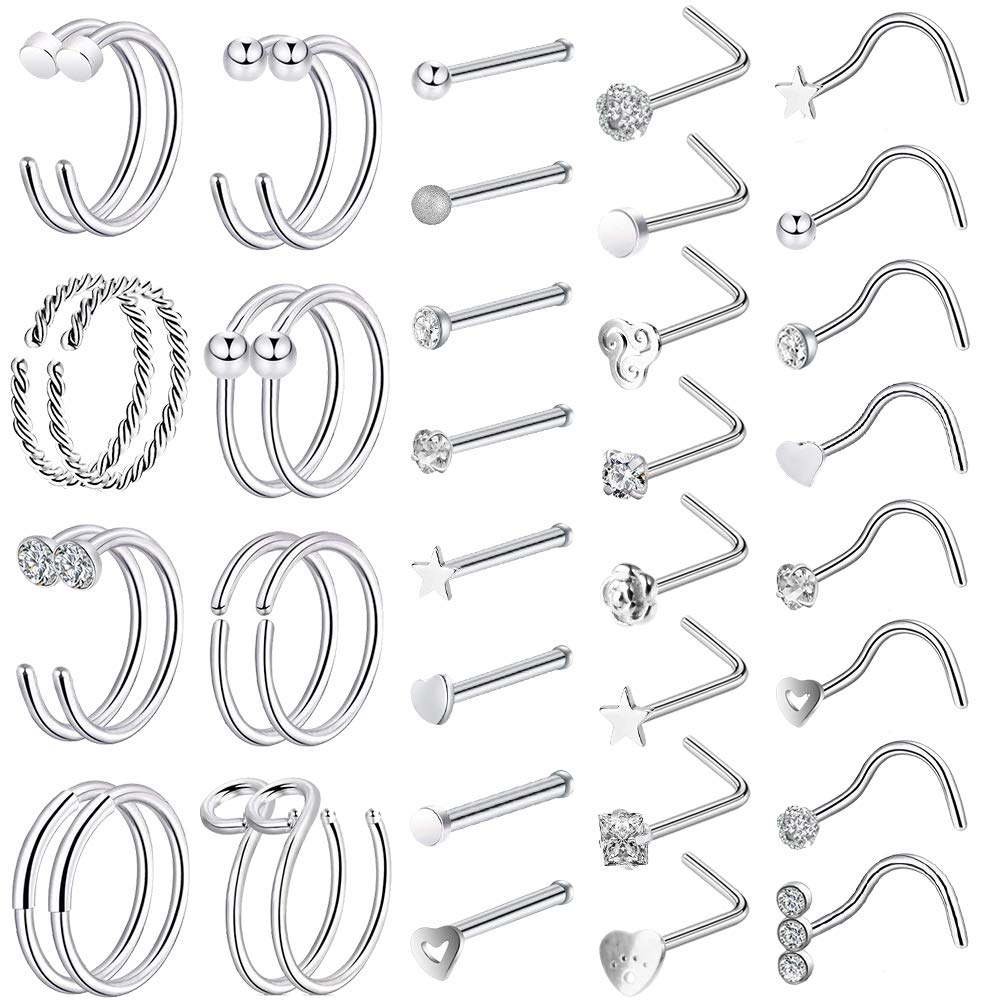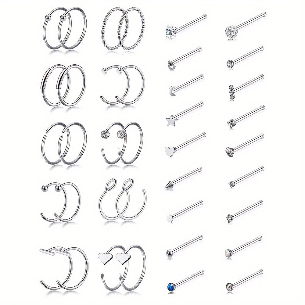 This set includes 40 silver L hoop nose rings made of stainless steel, hypoallergenic and featuring love star design. Perfect for nose piercings.