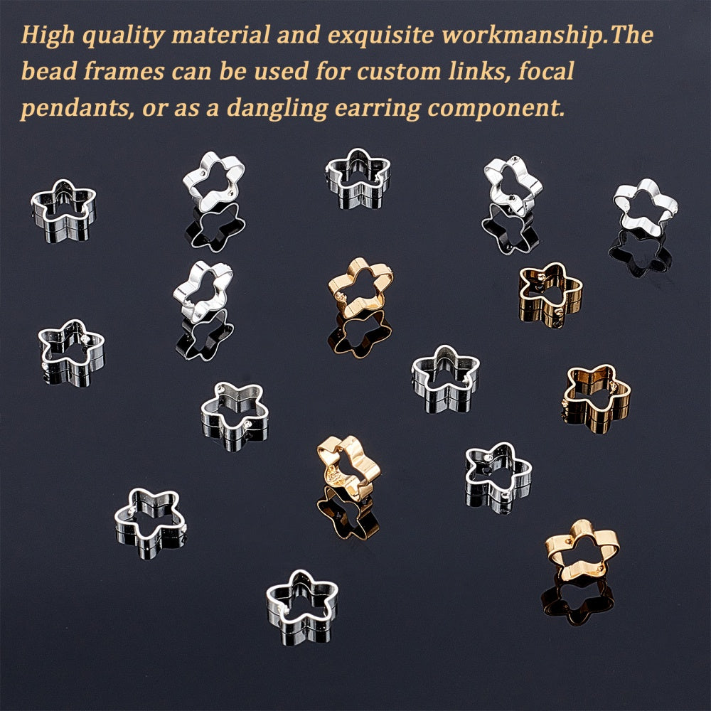Enhance your DIY jewelry projects with these star bead frames. The double hole frames are ideal for 6mm beads, creating unique necklaces and bracelets.