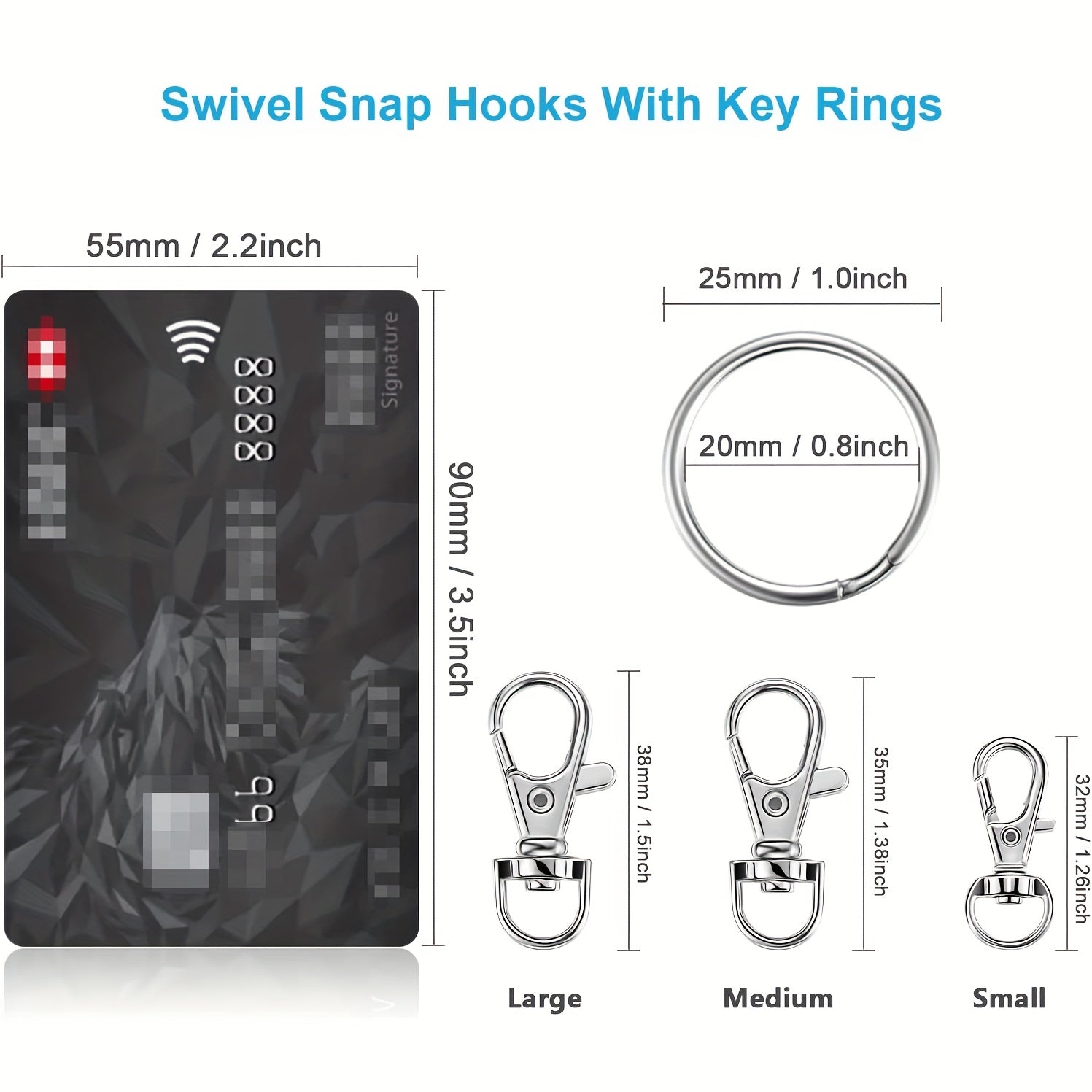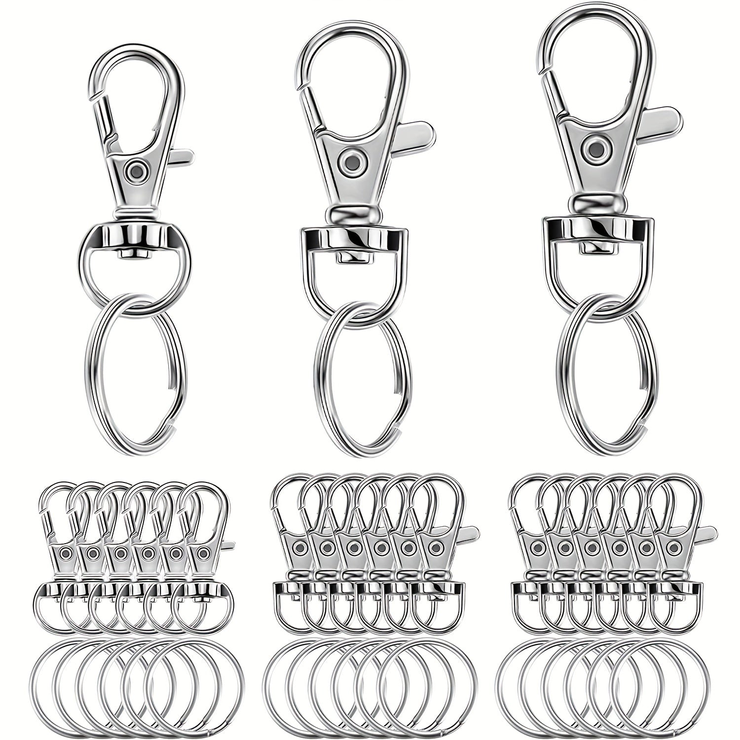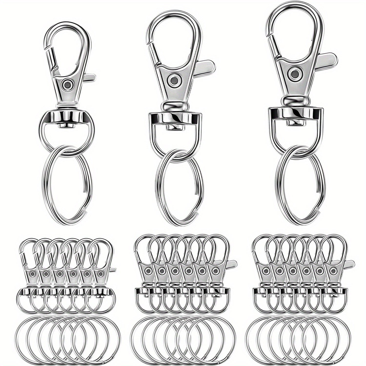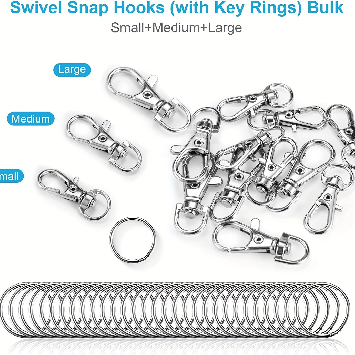 Easily create your own keychains with this set of 40 zinc alloy keychain hardware accessories. The set includes rotating buckles, hanging ropes, and lobster buckles in three sizes.