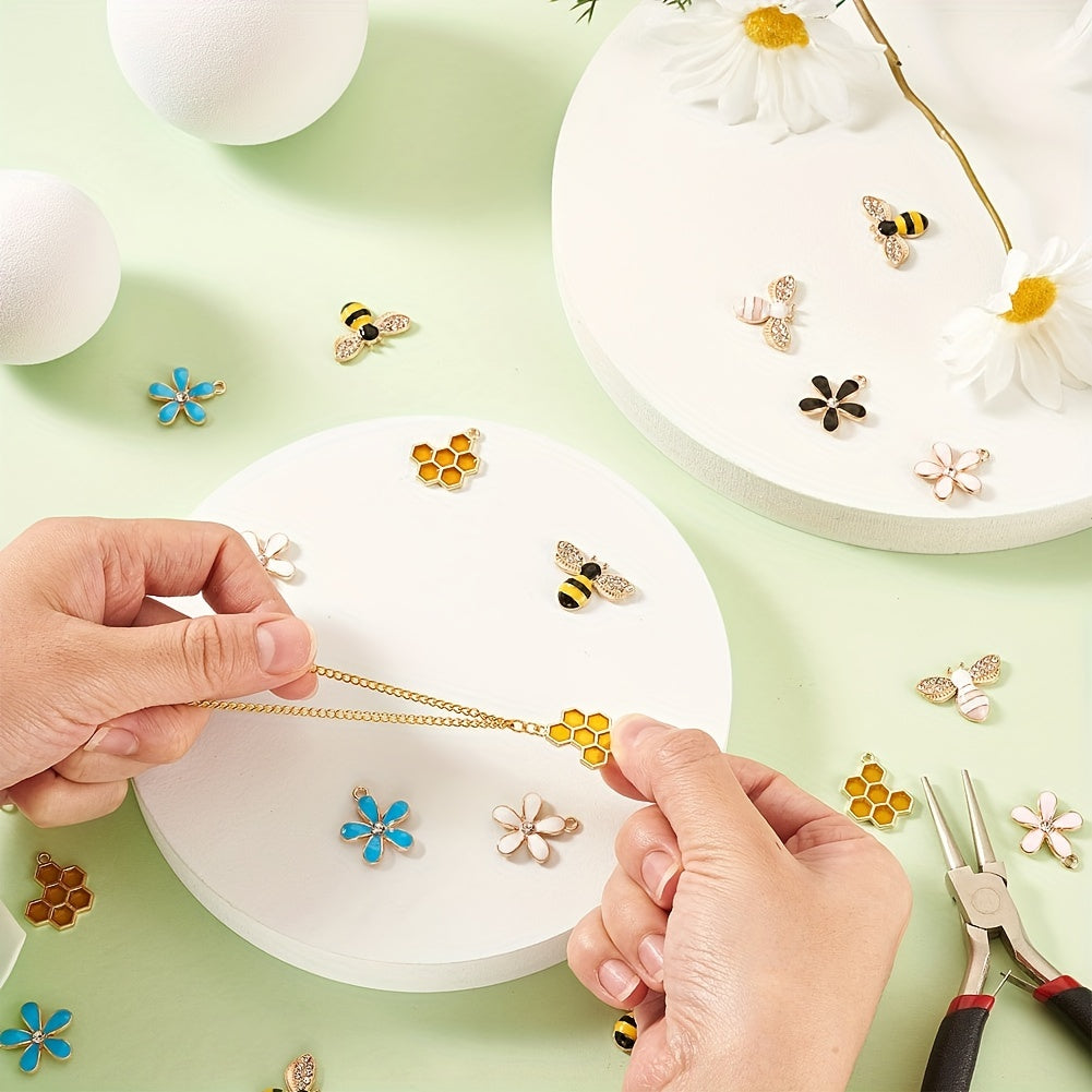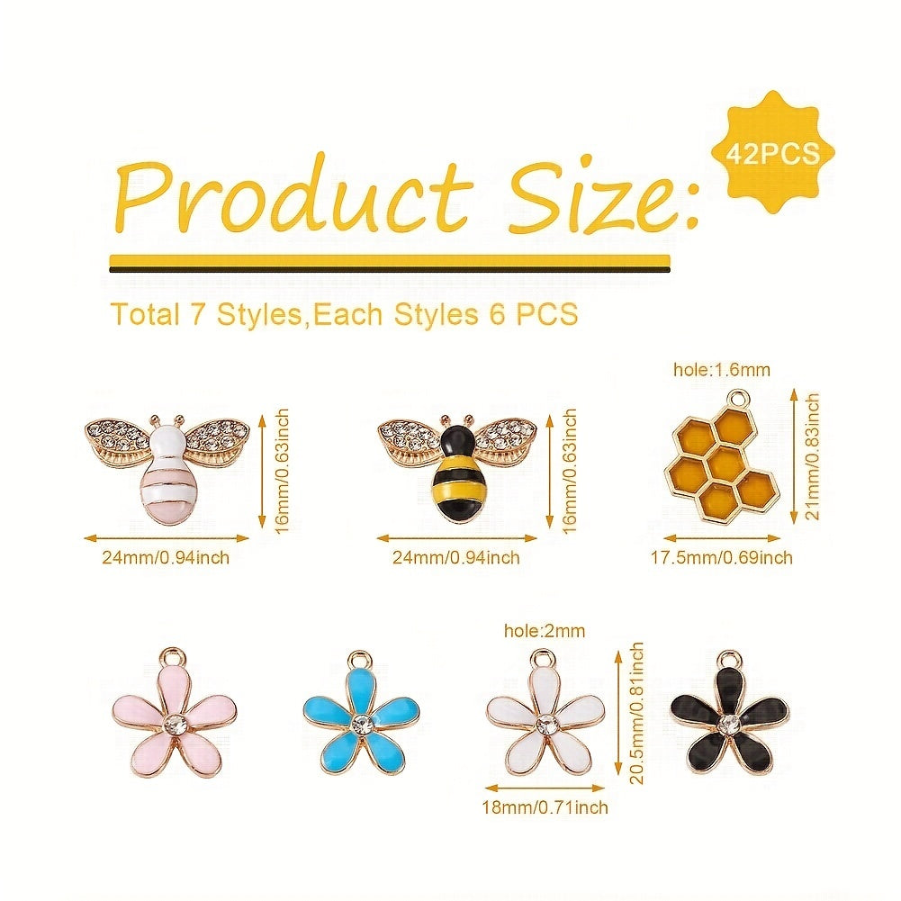 Get a variety of 7 styles of bee, honeycomb, and flower patterns in this set of 42 alloy enamel pendants and cabochons. Perfect for jewelry making and crafting projects.