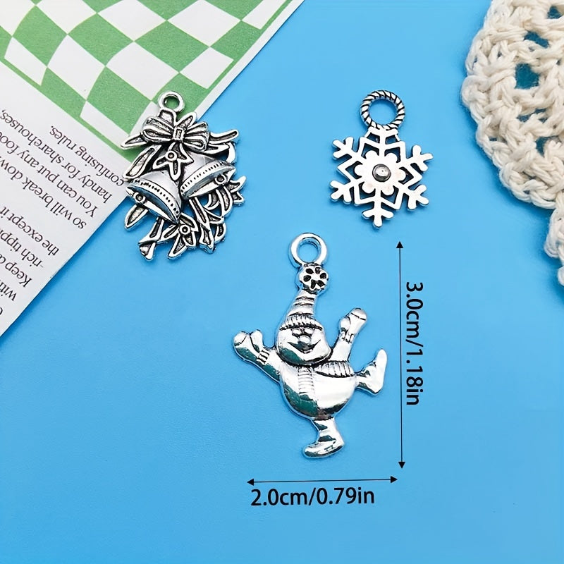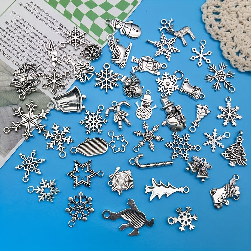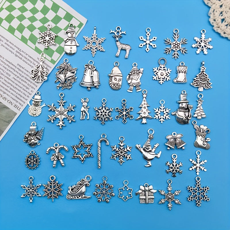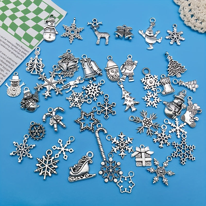 Get into the festive spirit with this set of 43 antique silver Christmas charms perfect for DIY jewelry making. Includes Santa Claus, snowman, snowflake, bell, and reindeer patterns for your holiday creations.