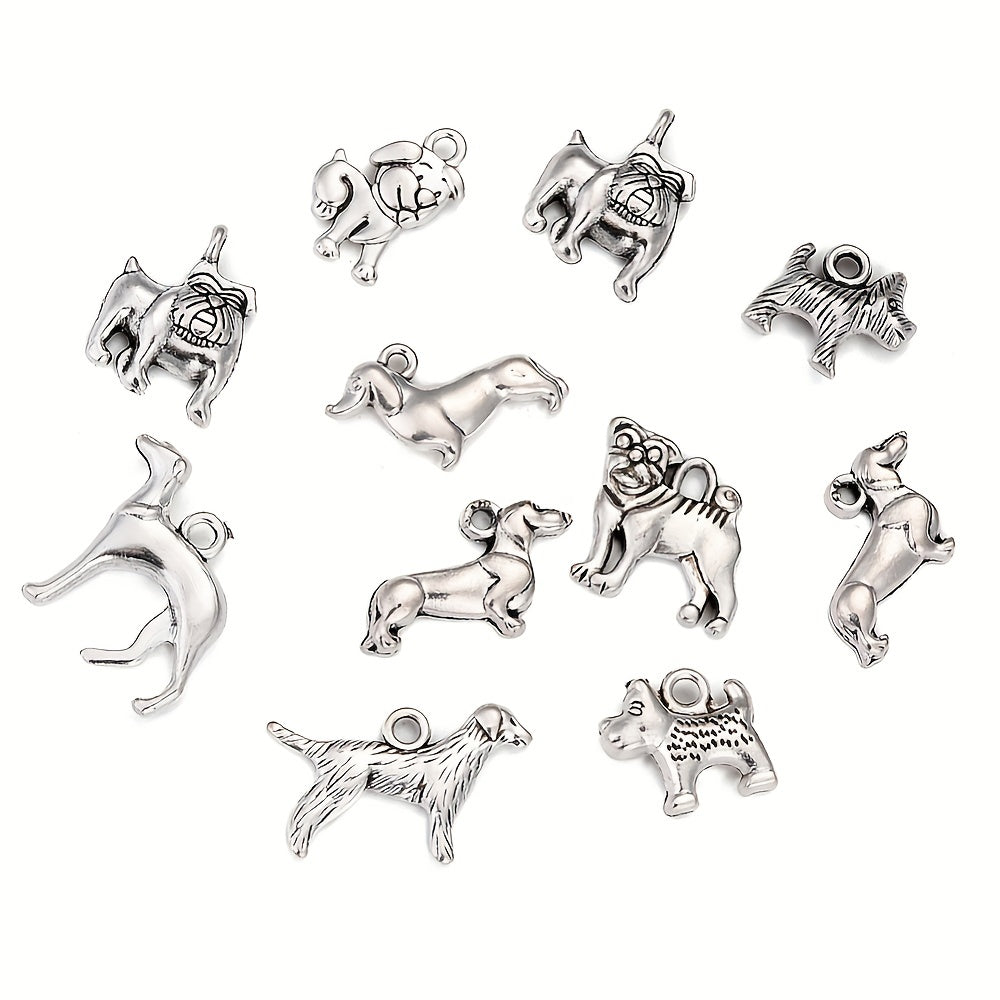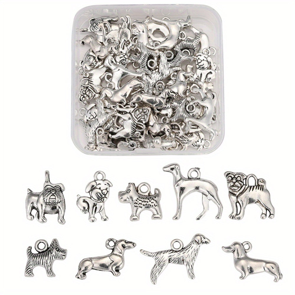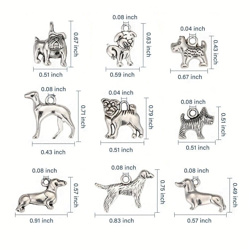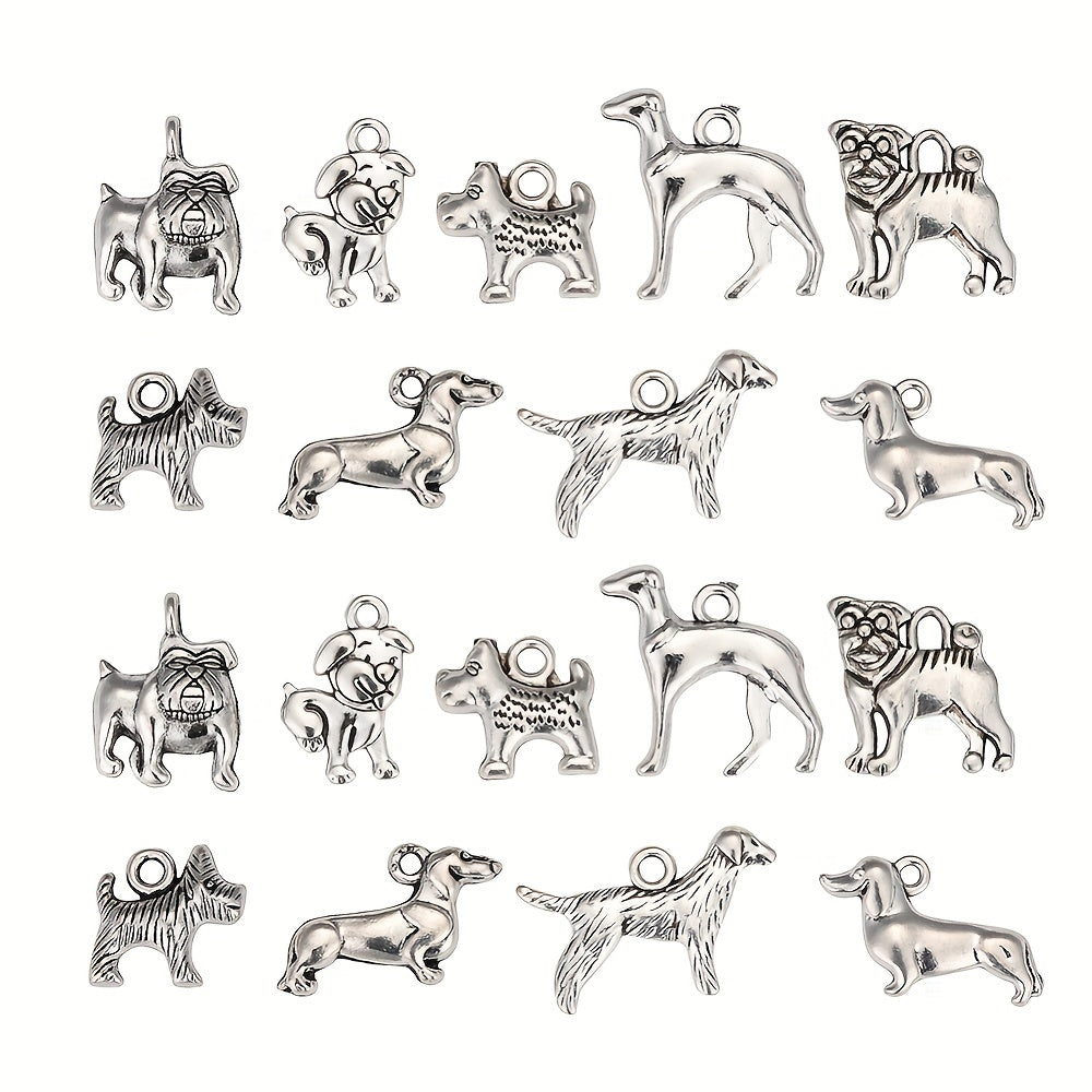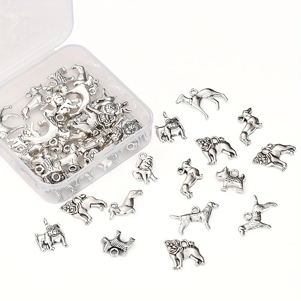 Get 45pcs of assorted dog charms pendants in antique silver alloy. Perfect for creating your own bracelets, necklaces, and other jewelry pieces.