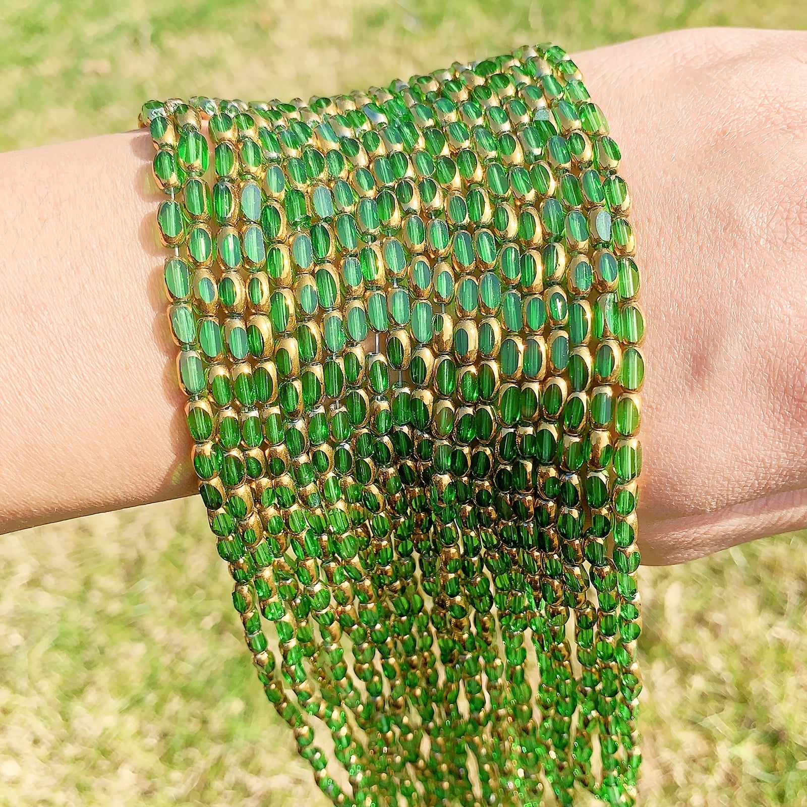 Enhance your jewelry making with this set of 45 green transparent crystal spacer beads. Perfect for creating unique bracelets and accessories.