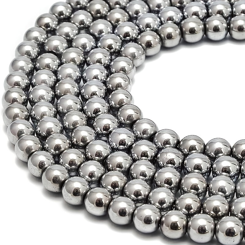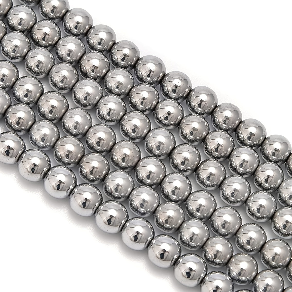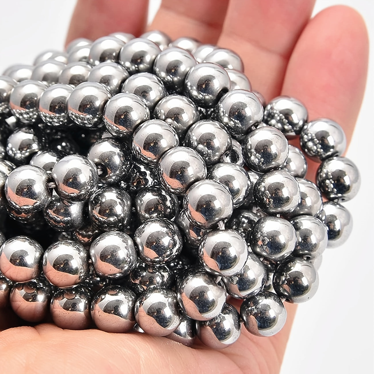 Get creative with this bulk pack of 45 silver grey plated hematite round beads for making stylish bracelets and necklaces. Perfect for DIY jewelry projects.