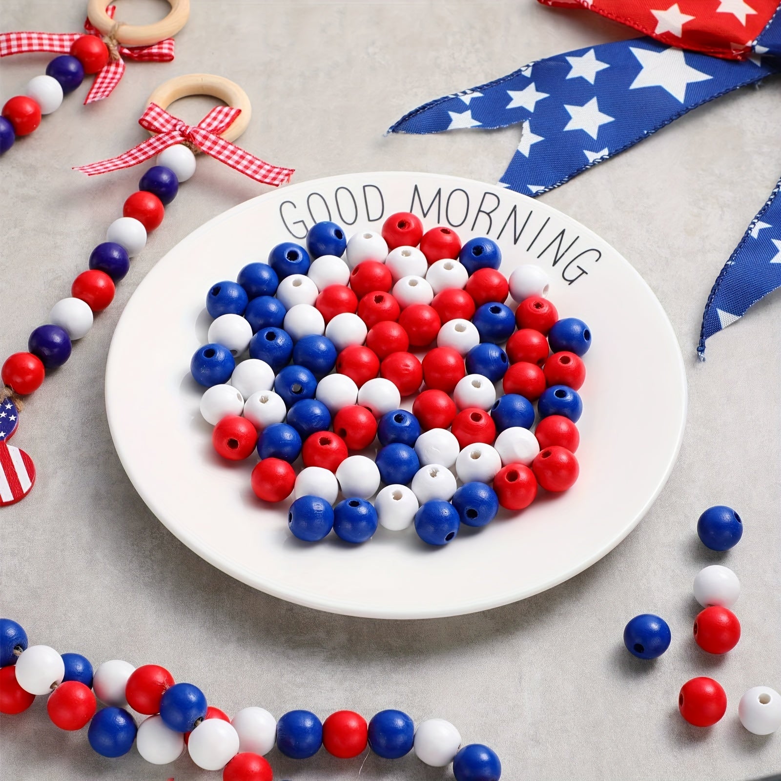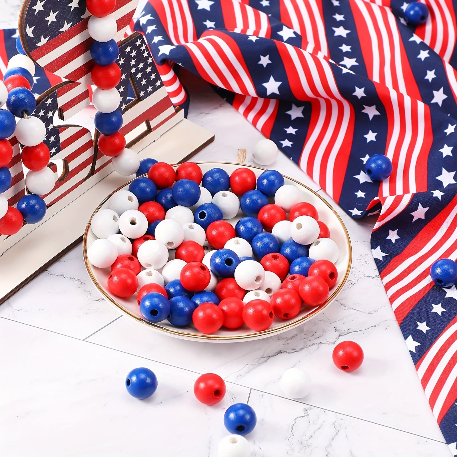 Celebrate Independence Day with these 45 mixed perforated wooden beads that are perfect for making your own Fourth of July decorations.