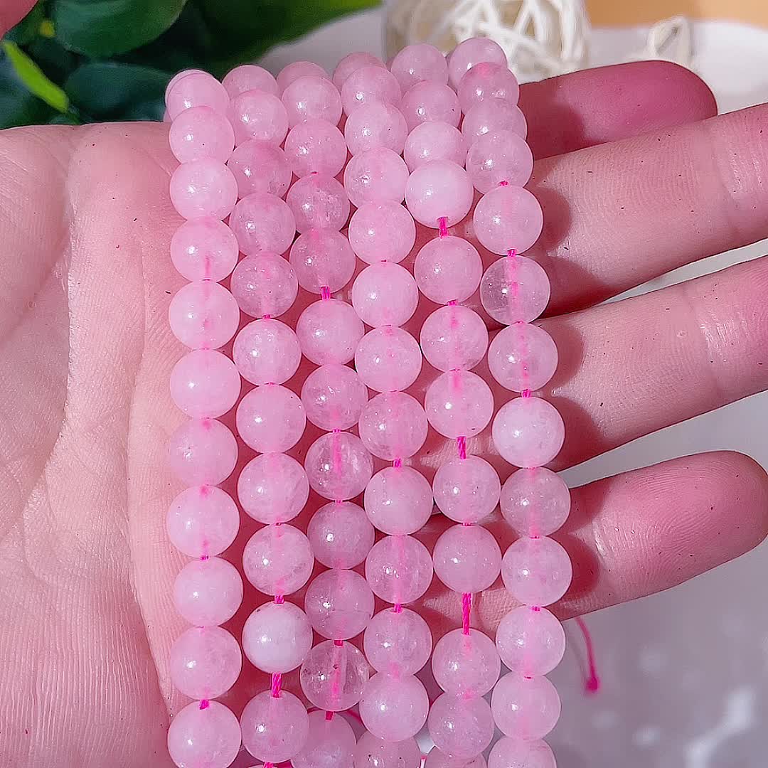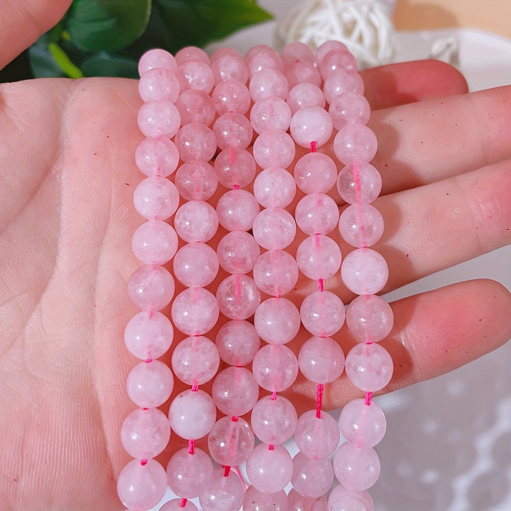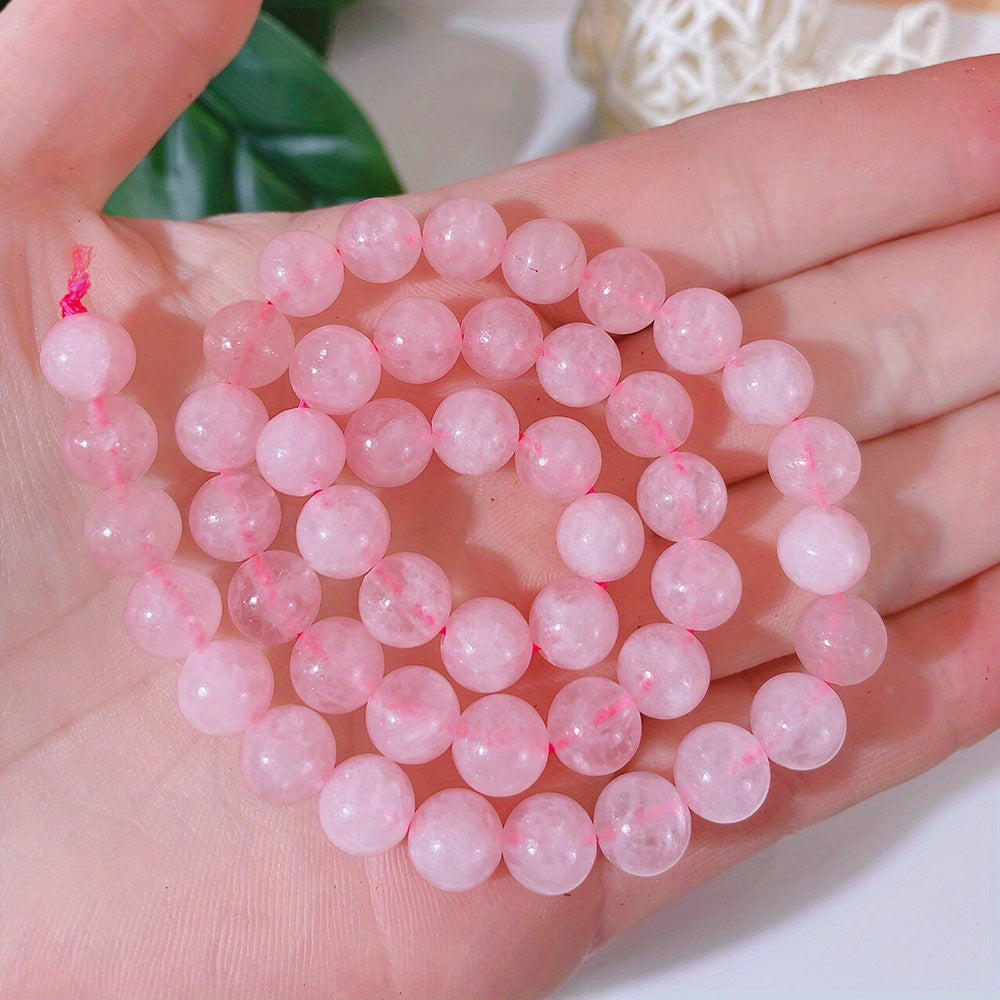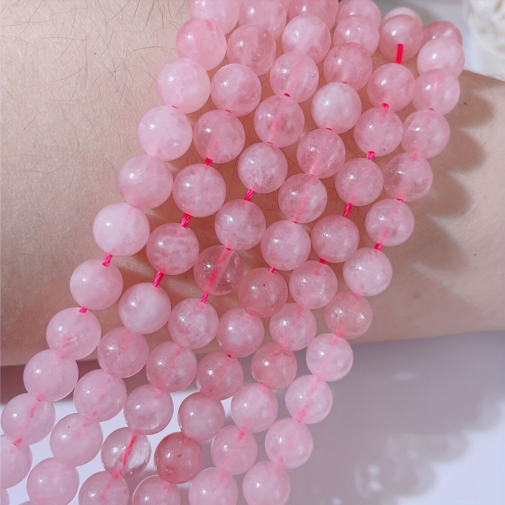 These natural stone strawberry powder crystal beads are perfect for making your own bracelets, necklaces, and earrings. Each pack contains 47 beads.