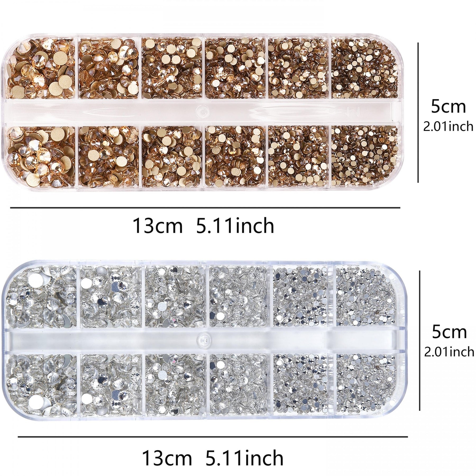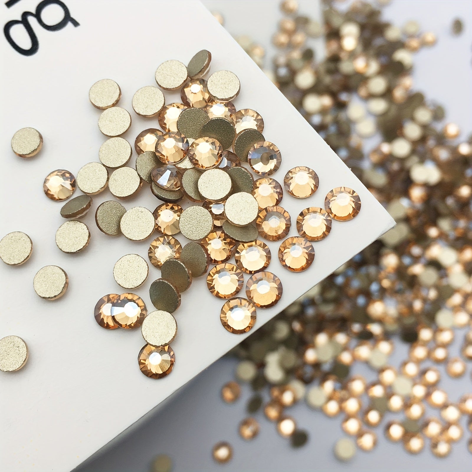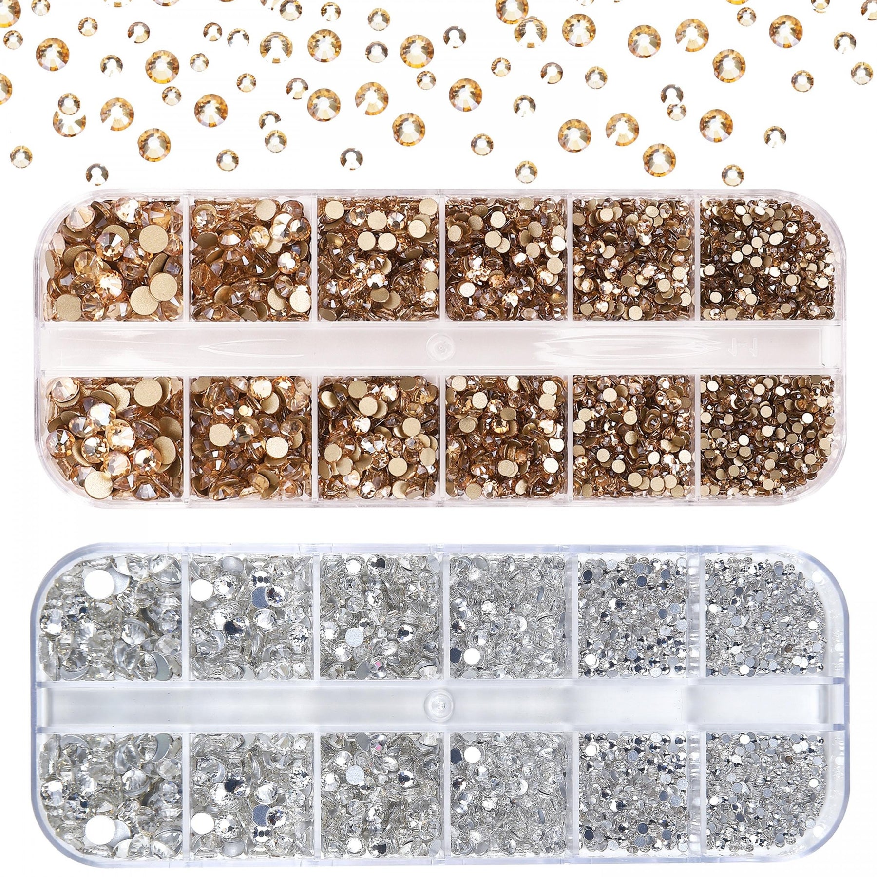 Enhance your nail art, crafts, eye makeup, and jewelry with these 4800pcs transparent champagne flatback rhinestones. Comes with a storage box and 6 sizes for versatile use.