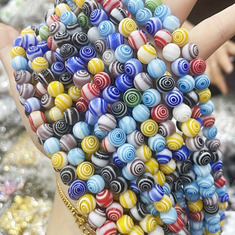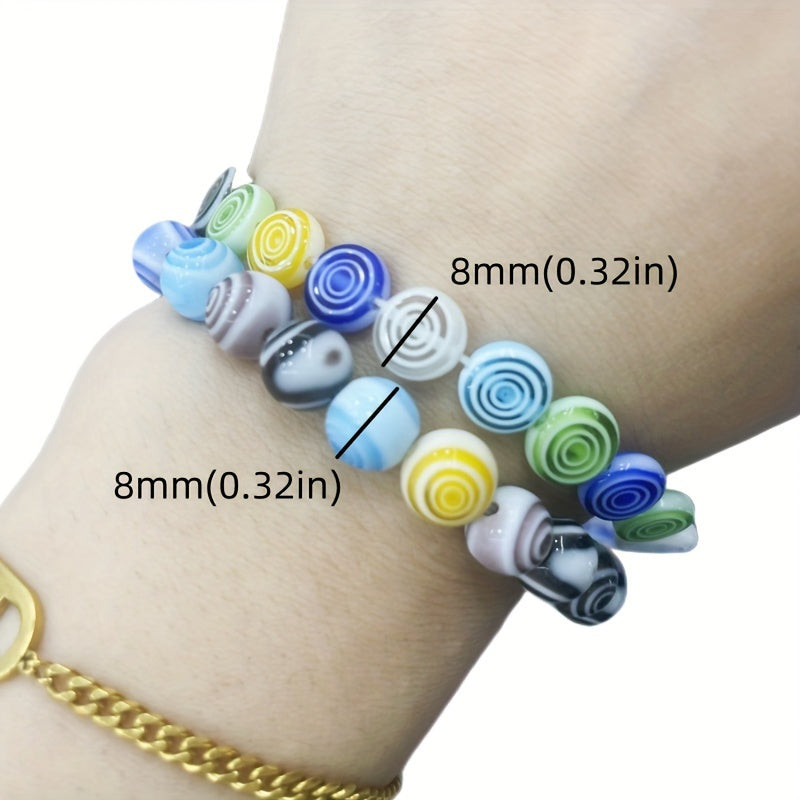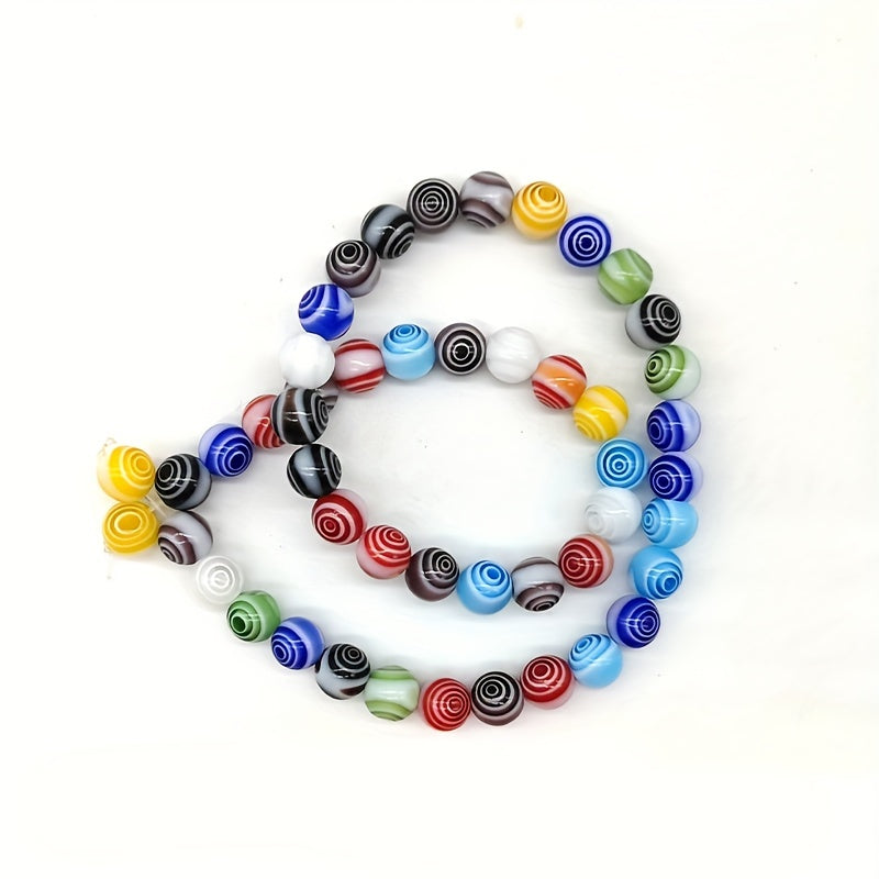Add a touch of colorful elegance to your DIY jewelry projects with these 8mm round glass beads featuring rotating patterns. Perfect for earrings, bracelets, and necklaces.