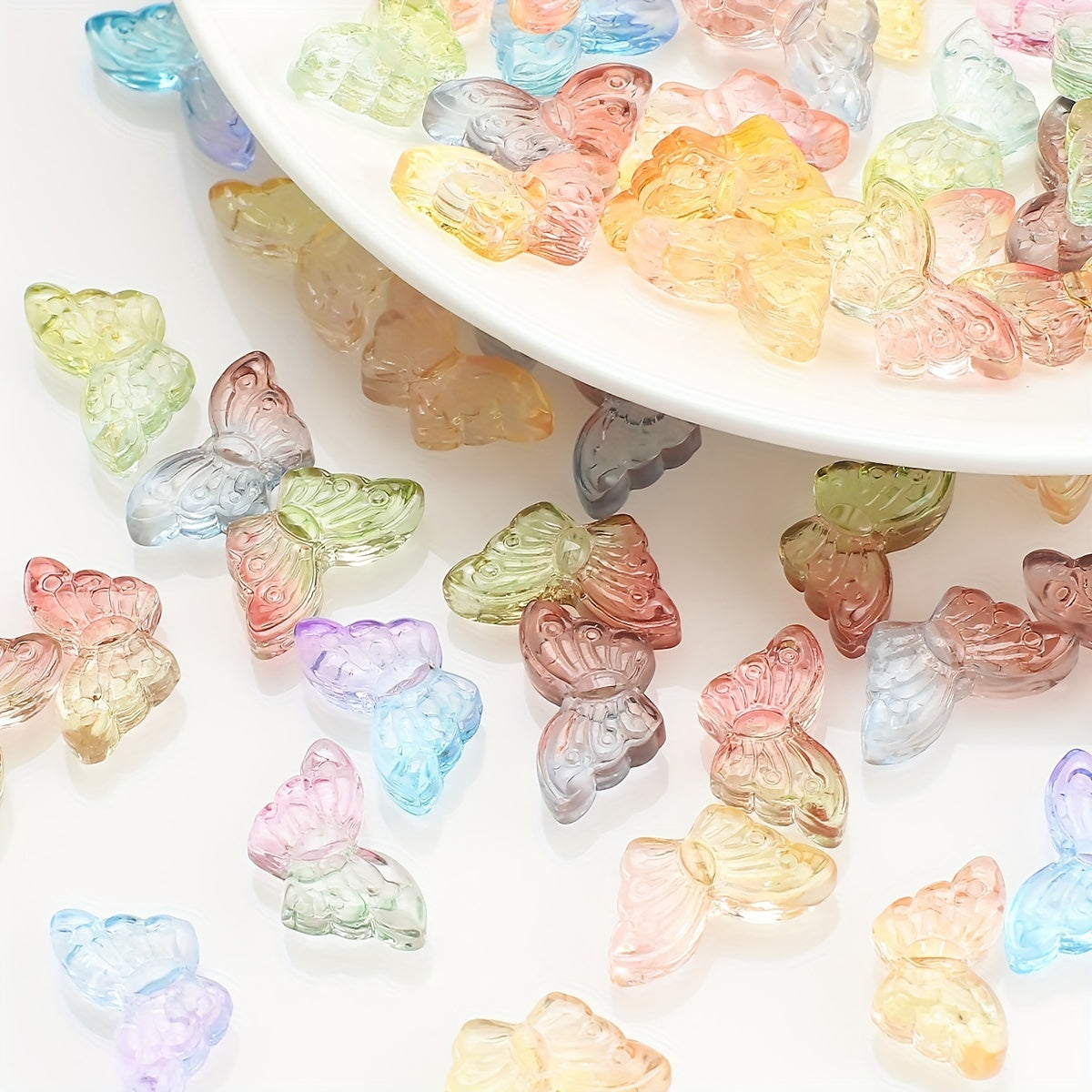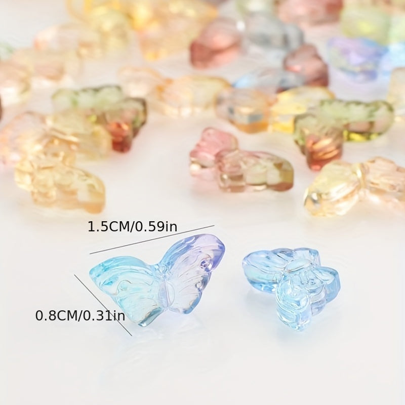 This set includes 48 mixed gradient butterfly crystal glass beads for creating unique jewelry pieces, earrings, bracelets, necklaces, and nail art accessories.