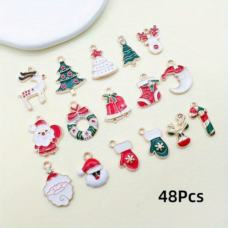 Get into the holiday spirit with this set of 48 Christmas-themed enamel pendants. Perfect for making necklaces, bracelets, earrings, and other jewelry or crafting projects. Add a festive touch to your bags, clothes, and decorations.