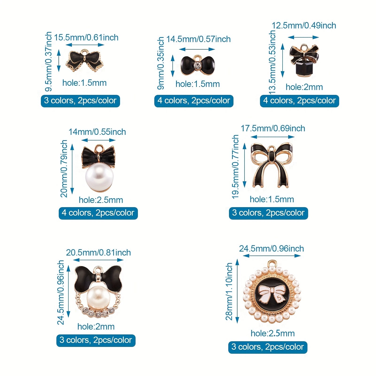 This box contains 48 light golden faux pearl bowknot enamel pendants with a hole size of 1.5mm. Perfect for creating your own bracelets, necklaces, and other jewelry pieces.