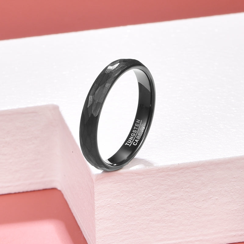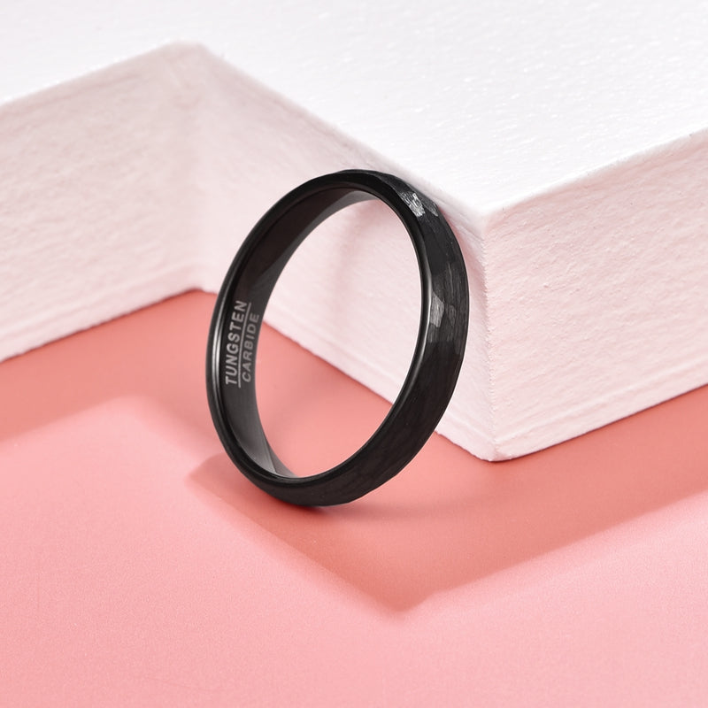 This men's tungsten carbide ring features a 4mm width and is hand-faceted for a unique look. Available in sizes 5-12.