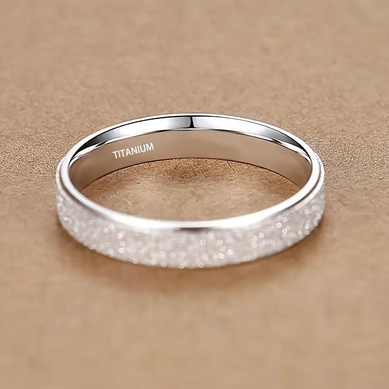 Add a touch of elegance to your engagement or wedding with this beautiful 4mm frosted titanium ring featuring a sparkling band. This ring makes a perfect gift for your loved one.